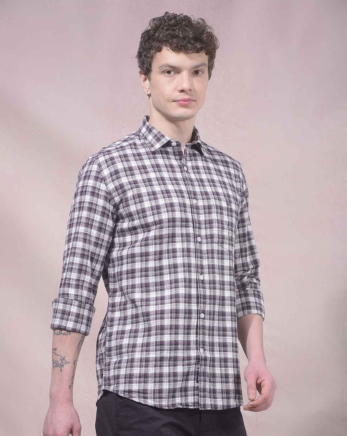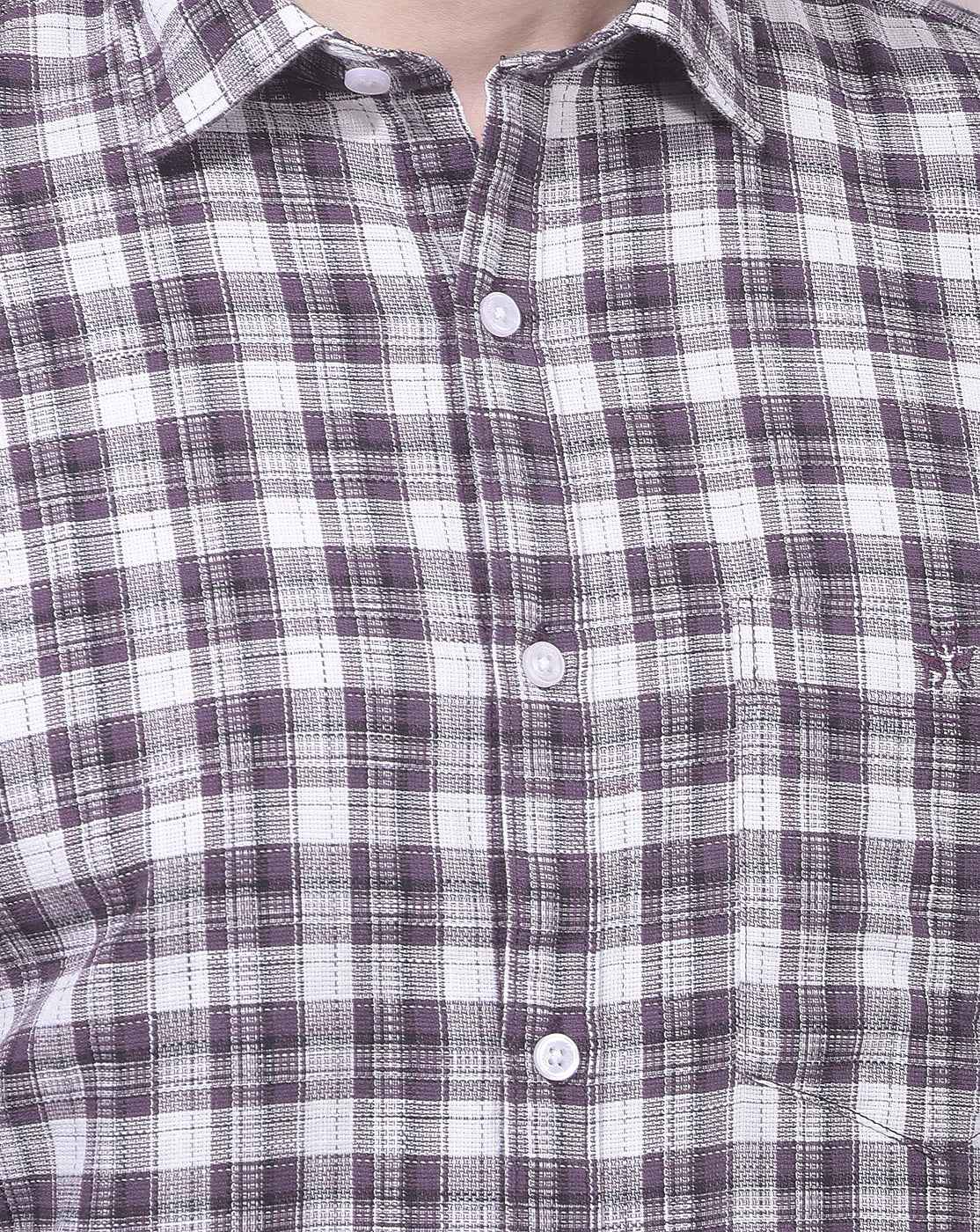 This purple checked shirt for men is crafted from 100% cotton for premium breathability. The rich color and classic pattern offer a sophisticated look, perfect for both professional environments and casual evening social gatherings.