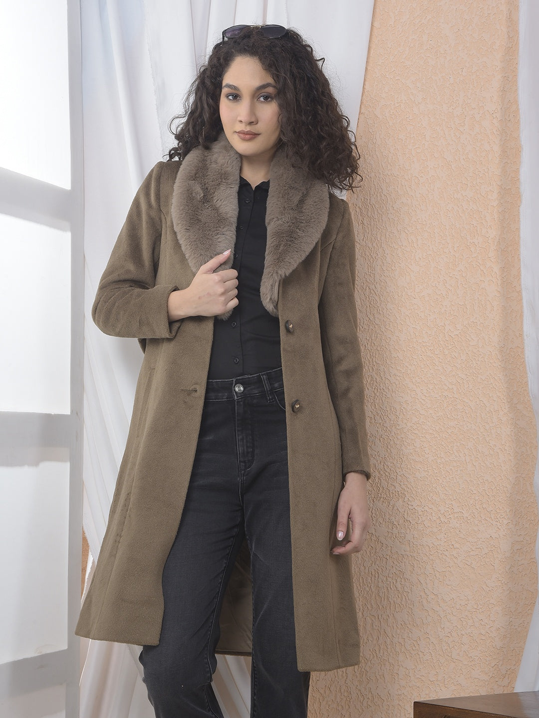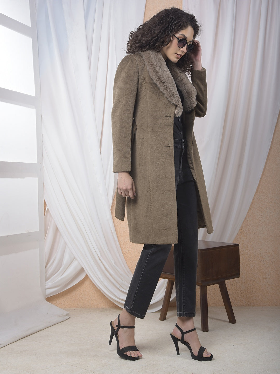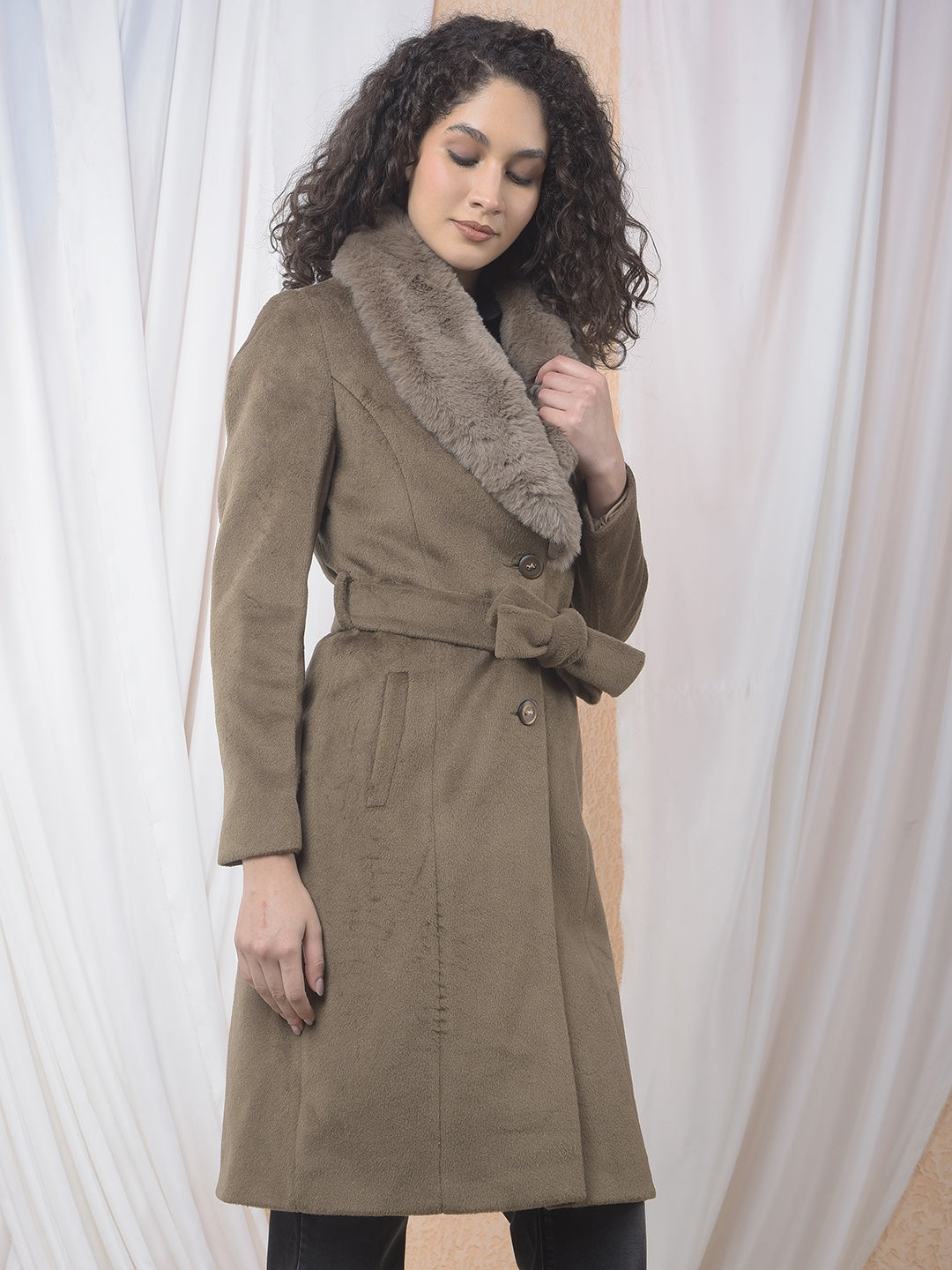 Stay Warm And Stylish In This Sophisticated Crimsoune Club Women's Brown Overcoat. The Notched Lapel And Waist Belt Create A Flattering, Structured Silhouette For Cold-Weather Elegance.