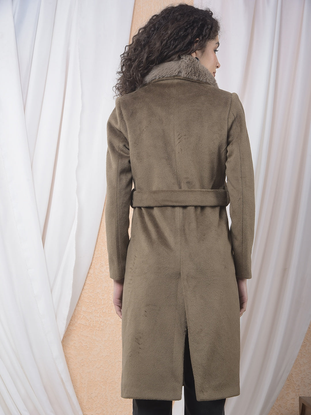 Brown Notched Lapel Overcoat With Belt