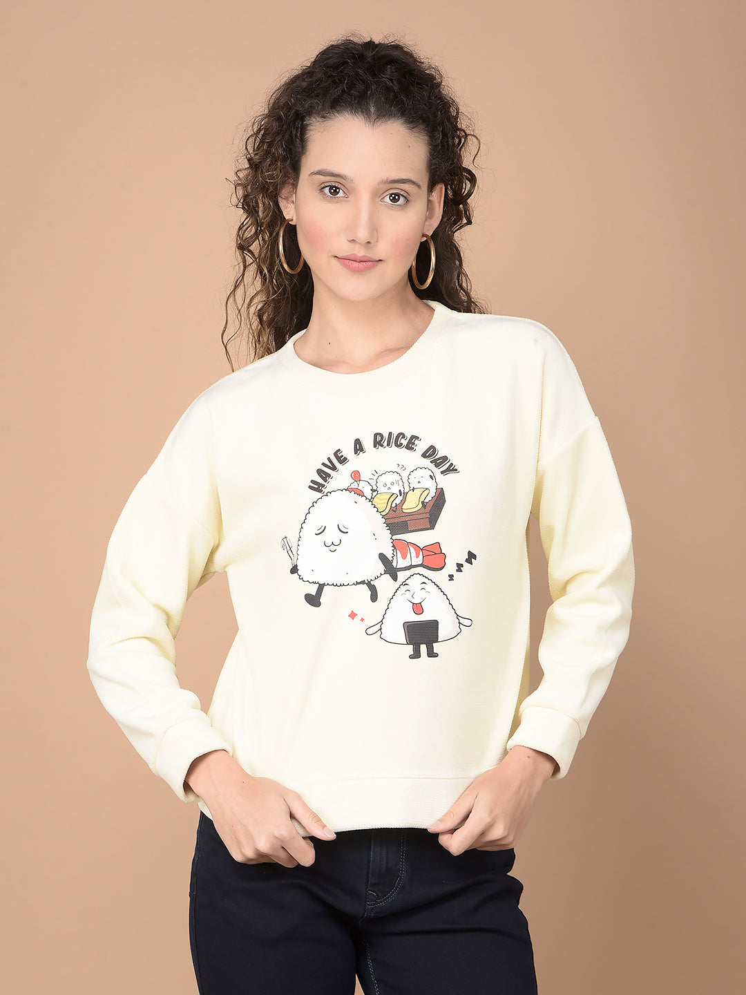 Cream Graphic Print Sweatshirt-Women Sweatshirts-Crimsoune Club
