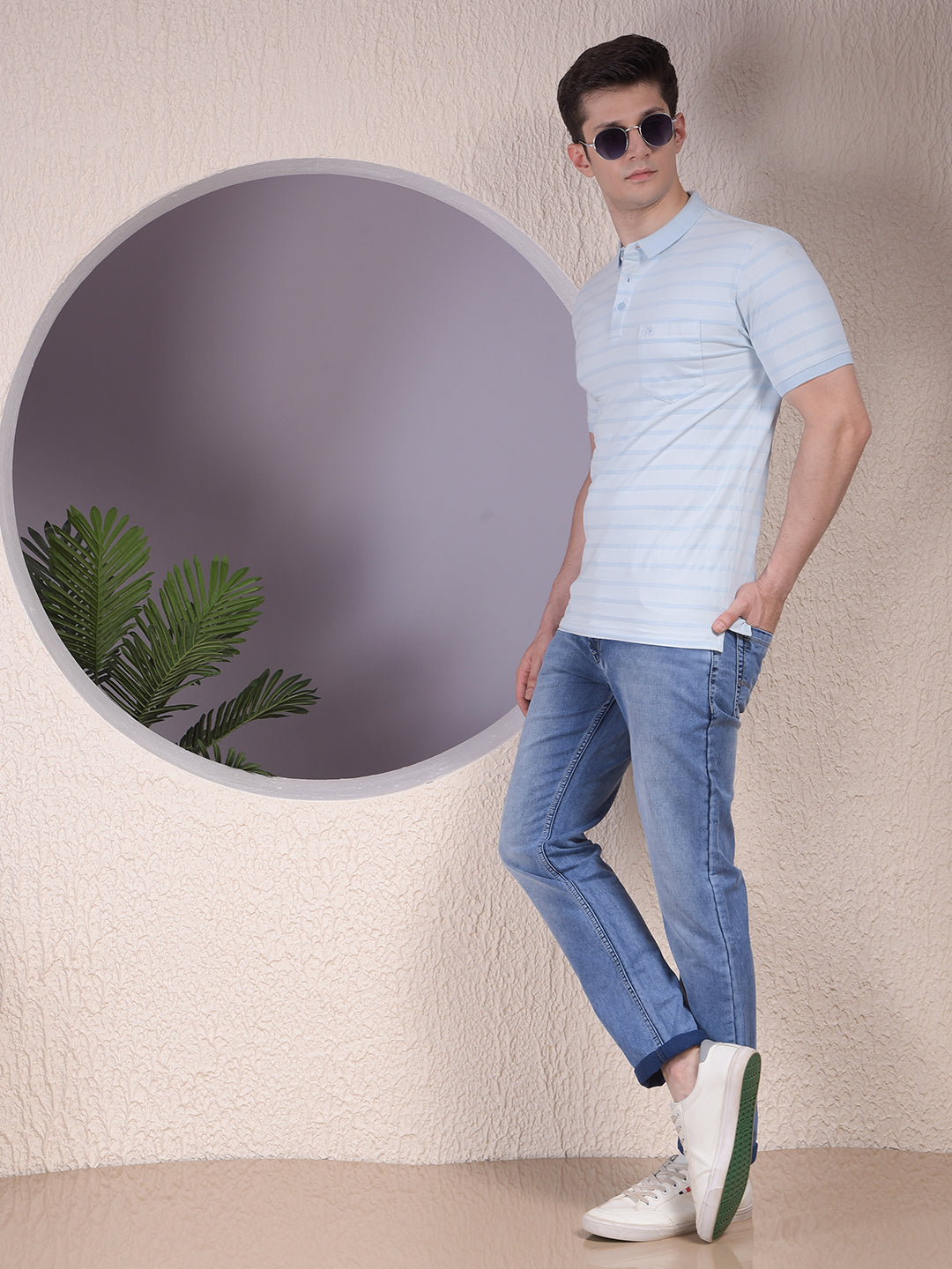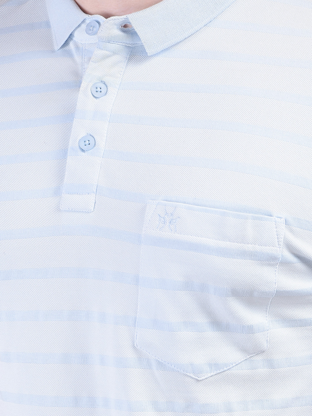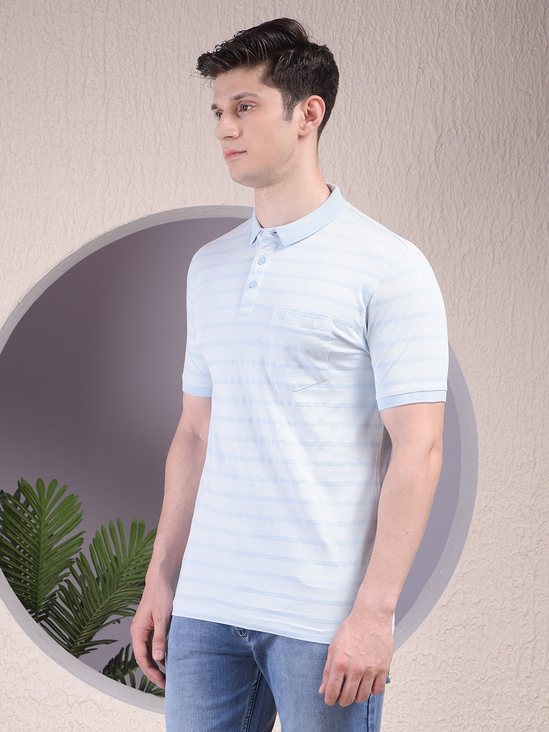 Blue Horizontal Stripes 100% Cotton Polo Neck T-Shirt-Men T-Shirts-Crimsoune Club