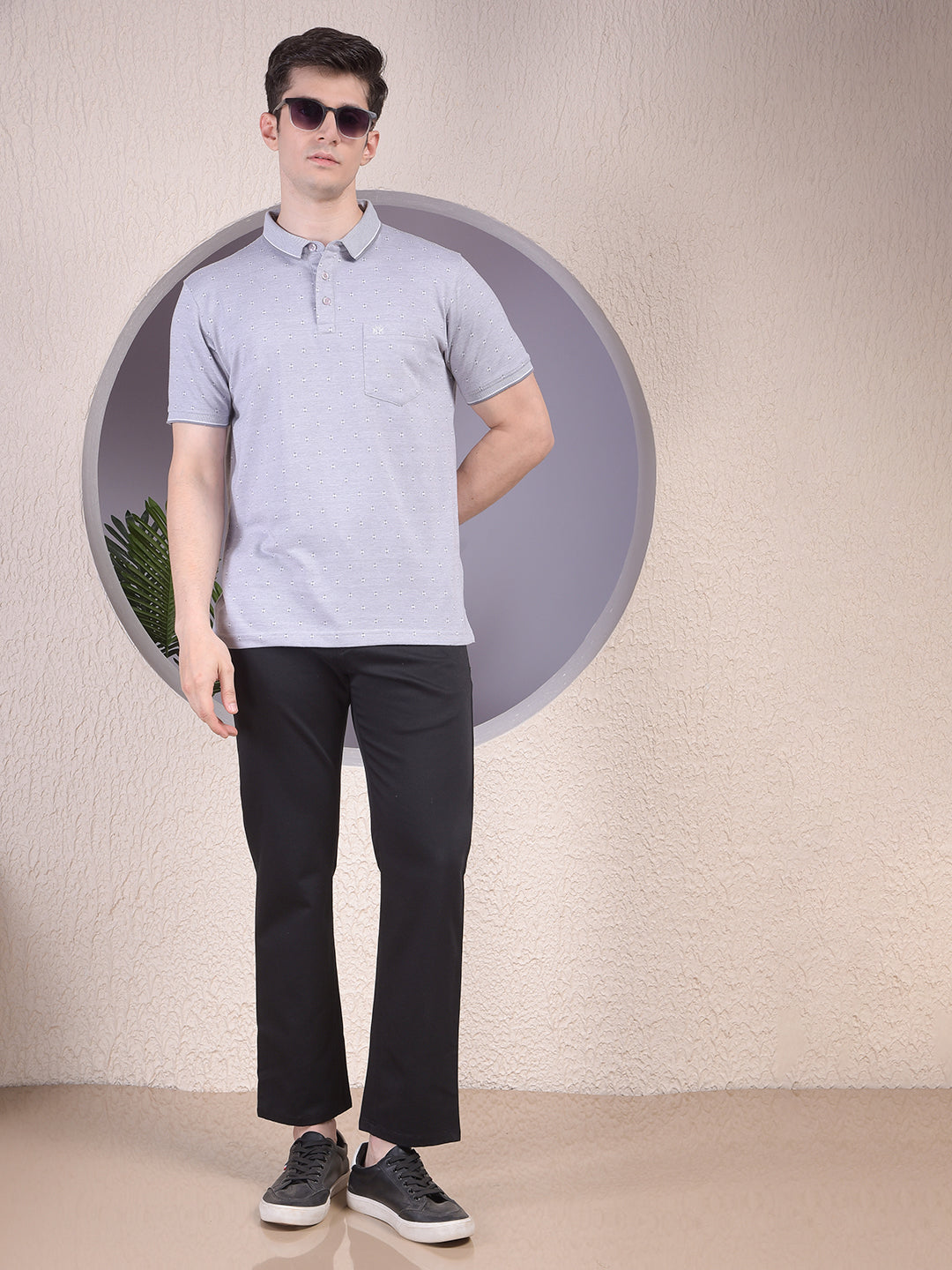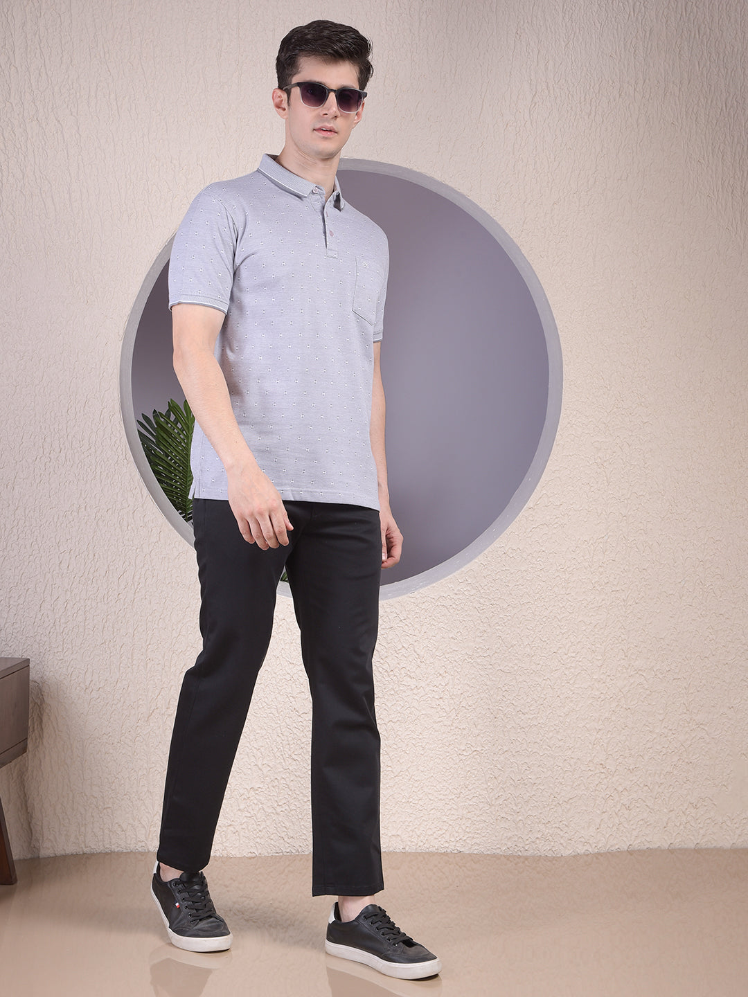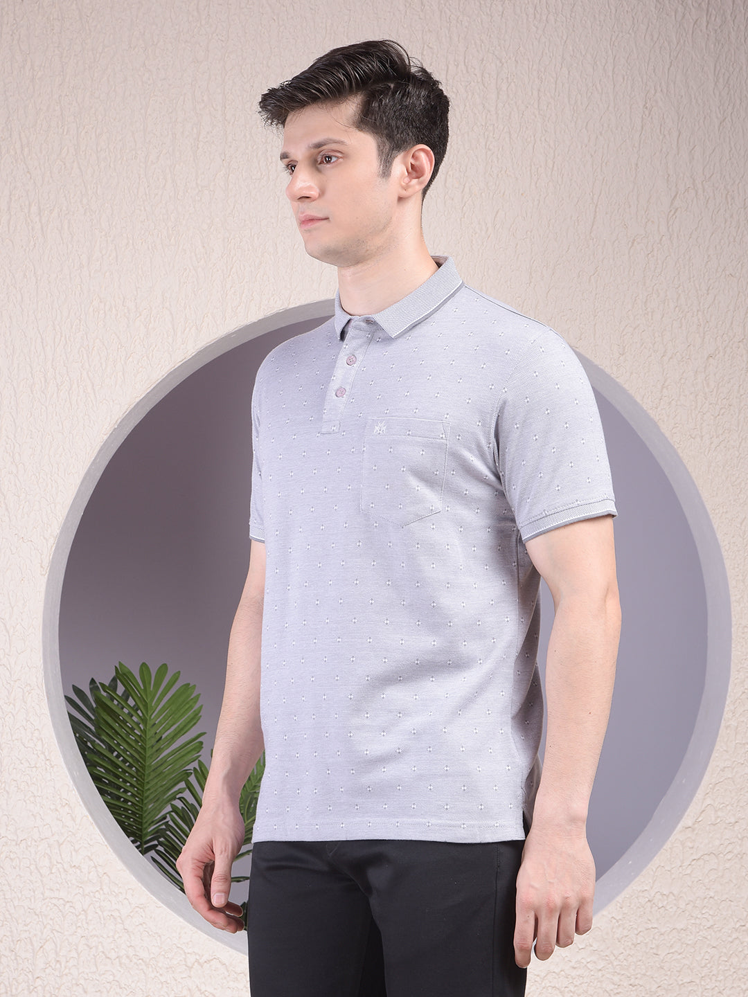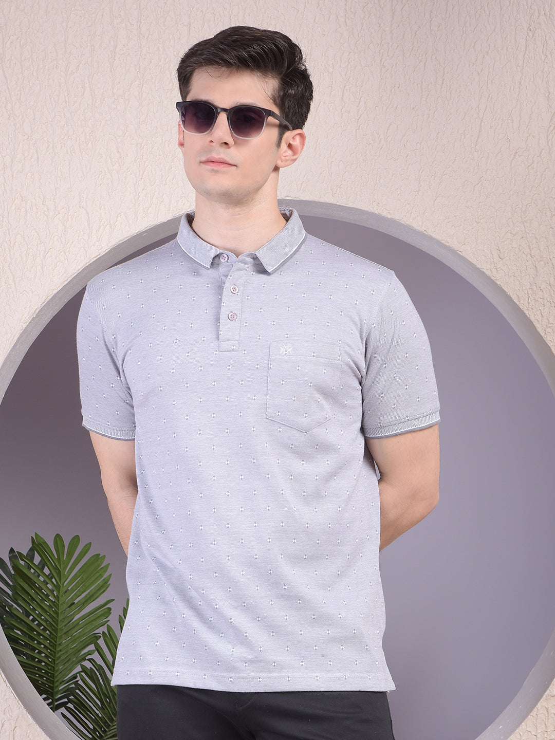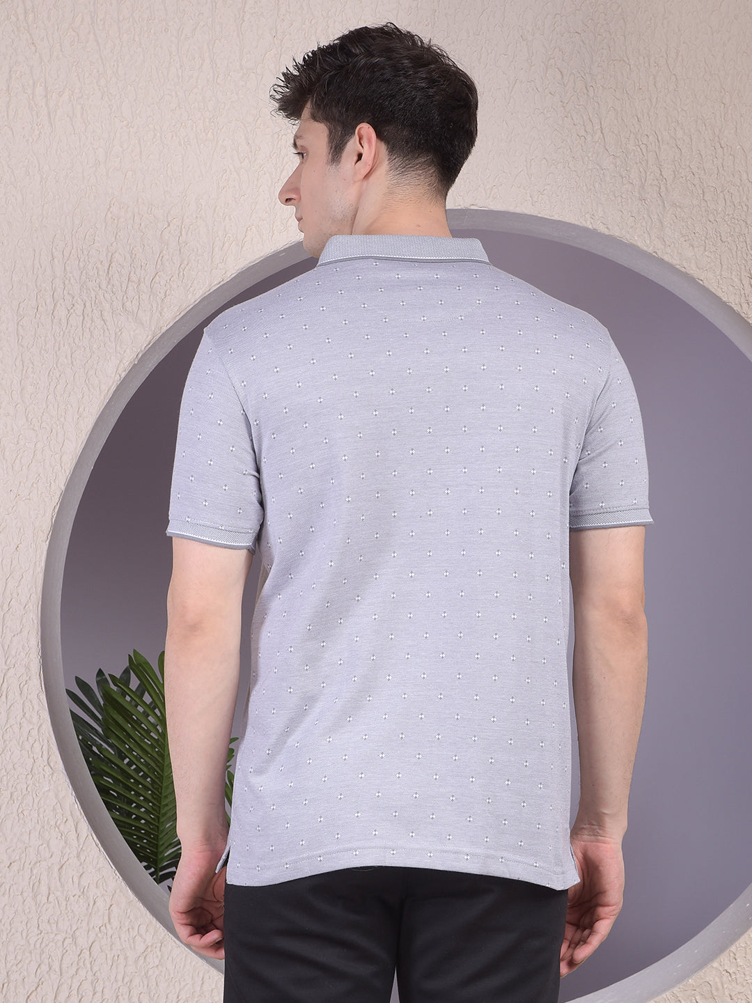 Grey Printed Polo Neck T-Shirt-Men T-Shirts-Crimsoune Club