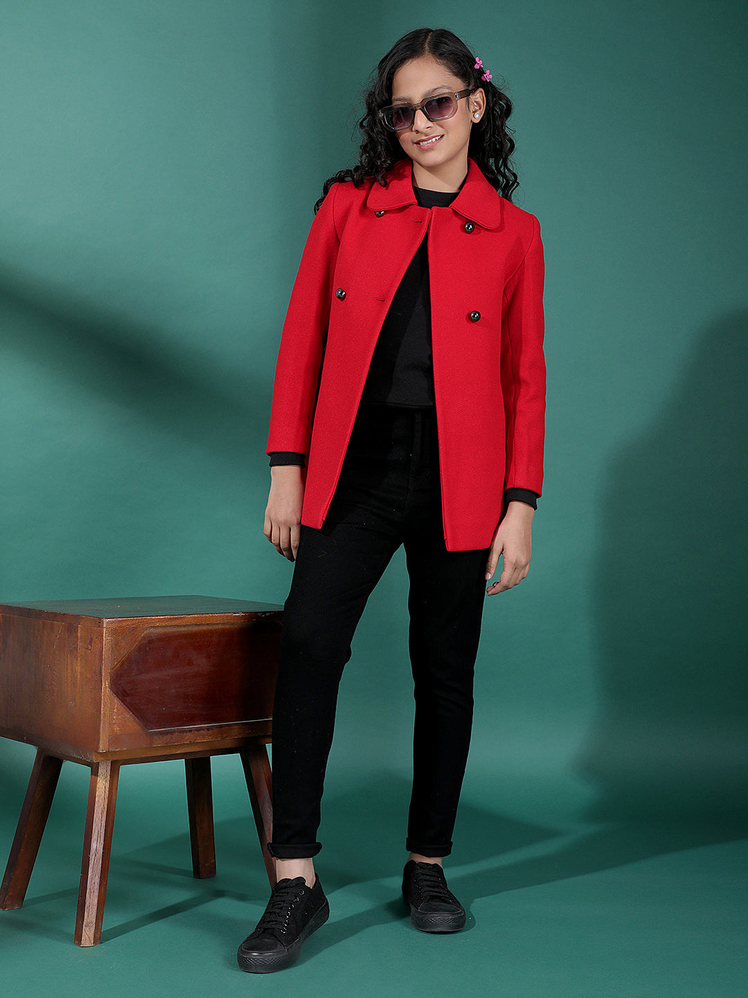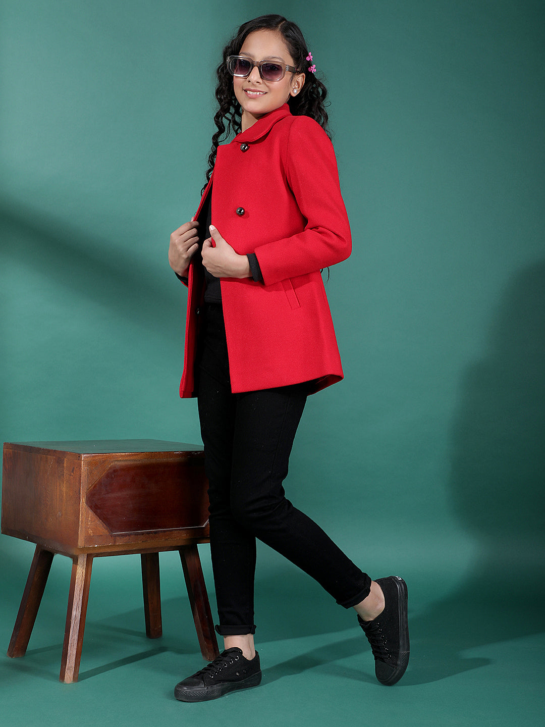 Red Mid-Thigh Length Coat-Girls Coats-Crimsoune Club