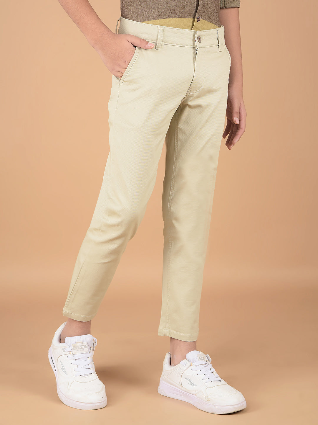 Step Up Your Boy's Fashion Game With Crimsoune Club Chinos Trousers, Crafted In The Sophisticated Brand Color Beige And Modern Pattern Solid. Combining Comfort And Elegance, These Chinos Are Ideal For Both Casual Wear And Semi-Formal Events.