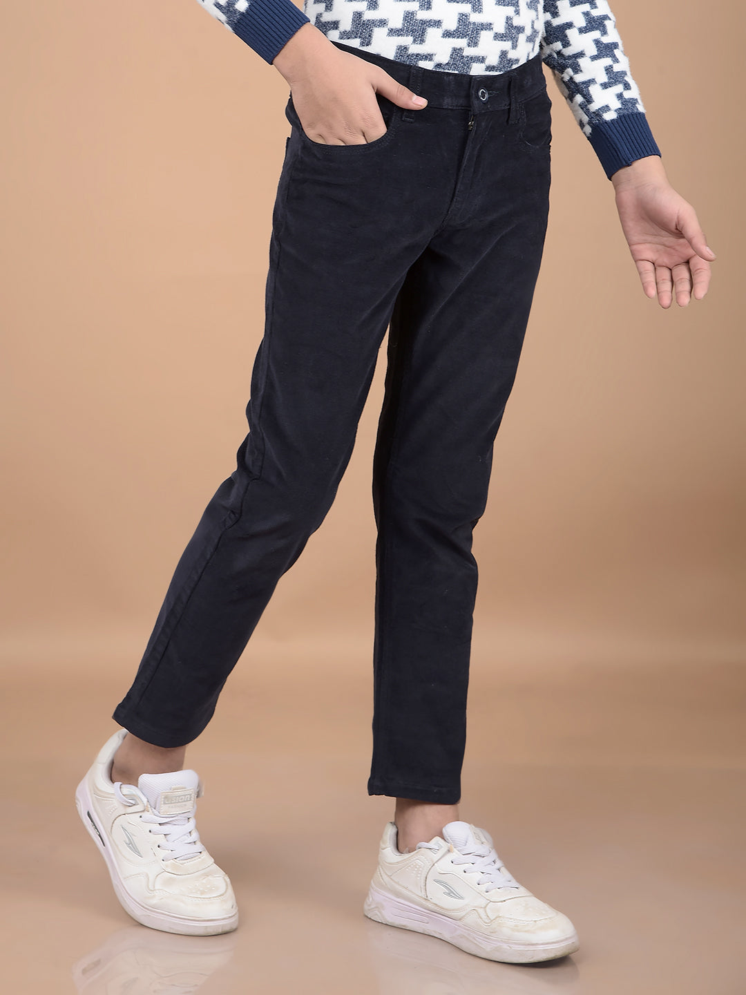 Crimsoune Club Boy's Navy Blue Corduroy Trousers Is Crafted With Premium Quality Materials, Ensuring Comfort, Durability, And Style. This Piece Is Perfect For Elevating Your Wardrobe With Its Trendy Design And Exquisite Detailing.
