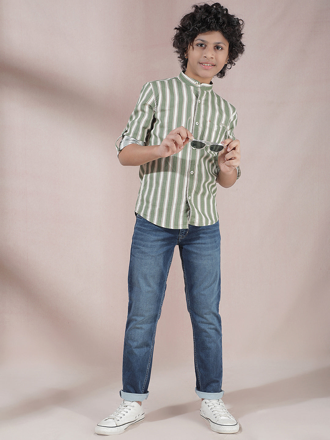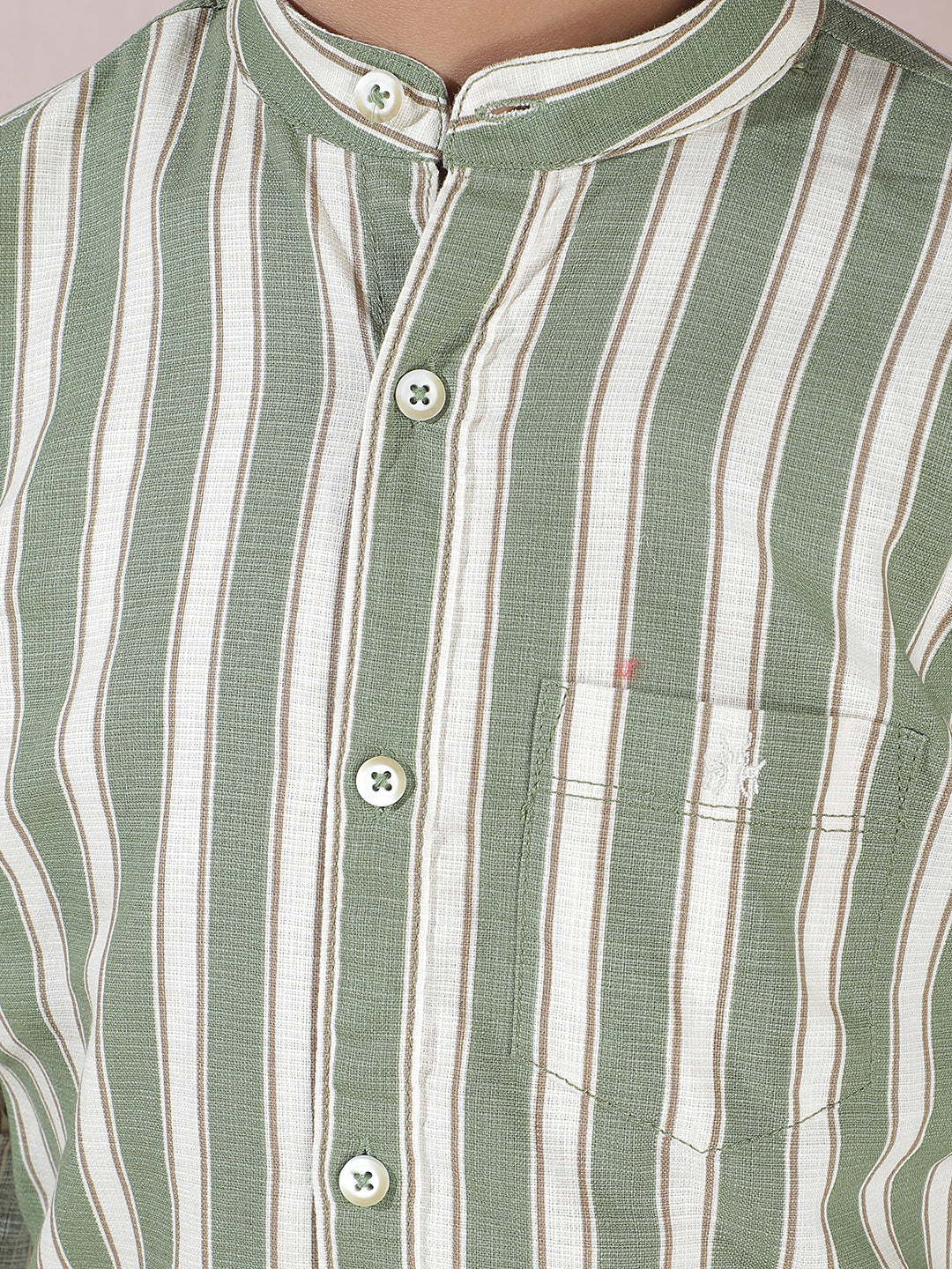 This stylish Crimsoune Club shirt features an on-trend vertical stripe pattern in Fern Green and Off-White. It combines the comfort with the structure of a shirt, making it ideal for festive or casual occasions.