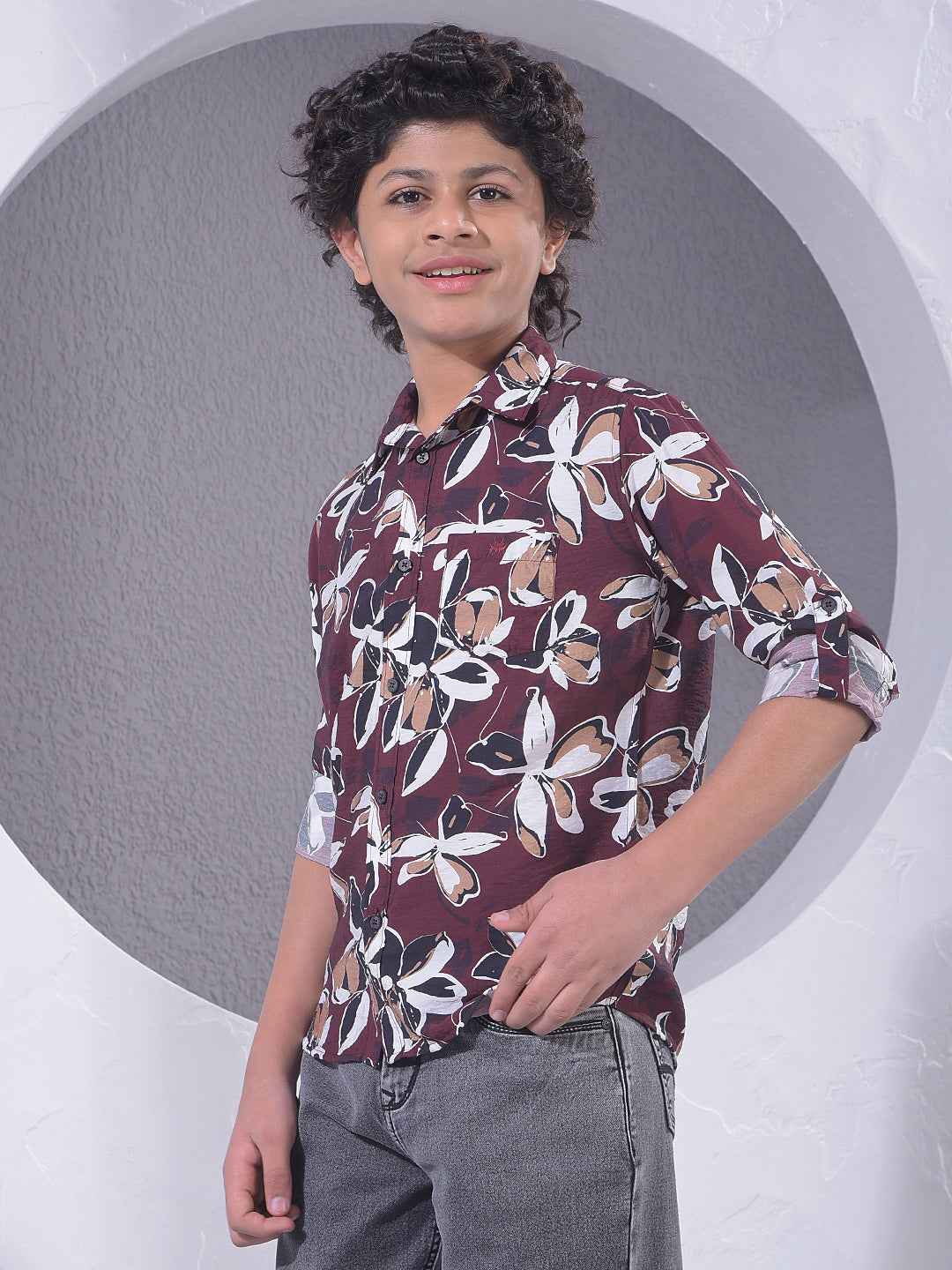 Make a sophisticated impression with this Crimsoune Club boy's brown floral print shirt. The rich color and intricate patterns provide a bold, modern aesthetic suitable for adding depth to your child's wardrobe.