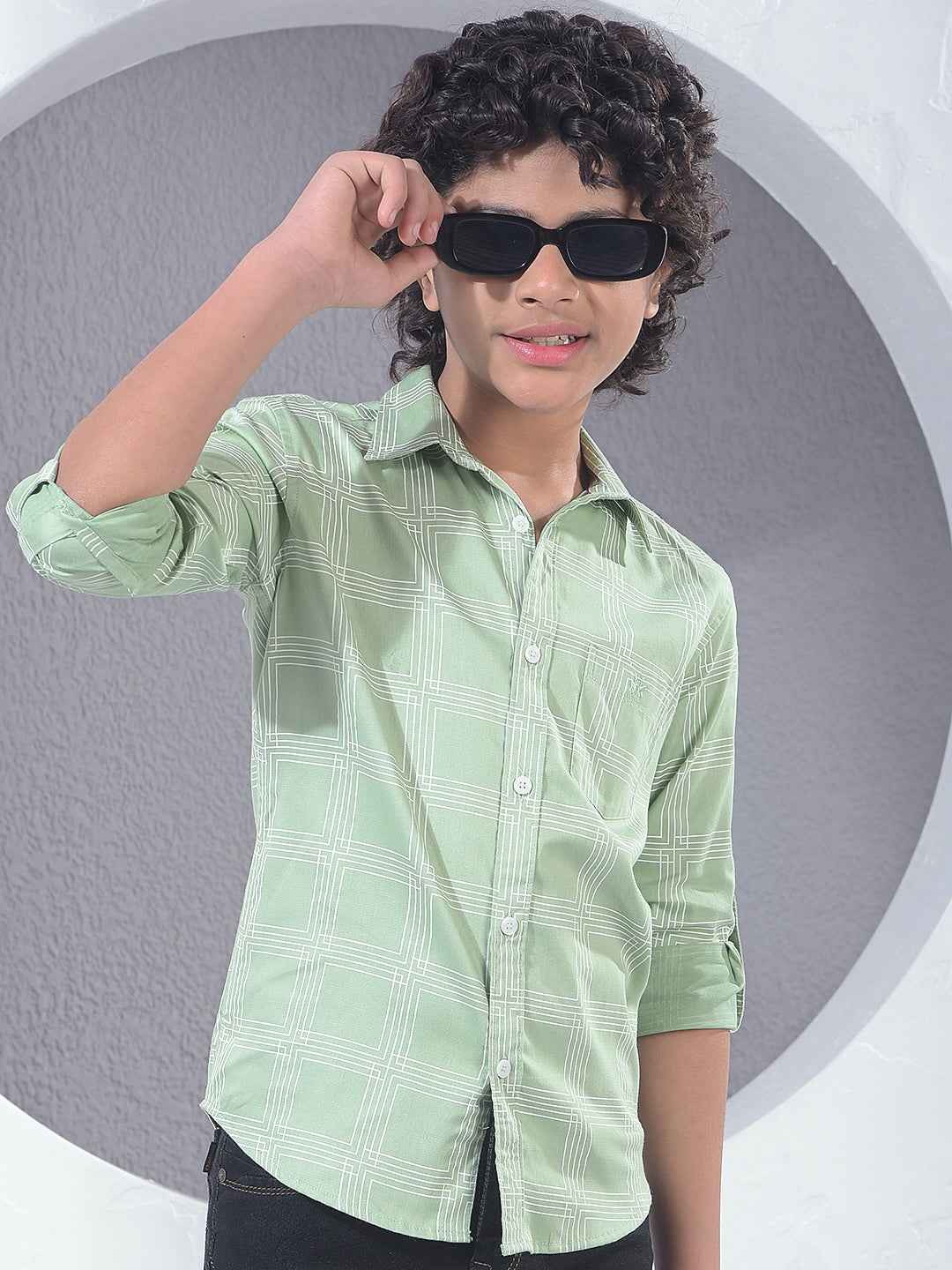 This Crimsoune Club boy's green printed shirt features a distinctive pattern for a modern look. The vibrant green hue and quality fabric blend to create a versatile piece that adds character today.