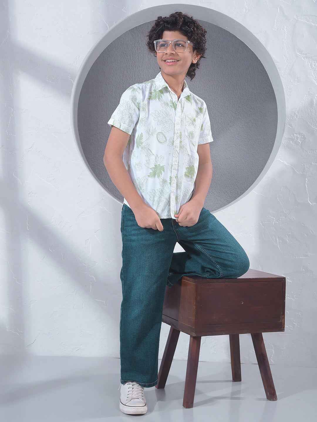 Elevate your child's wardrobe with this green floral print shirt. The high-quality material and sharp botanical patterns provide a modern aesthetic, making it an ideal choice for smart-casual styling during any summer outing.