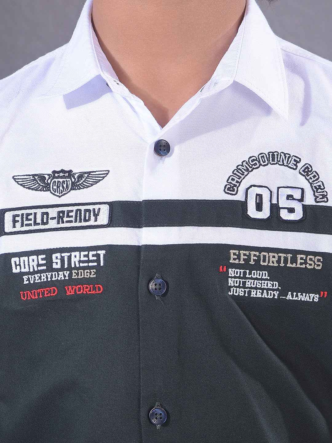 Look trendy in this 100% cotton Crimsoune Club boy's green typographic print shirt. The unique graphic details and vibrant green hue provide a modern aesthetic that ensures style for any casual daily outing.