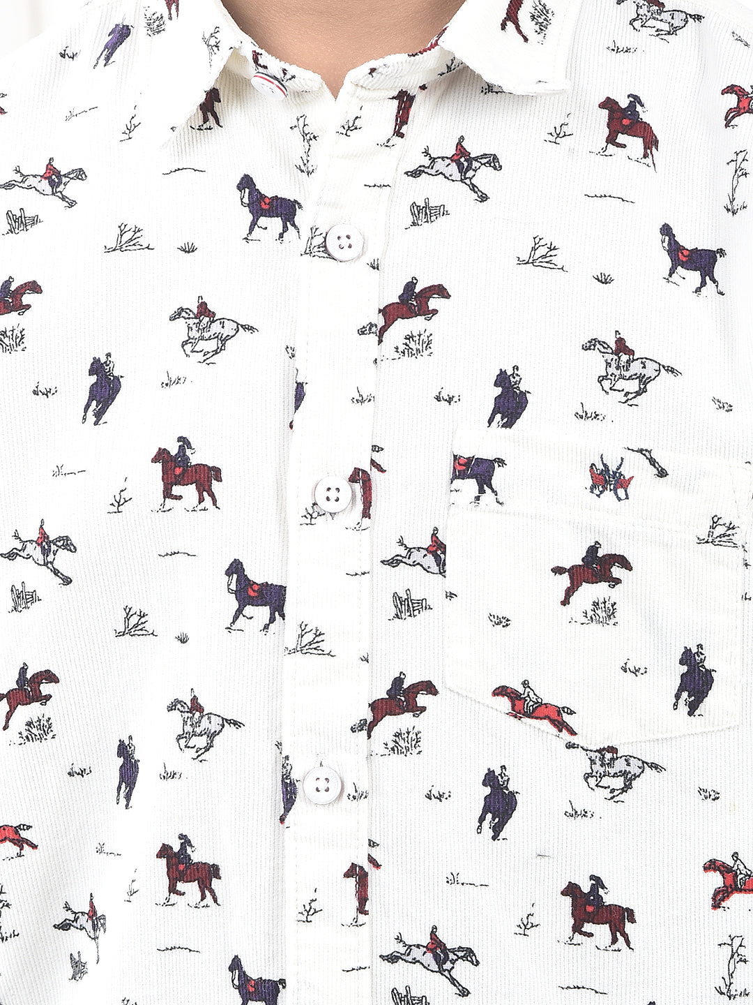 Elevate his style with this Crimsoune Club boy's shirt. It's made from comfortable 100% cotton corduroy in white with a unique print, offering a soft texture and a distinctive look for cooler weather.