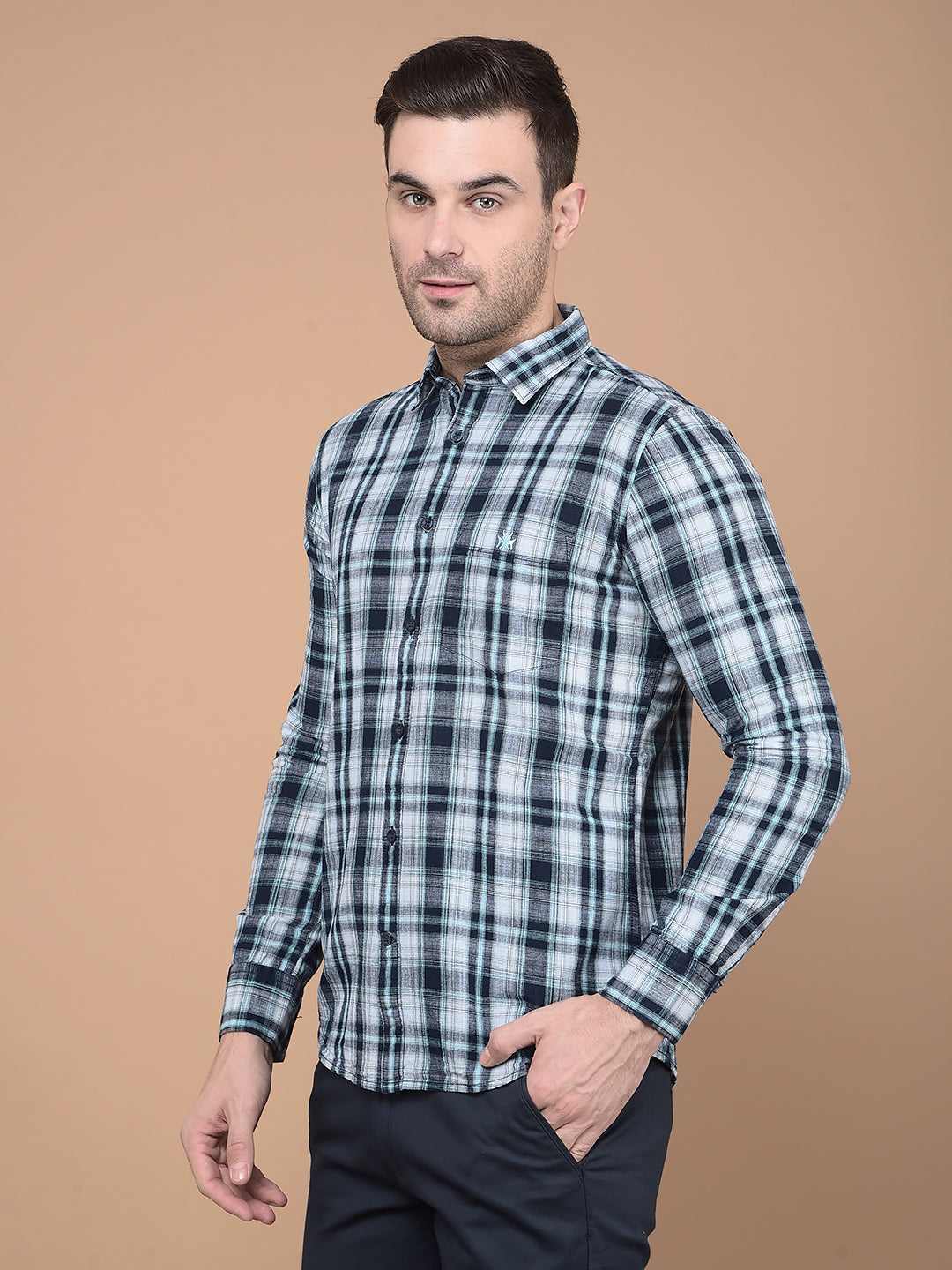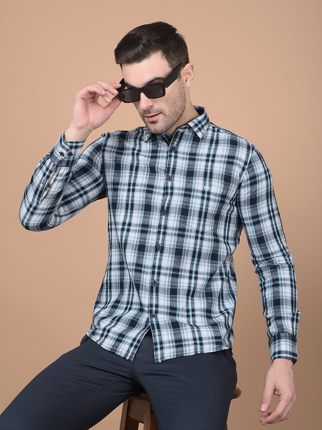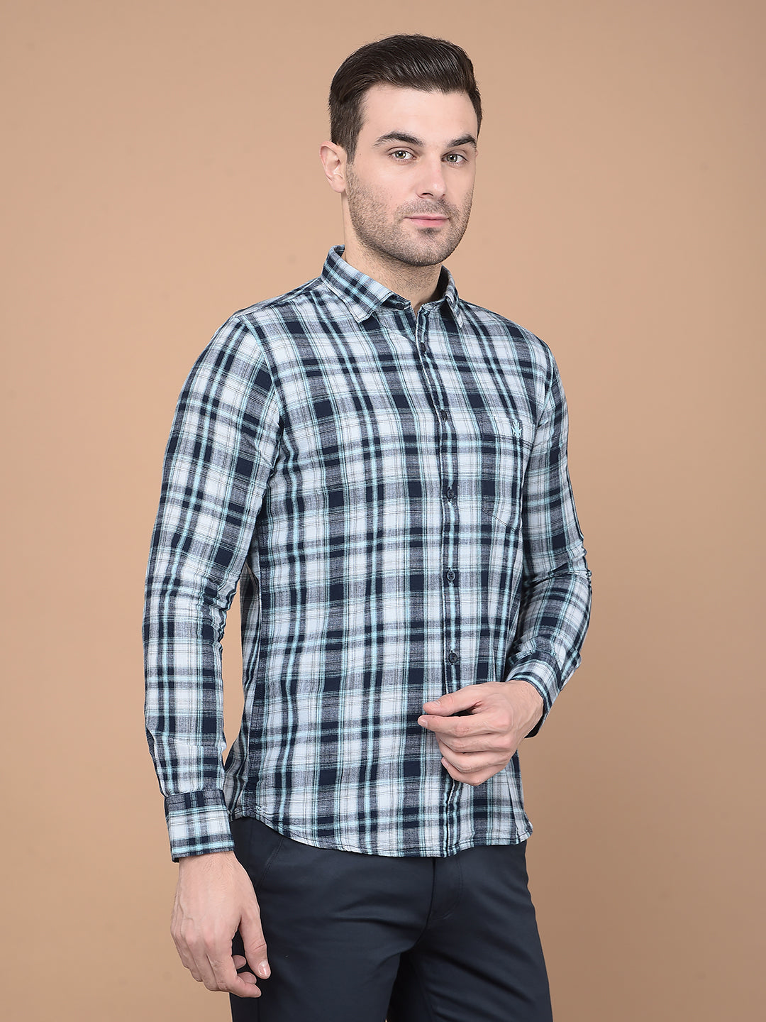 Crimsoune club presents a men's shirt in the unique green brand color, enhanced by the eye-catching checked brand pattern. This shirt blends contemporary style with comfort, perfect for elevating your casual or smart-casual wardrobe