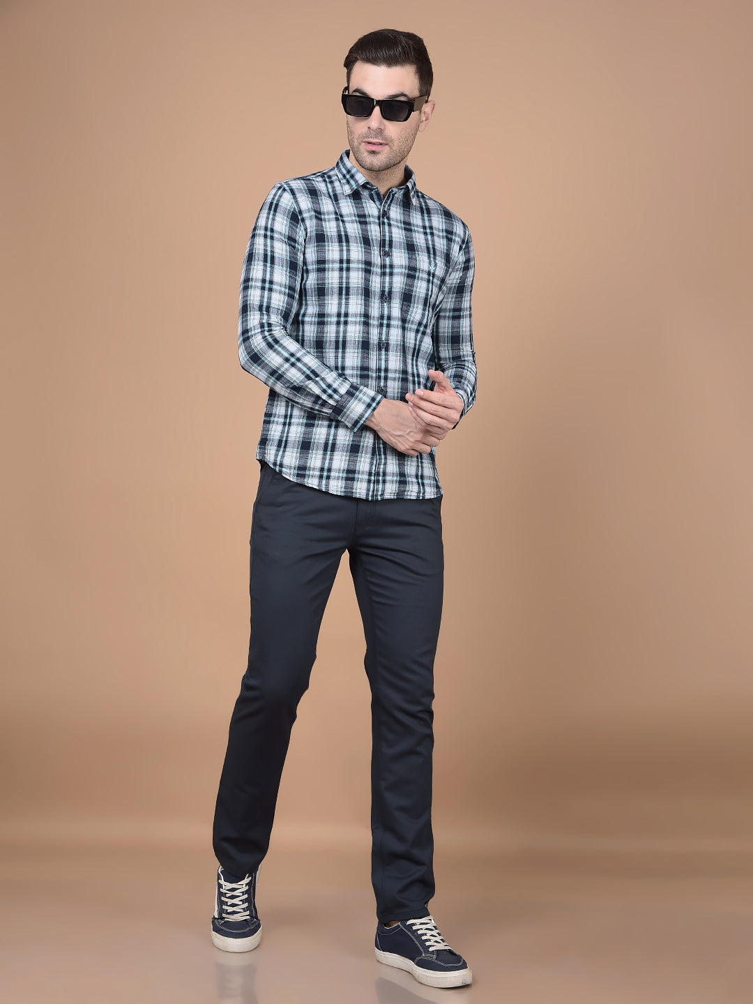 Green Checked 100% Cotton Shirt-Men Shirts-Crimsoune Club