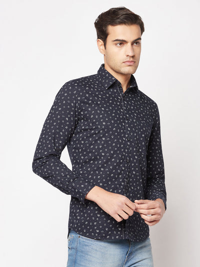 Navy-Blue Floral Shirt