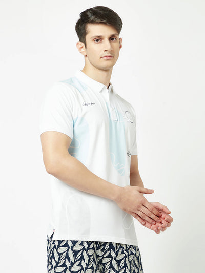 A soft graphic print polo tee crafted from Cotton blended with a subtle stretch for enhanced comfort and flexibility. This piece is tailored to a regular fit and is designed with a half-button placket and short sleeves for a clean summer silhouette.