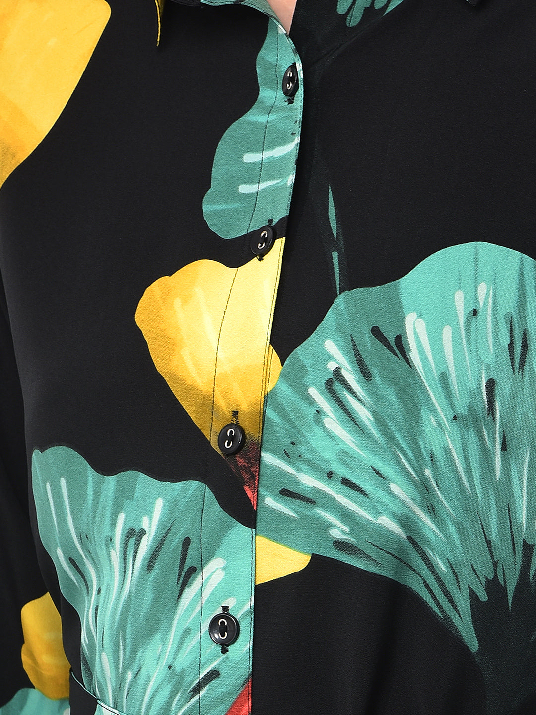 This Elegant Crimsoune Club Women's Black Midi Shirt-Dress Features A Lovely Floral Print And A Flattering Belt. Its Classic Silhouette Is Perfect For A Sophisticated, Defined Look.