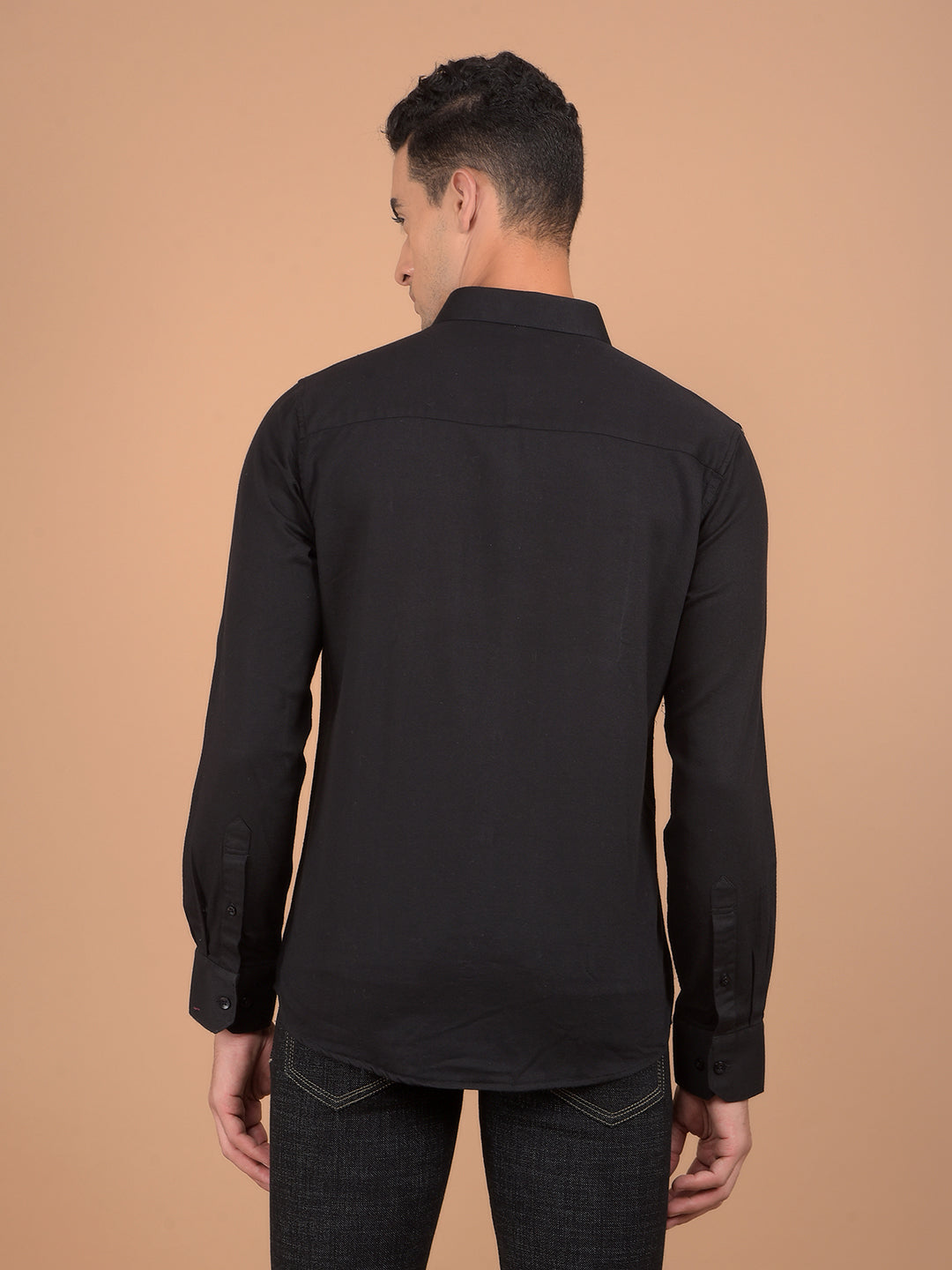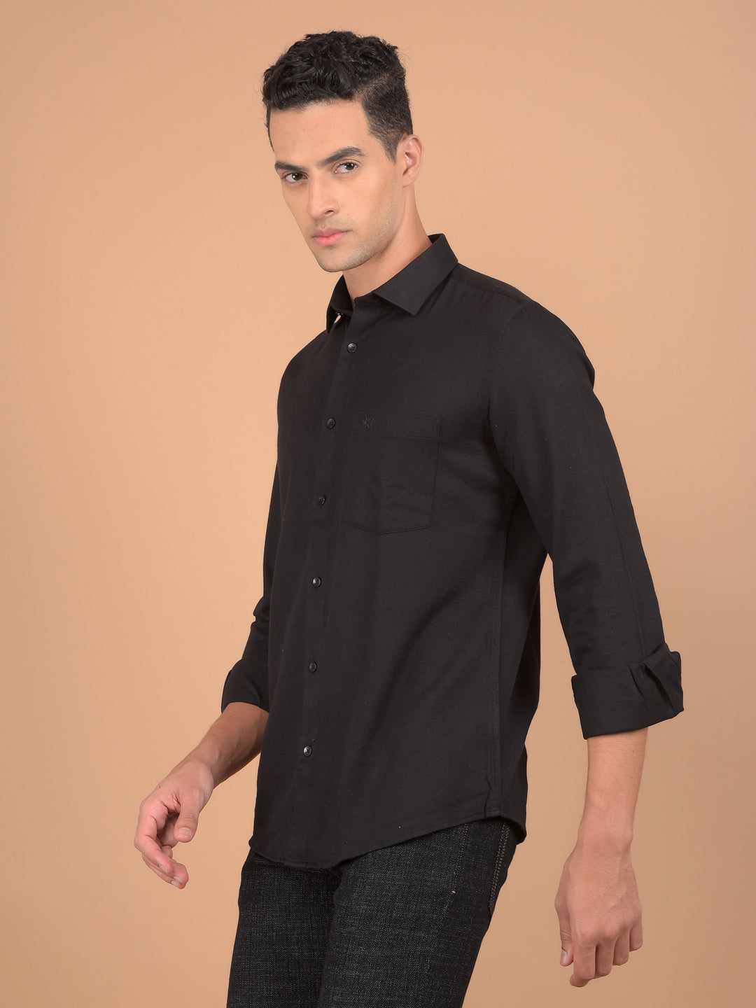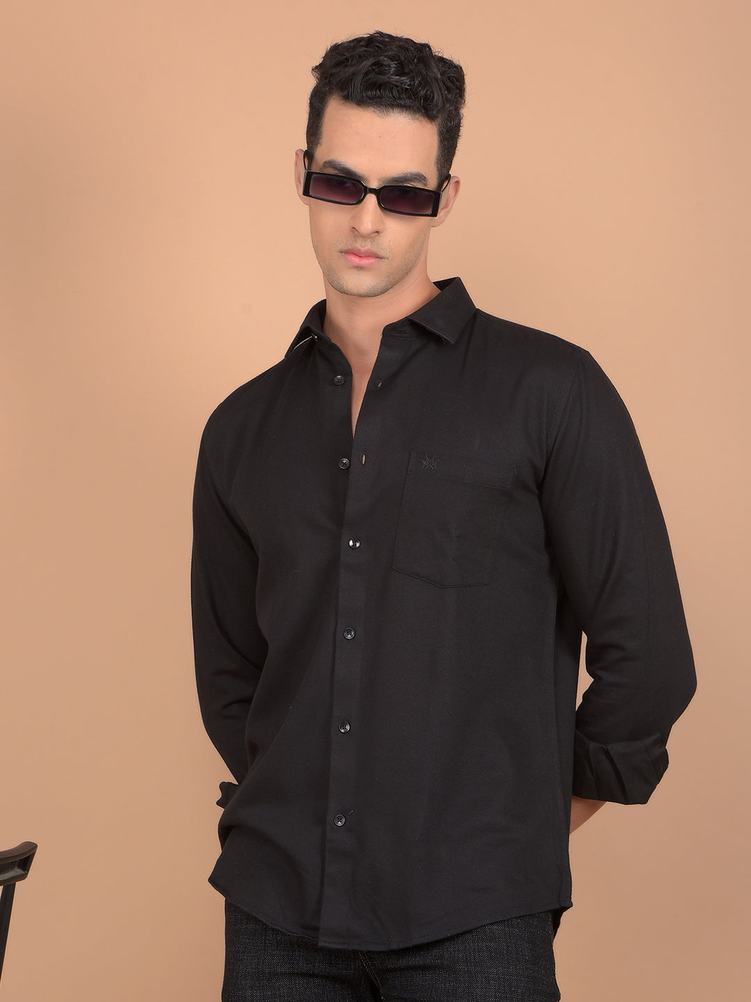 Crimsoune Club Men's Shirt In Black Color With Solid Pattern Combines Modern Style With Premium Comfort, Perfect For Both Casual And Semi-Formal Occasions.