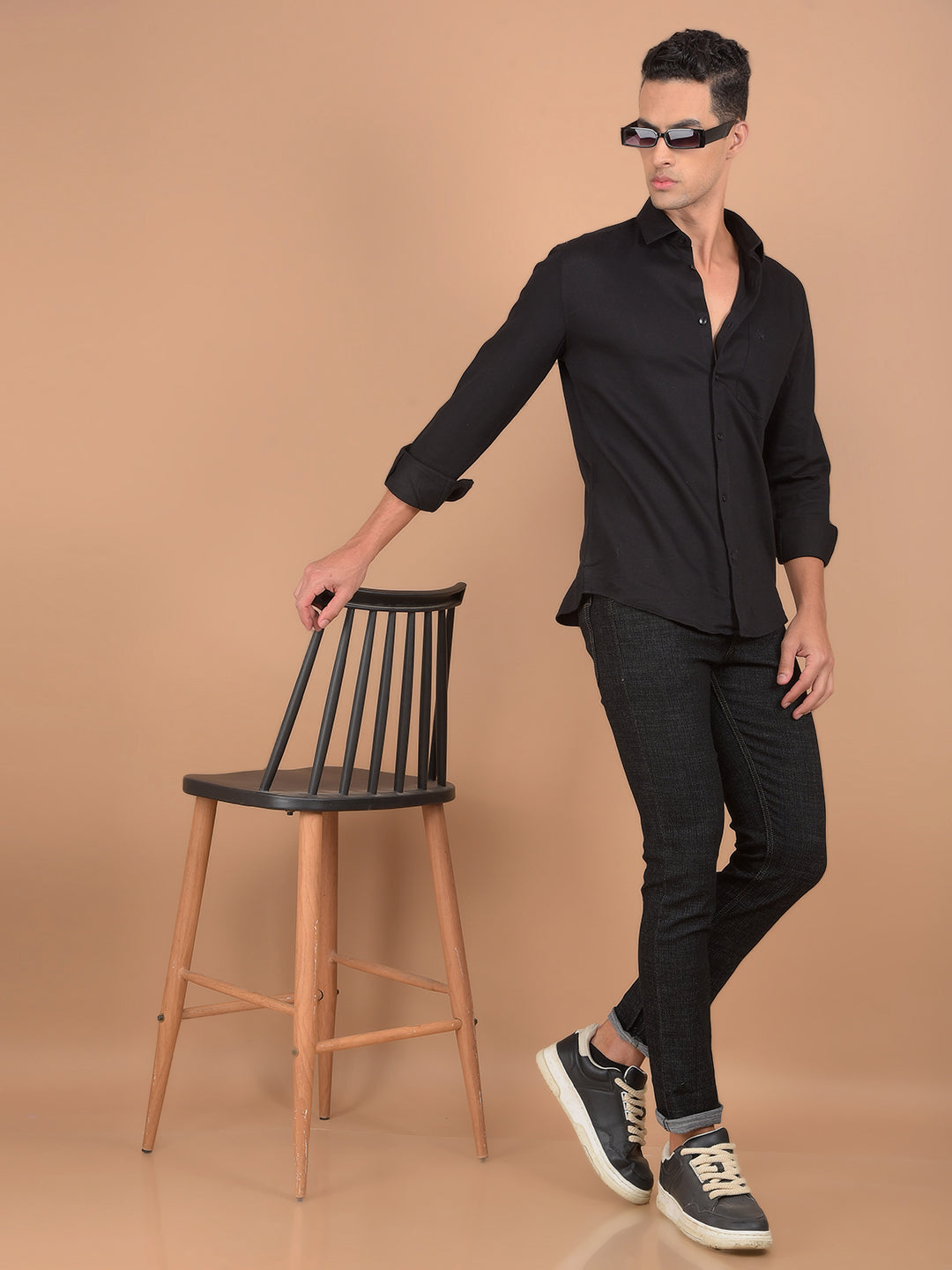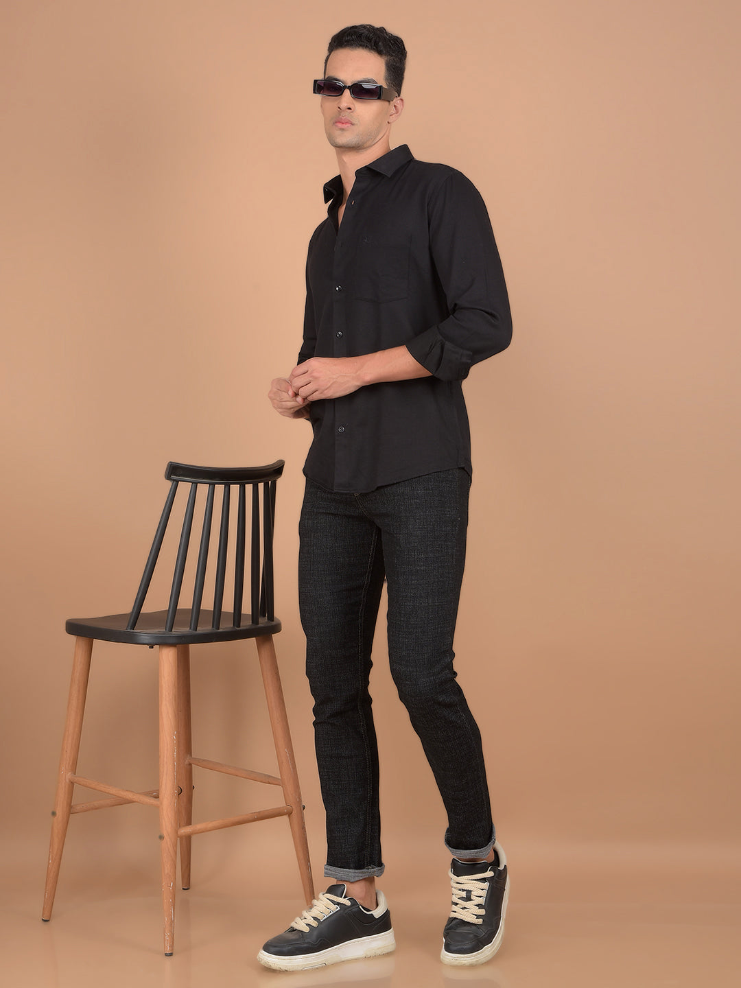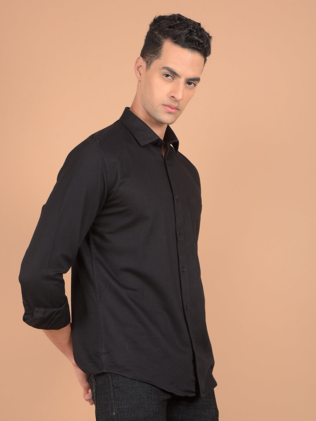 Crimsoune Club Men's Shirt In Black Color With Solid Pattern Combines Modern Style With Premium Comfort, Perfect For Both Casual And Semi-Formal Occasions.