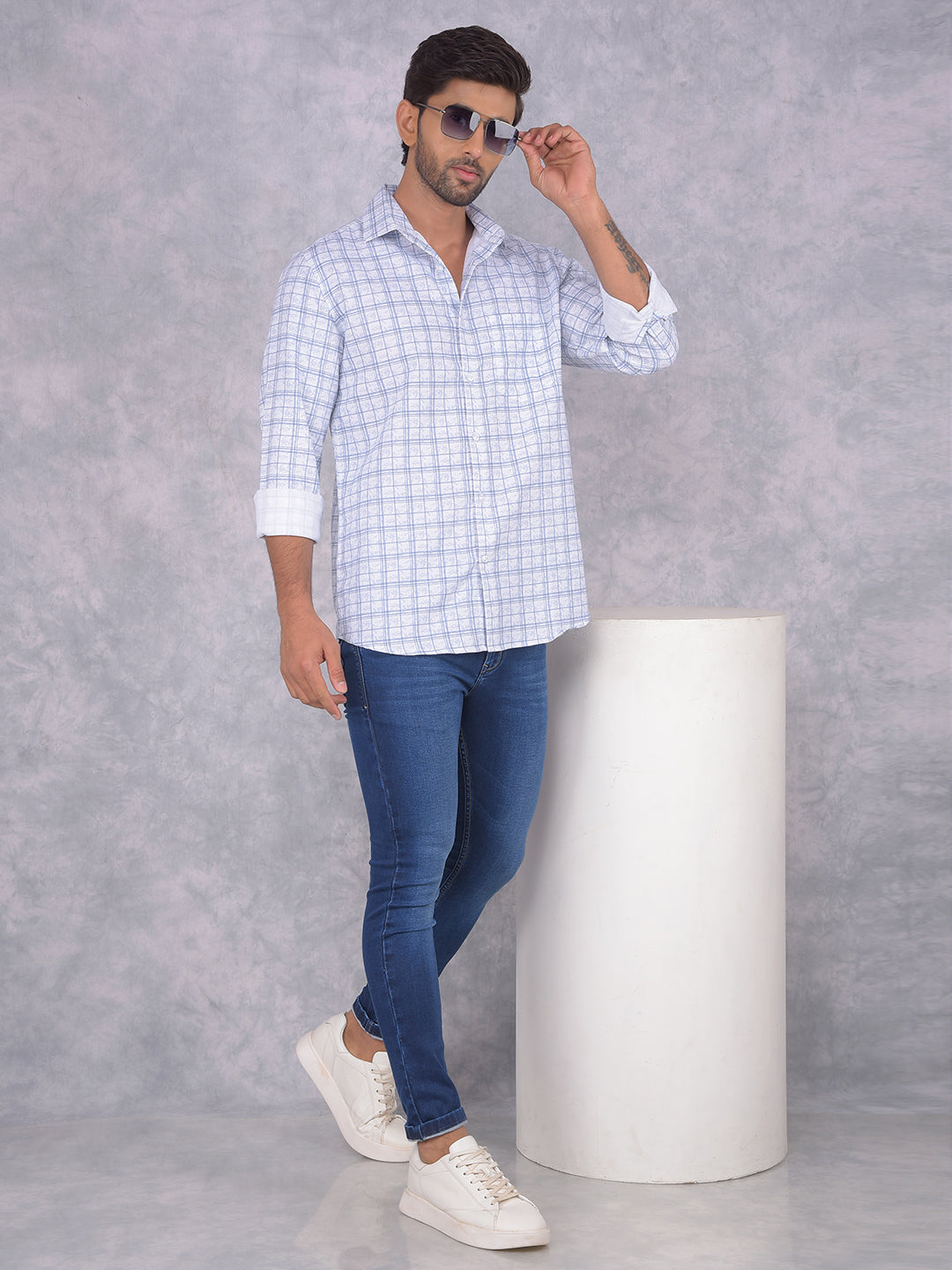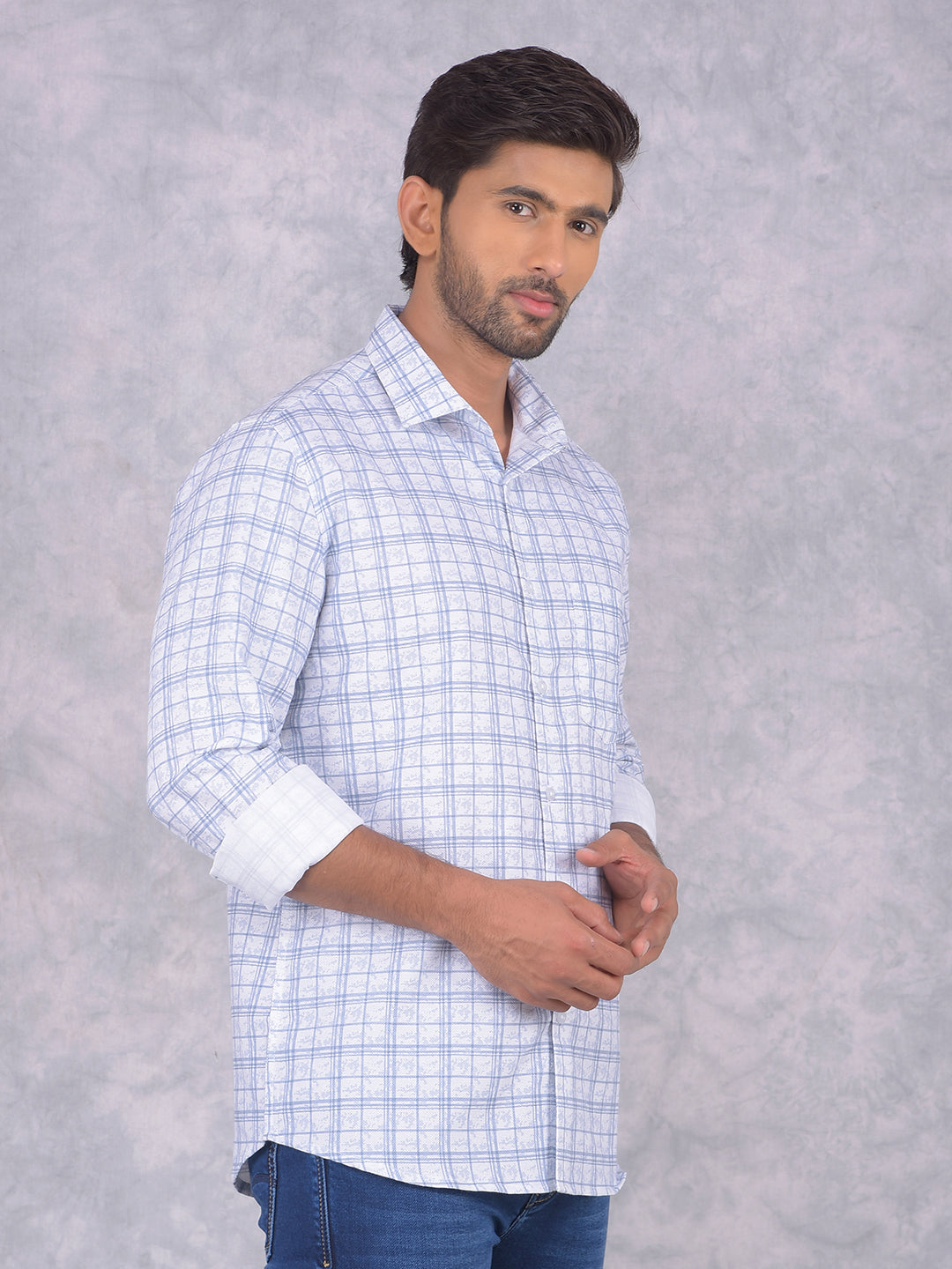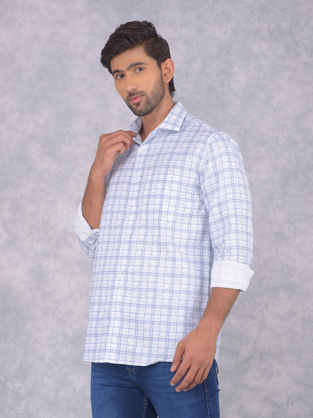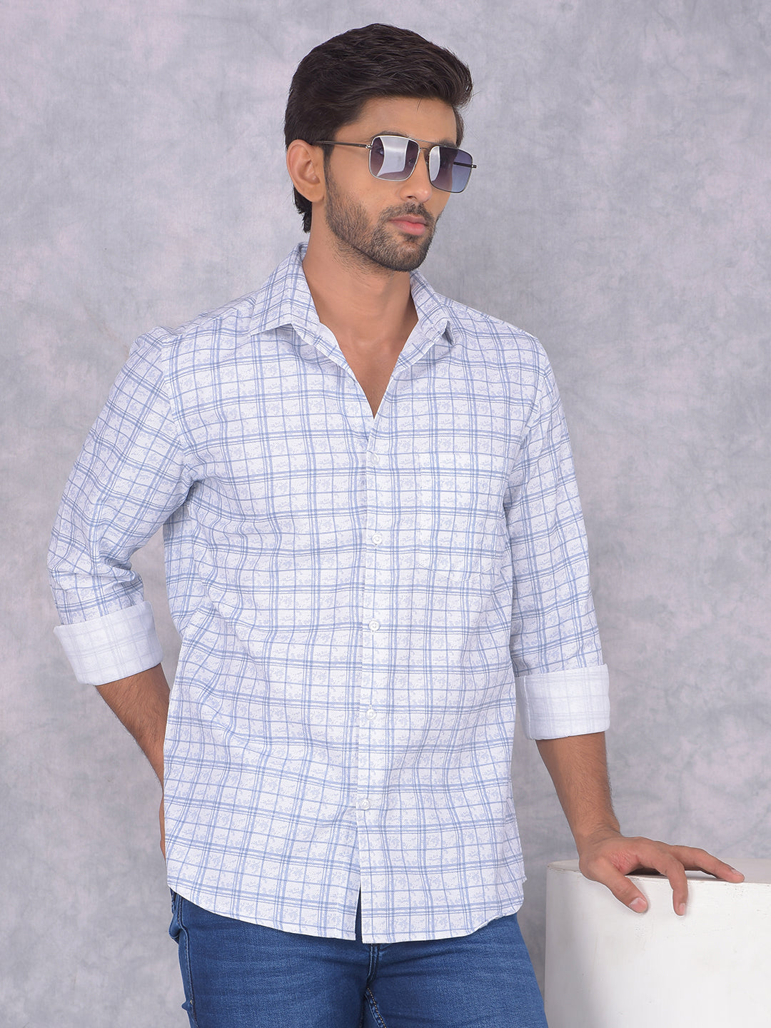 Blue Checked 100% Cotton Shirt-Men Shirts-Crimsoune Club