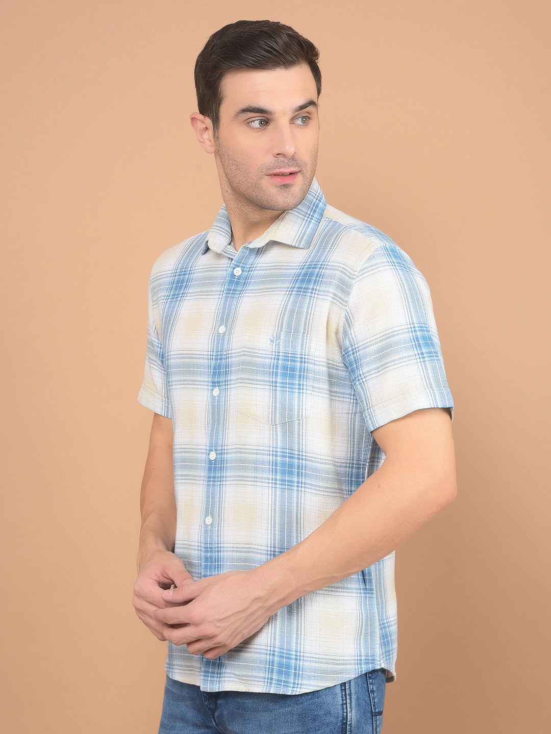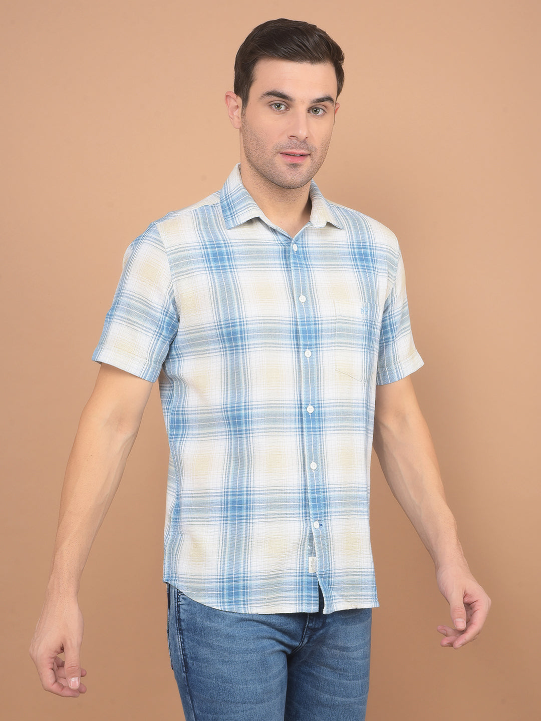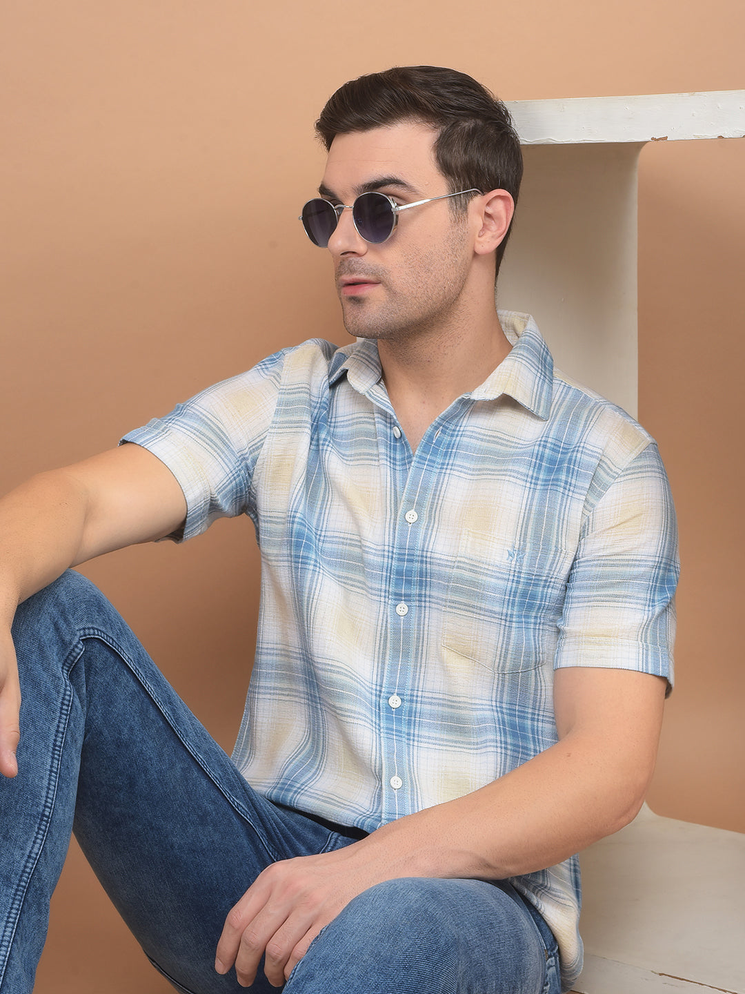 Blue Checked Linen Shirt-Men Shirts-Crimsoune Club
