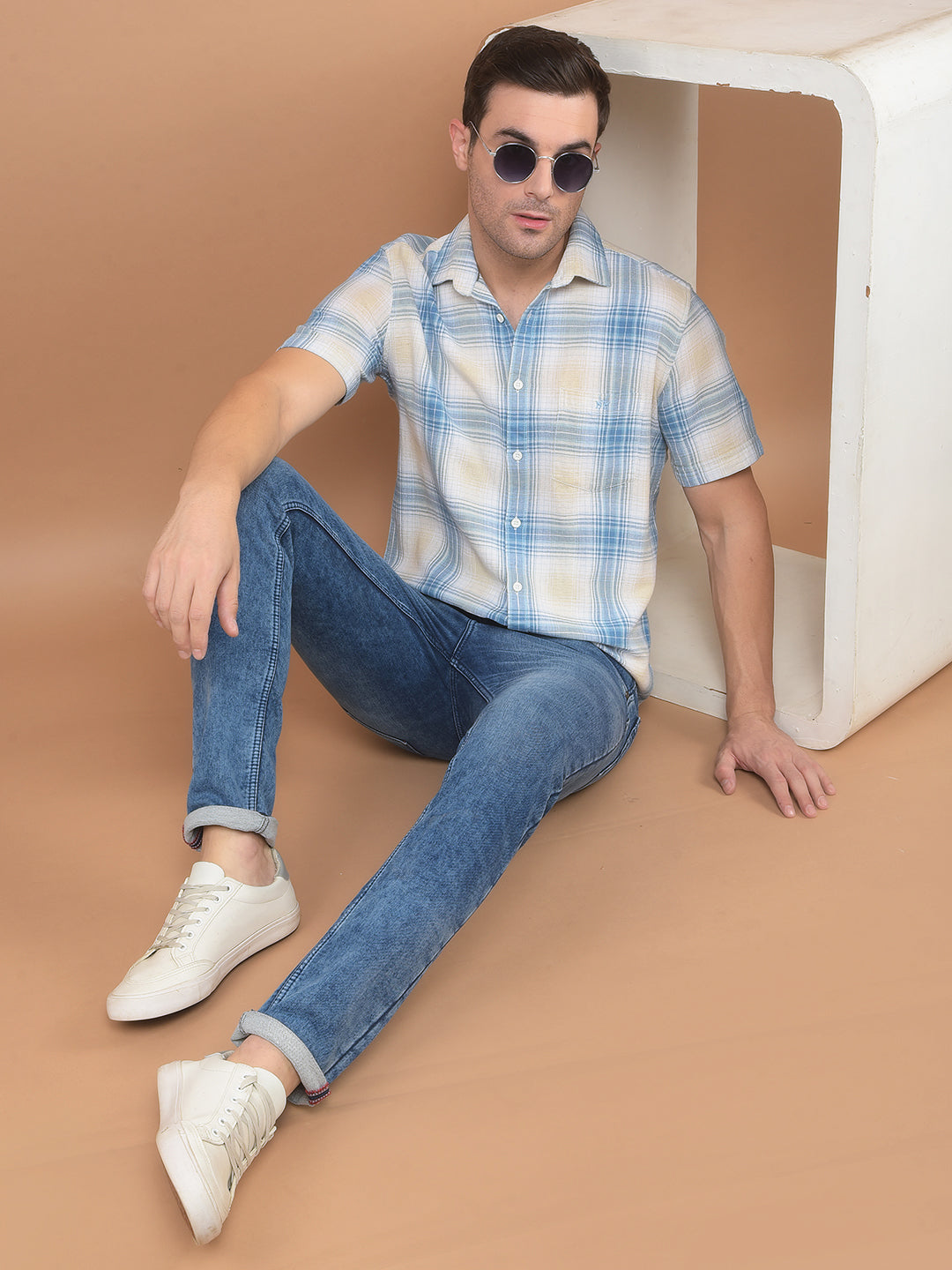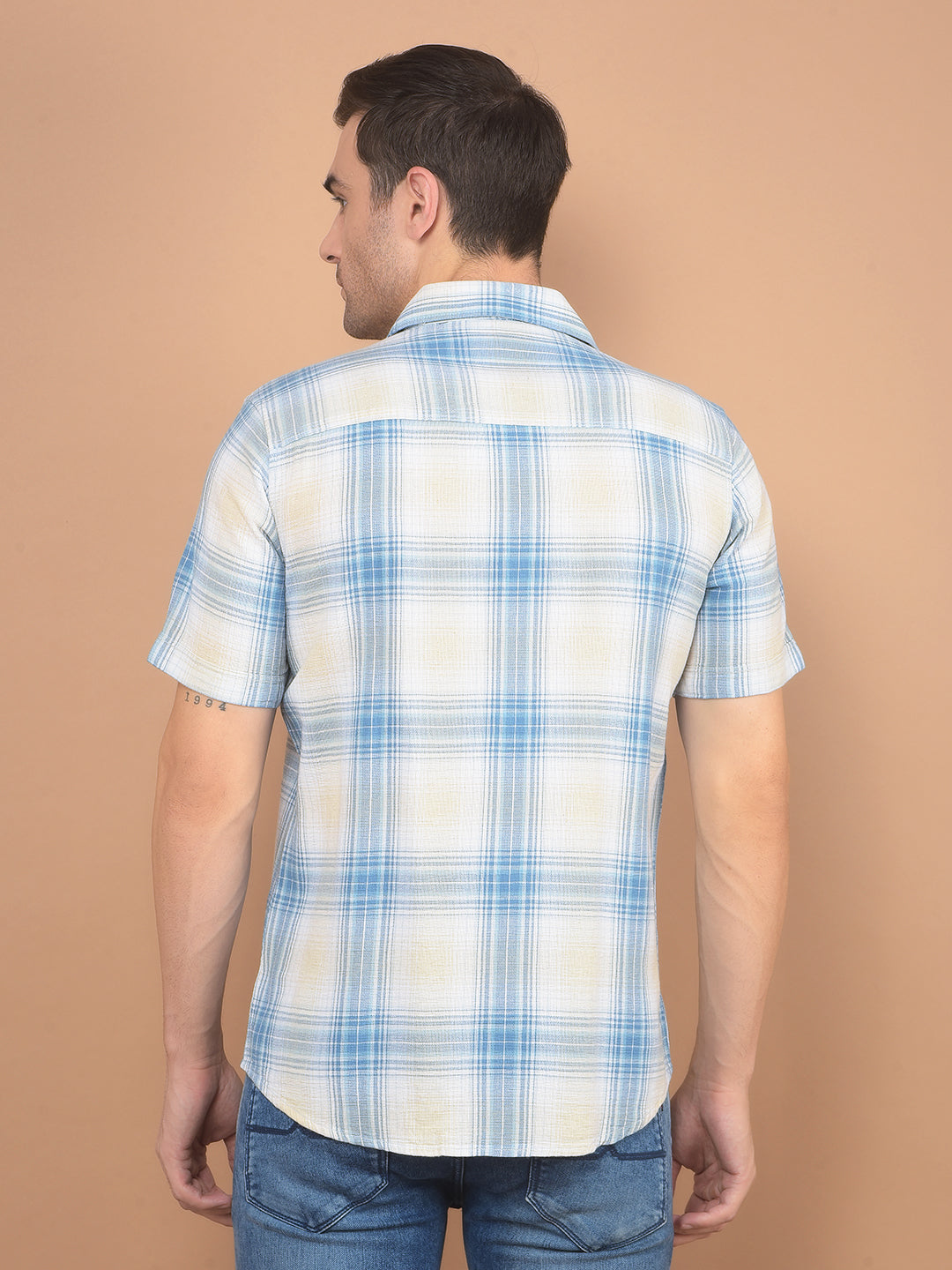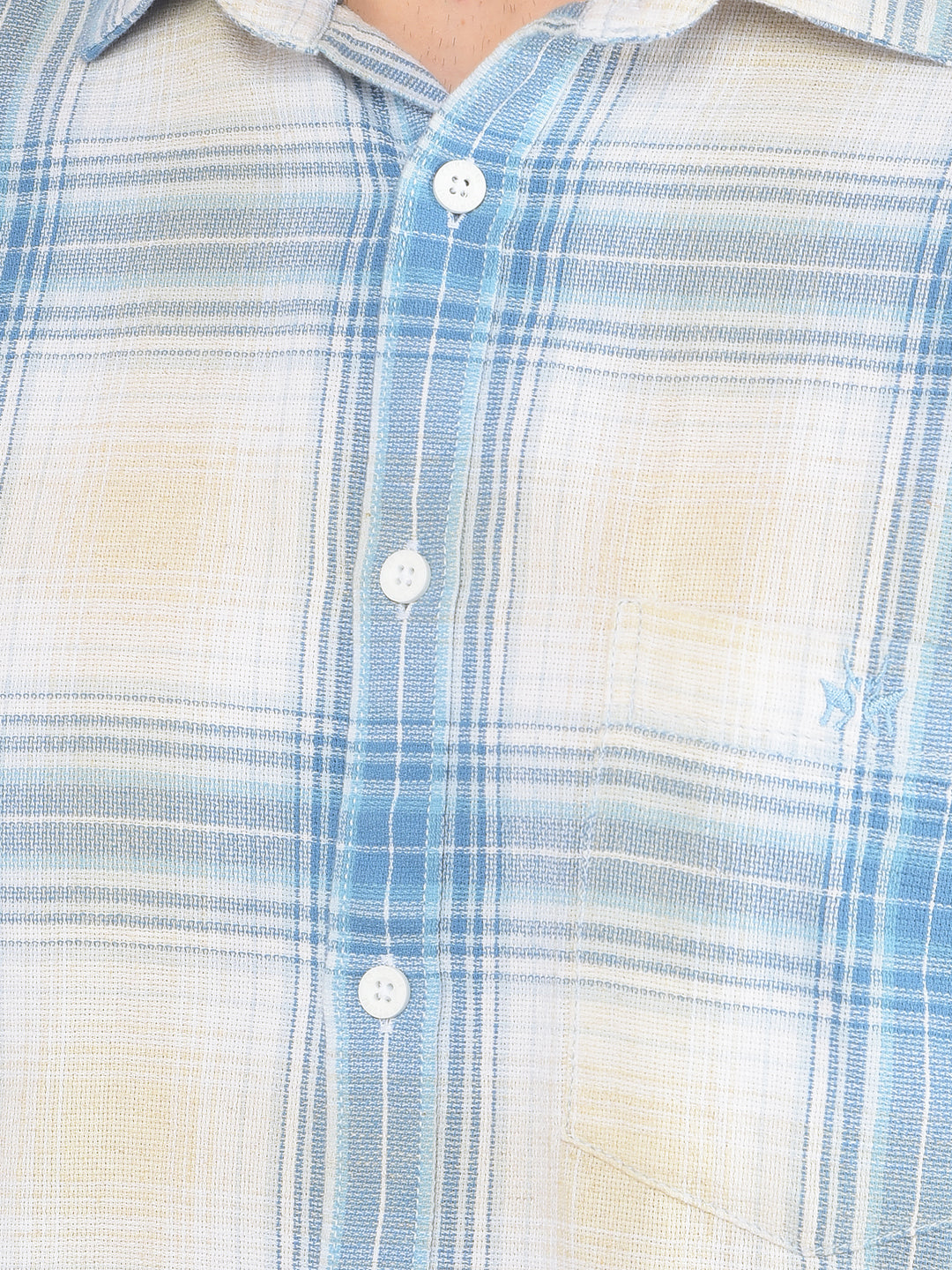 Blue Checked Linen Shirt-Men Shirts-Crimsoune Club