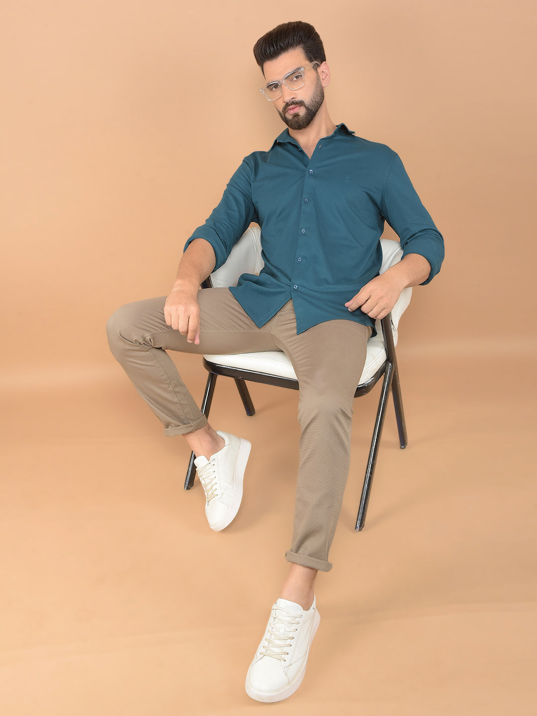 Crimsoune Club Presents A Men'S Shirt In The Unique Blue Brand Color, Enhanced By The Eye-Catching Solid Brand Pattern. This Shirt Blends Contemporary Style With Comfort, Perfect For Elevating Your Casual Or Smart-Casual Wardrobe.