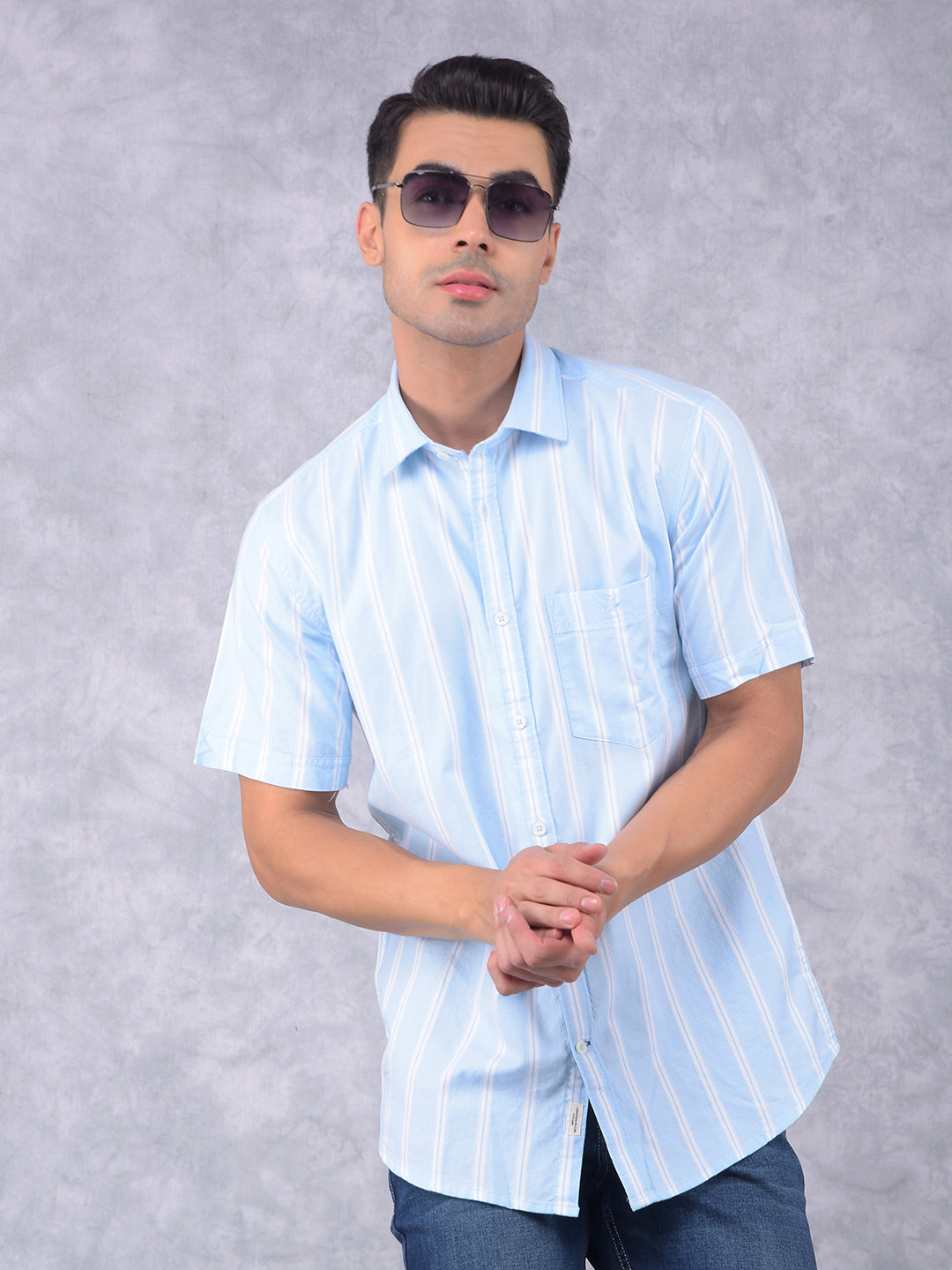 Blue Vertical Stripes 100% Cotton Shirt-Men Shirts-Crimsoune Club