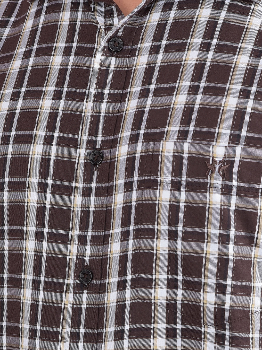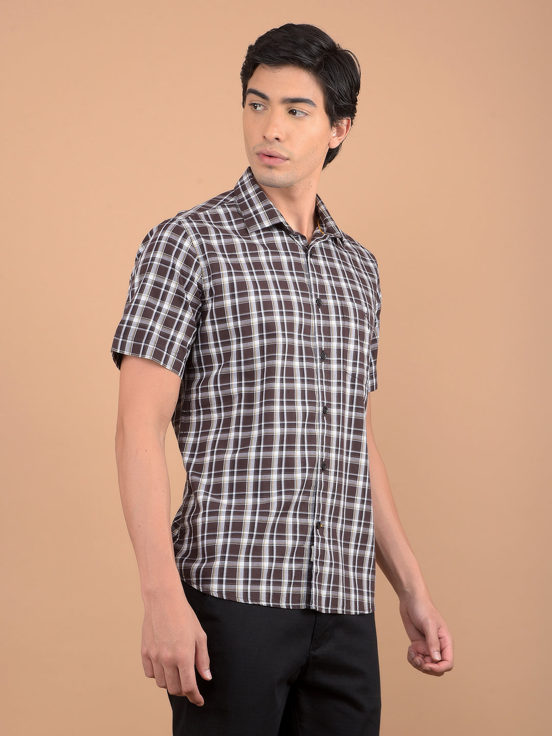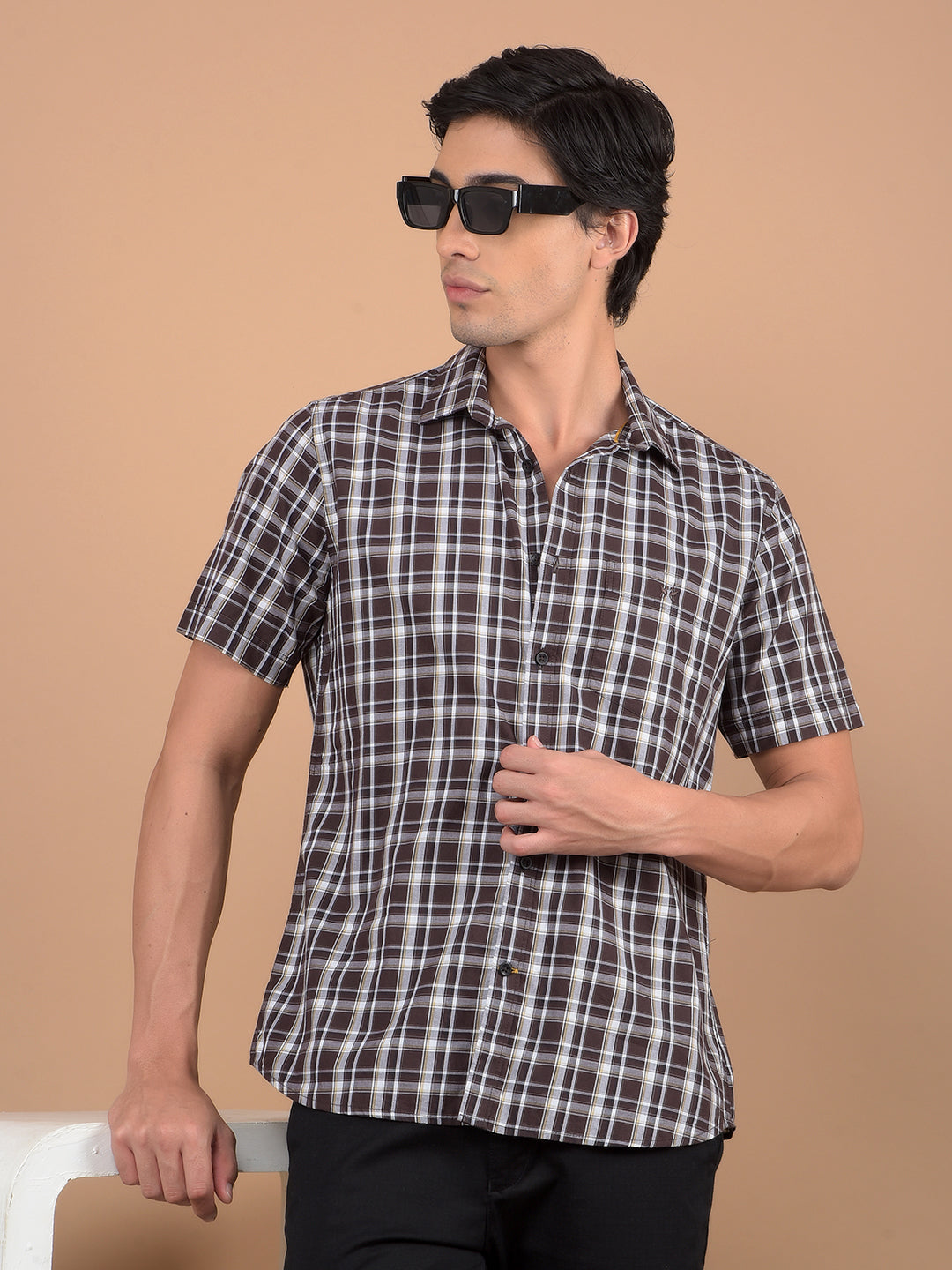 Brown Checked 100% Cotton Shirt-Men Shirts-Crimsoune Club