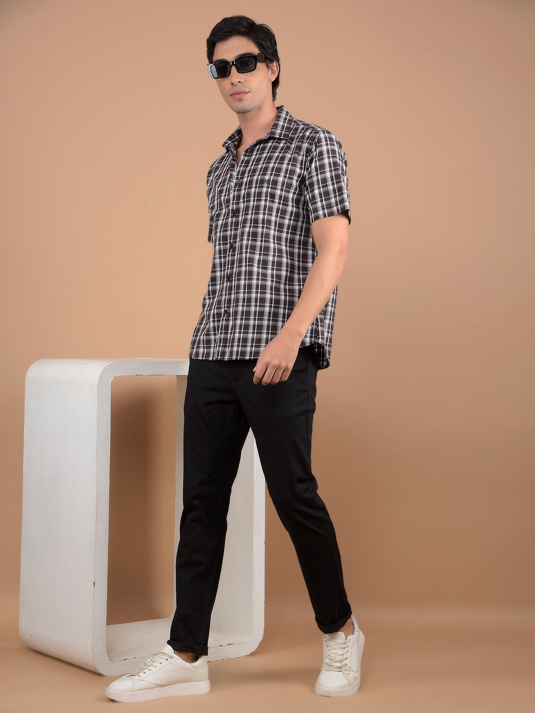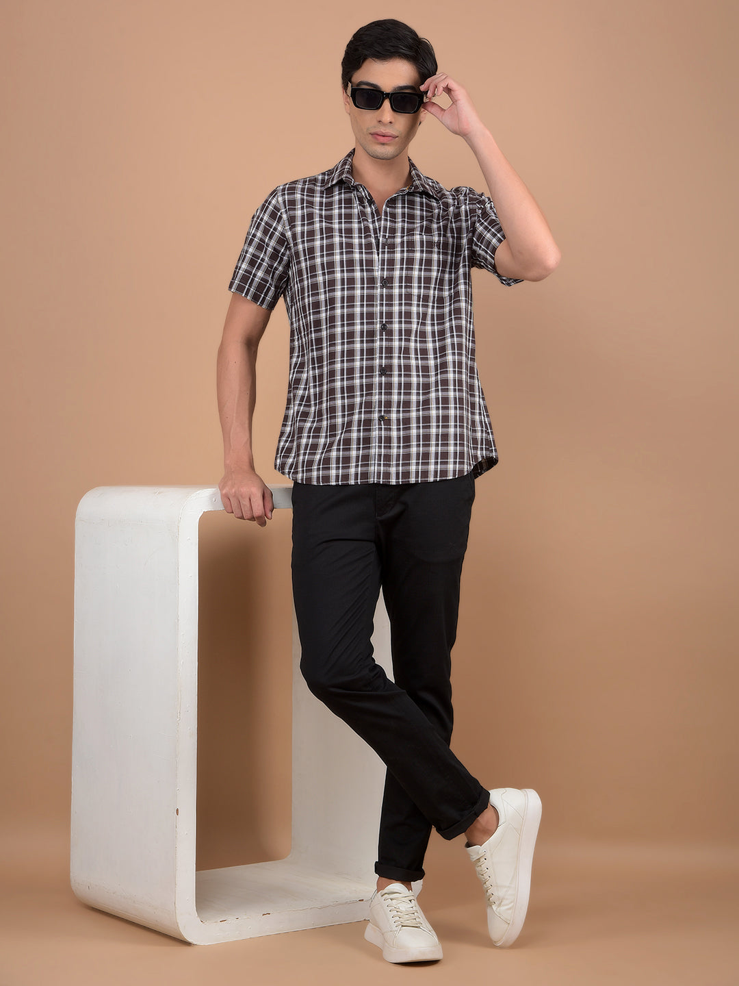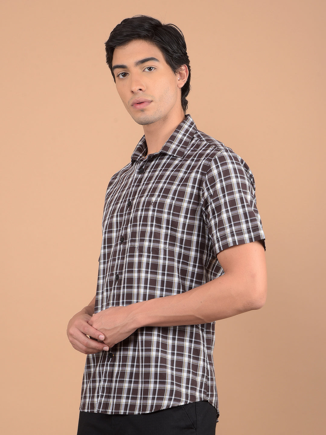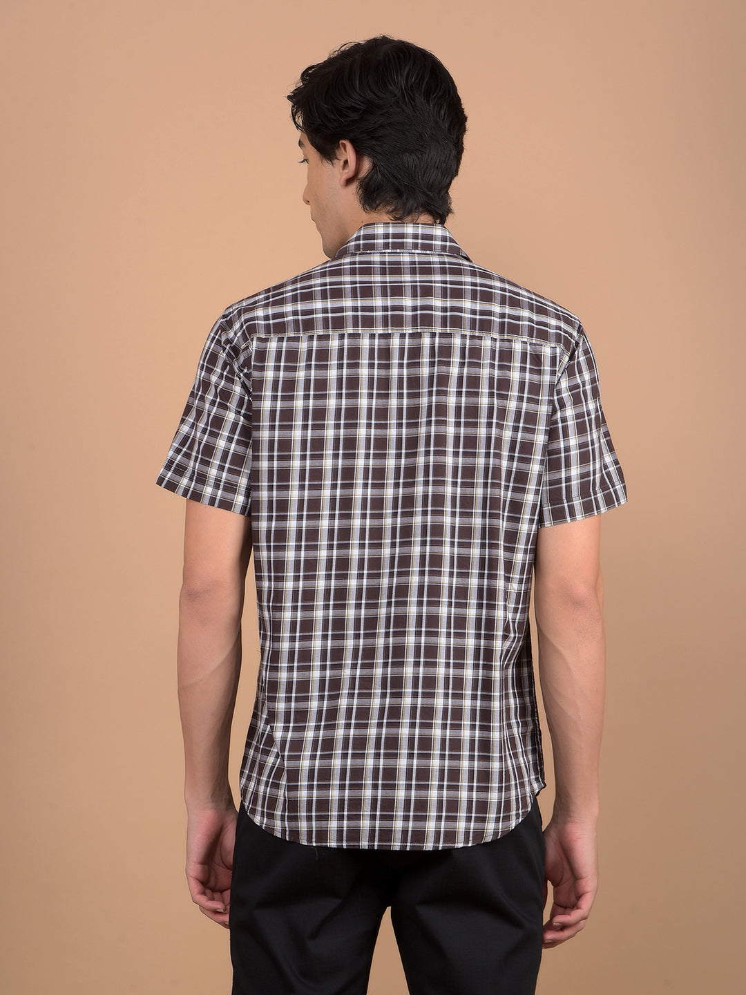 Brown Checked 100% Cotton Shirt-Men Shirts-Crimsoune Club