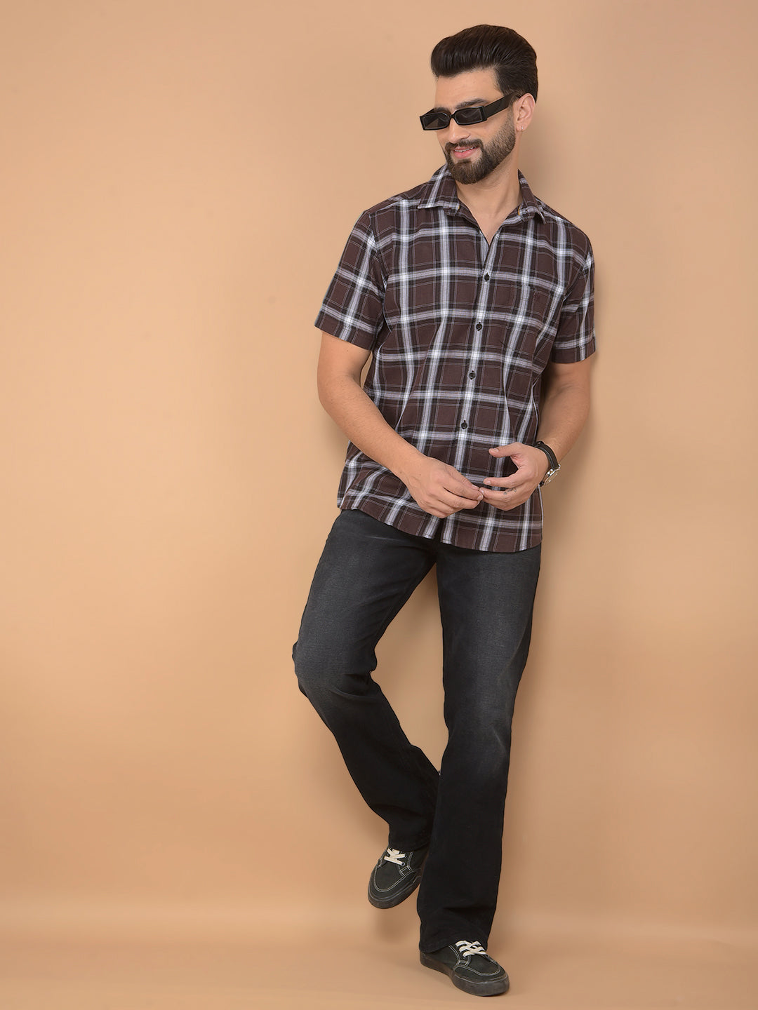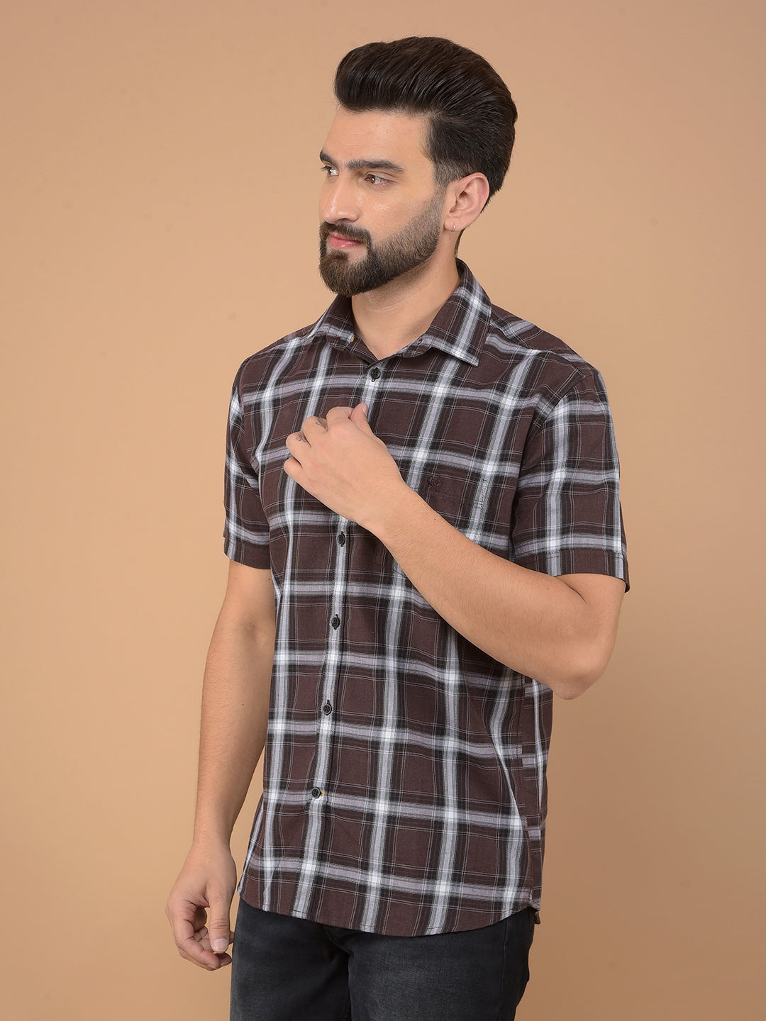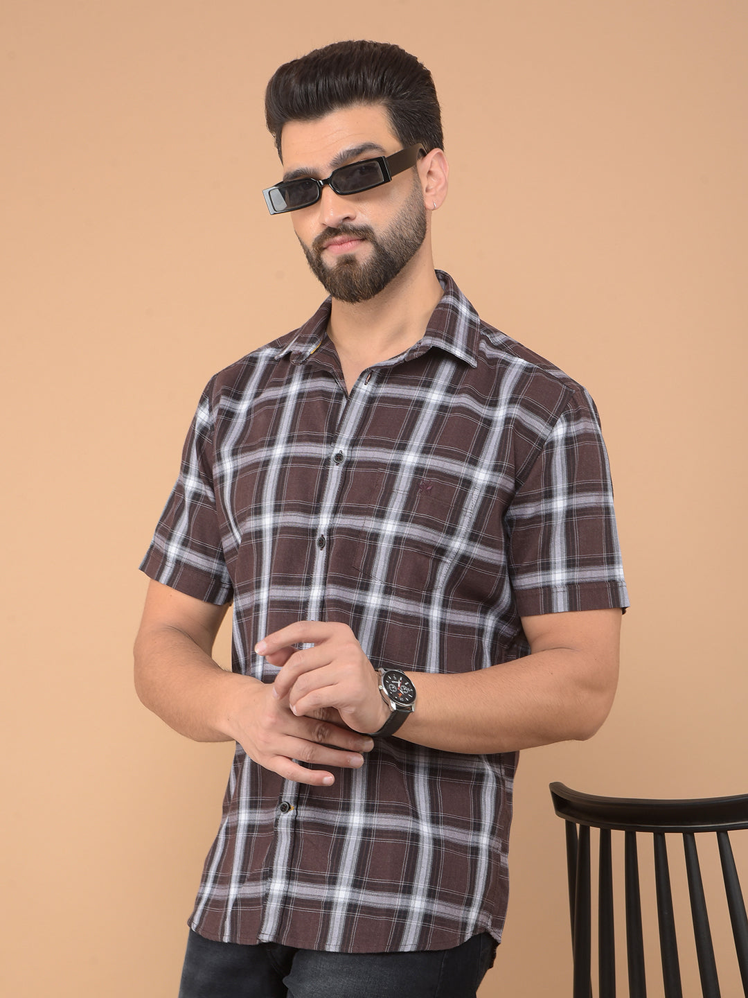 Brown Checked Shirt-Men Shirts-Crimsoune Club