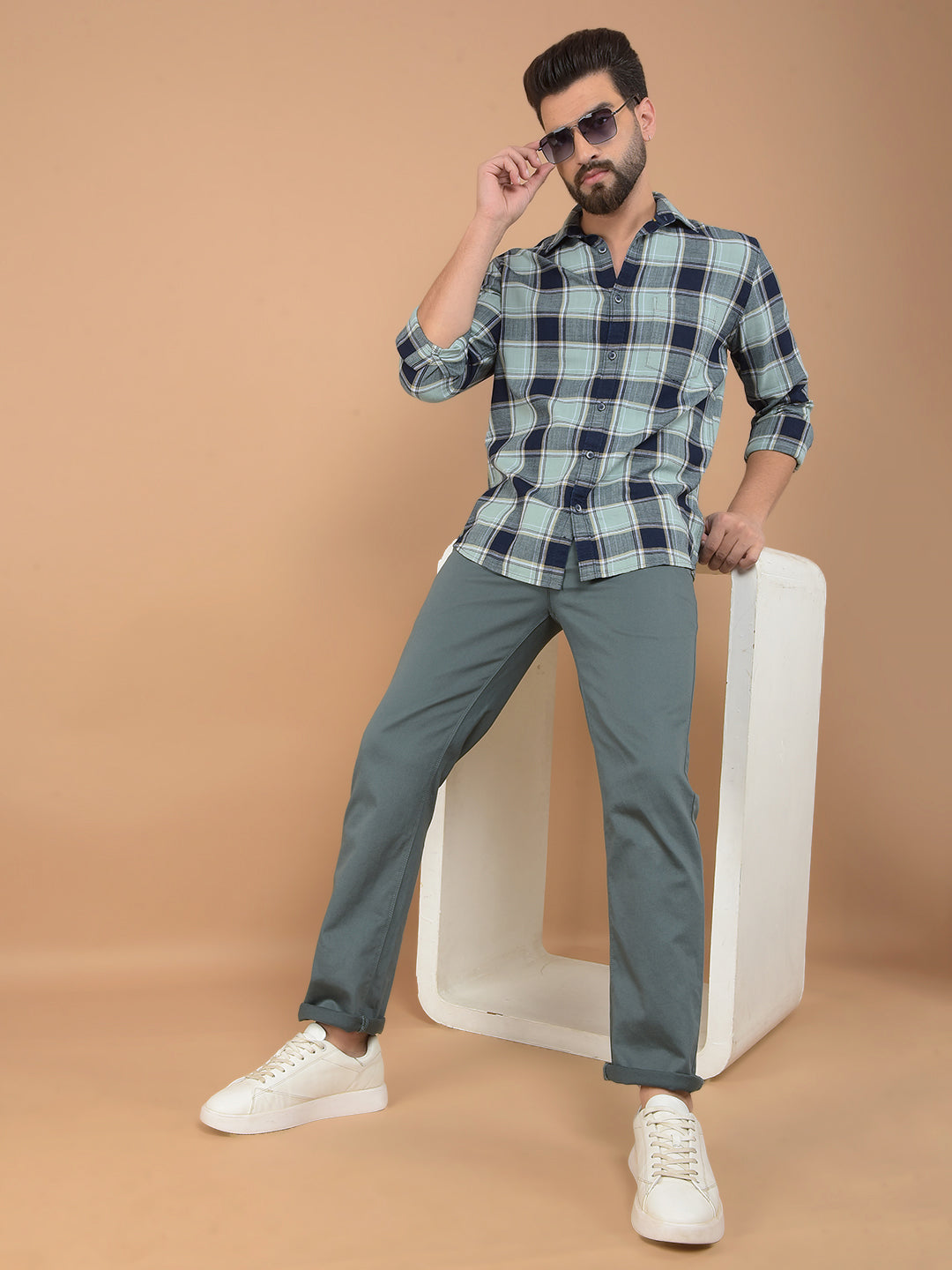 Green Checked 100% Cotton Shirt-Men Shirts-Crimsoune Club
