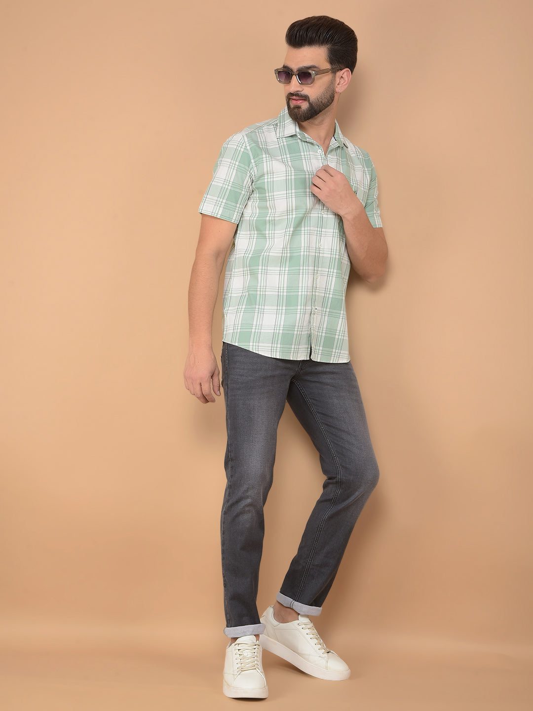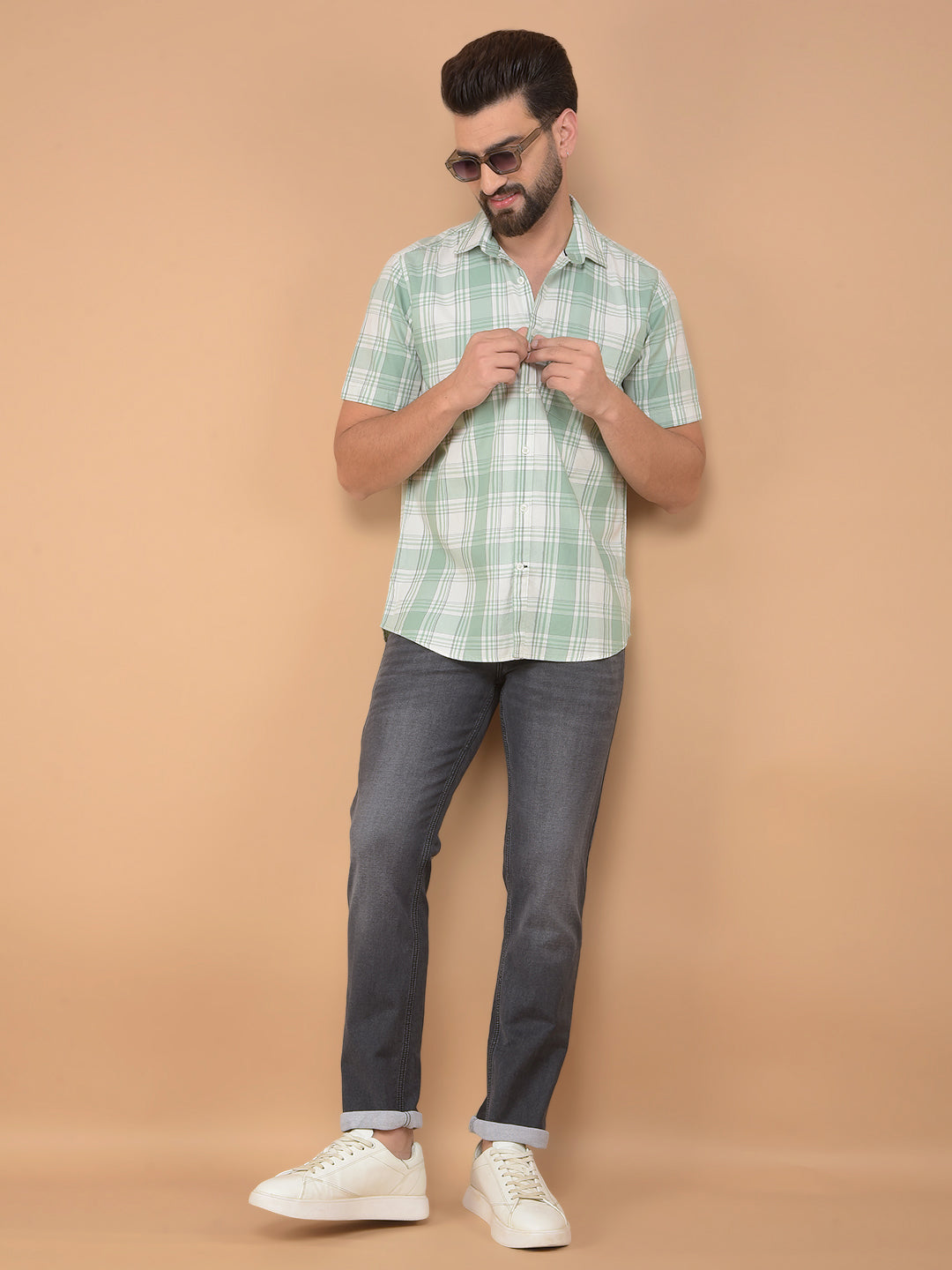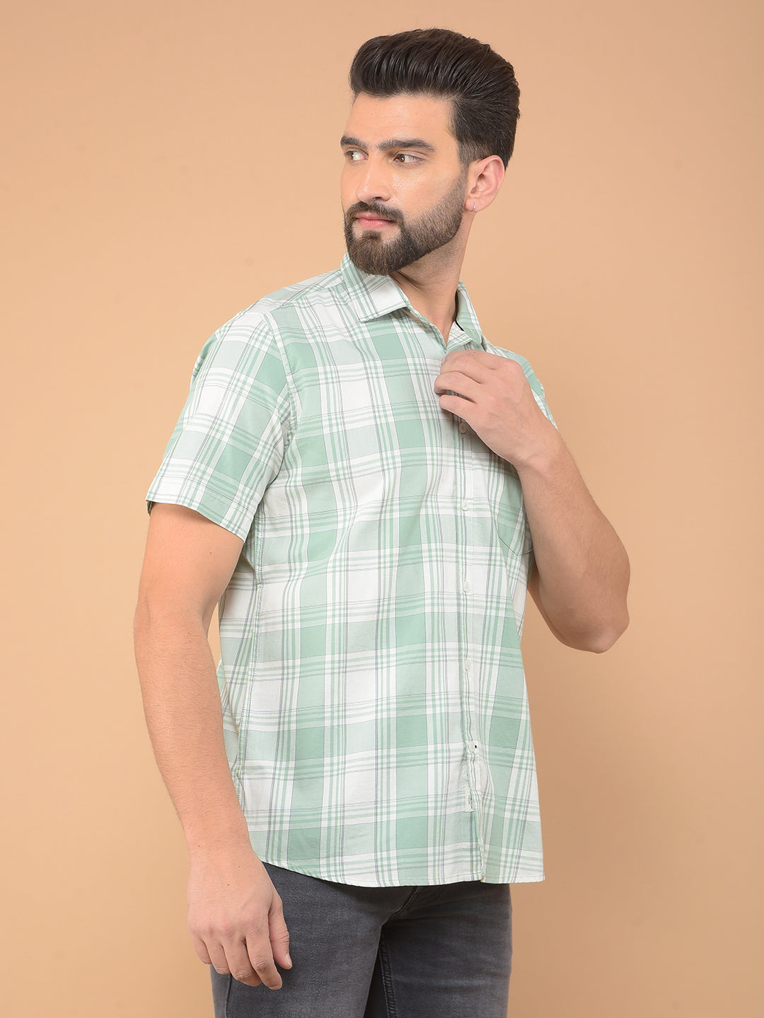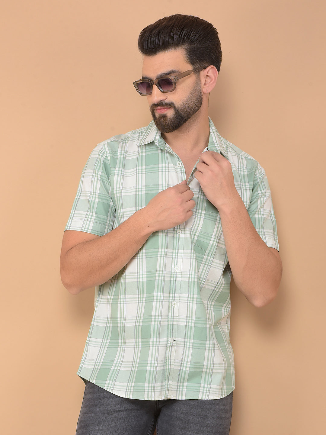 Green Checked 100% Cotton Shirt-Men Shirts-Crimsoune Club