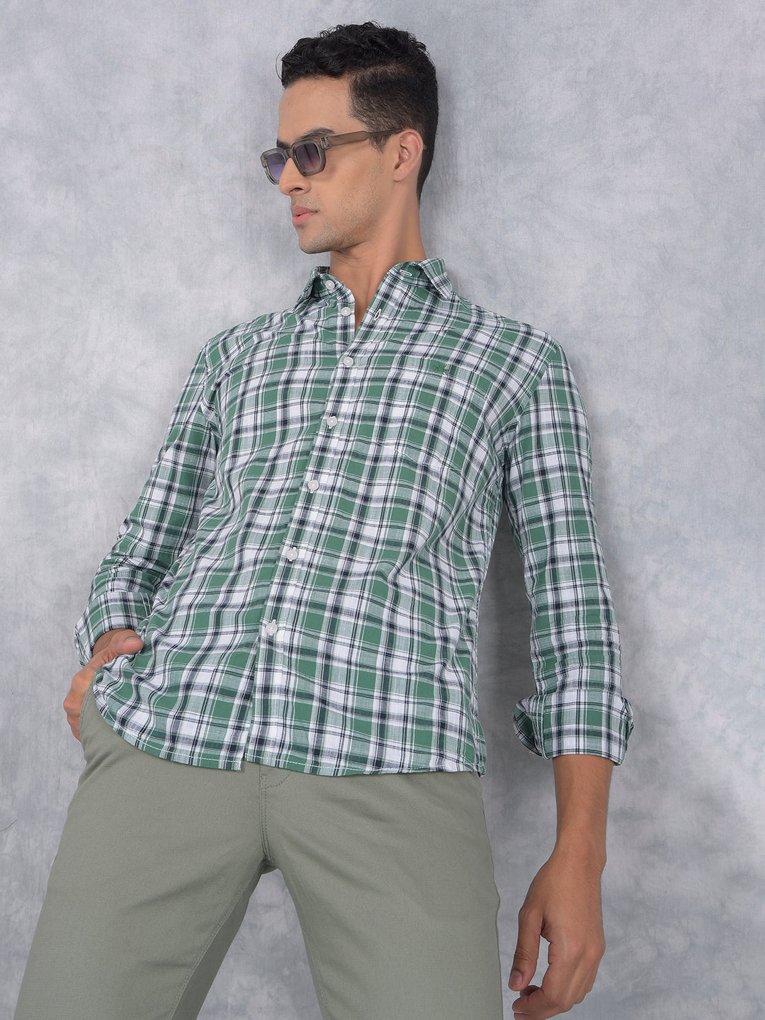 Green Checked 100% Cotton Shirt-Men Shirts-Crimsoune Club