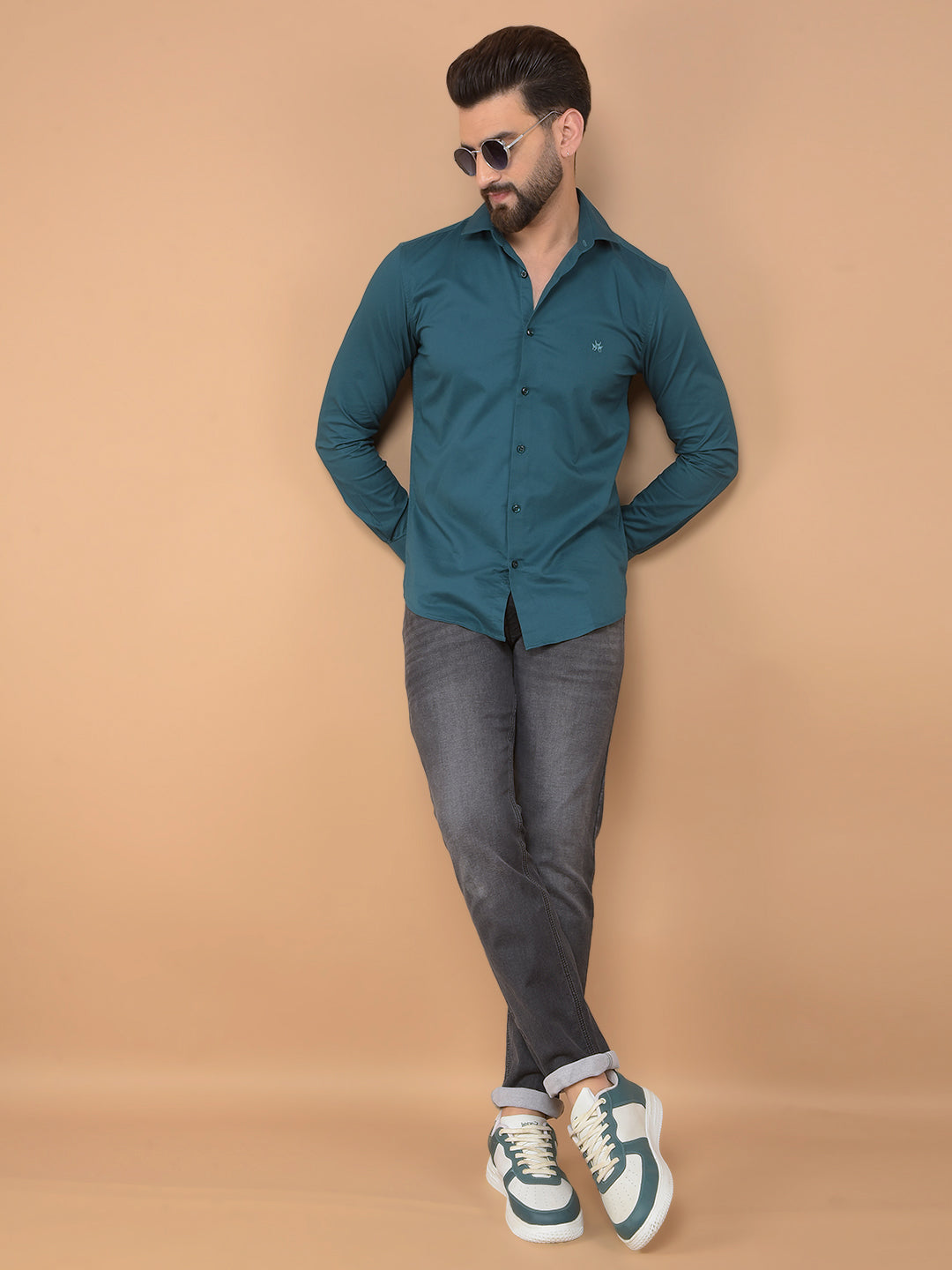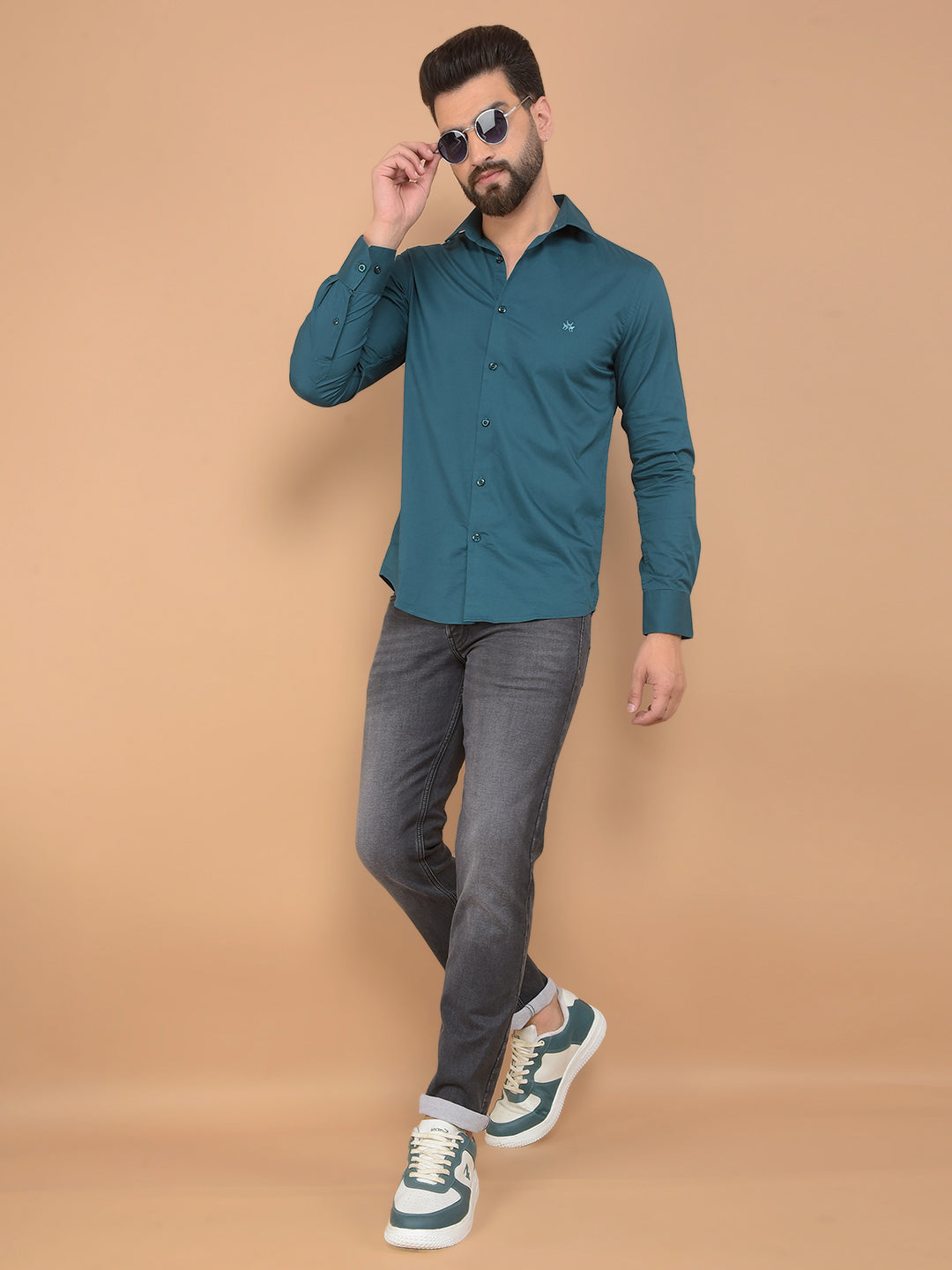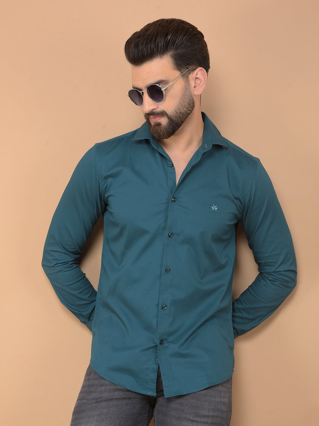 Crimsoune Club Presents A Men'S Shirt In The Unique Green Brand Color, Enhanced By The Eye-Catching Solid Brand Pattern. This Shirt Blends Contemporary Style With Comfort, Perfect For Elevating Your Casual Or Smart-Casual Wardrobe.