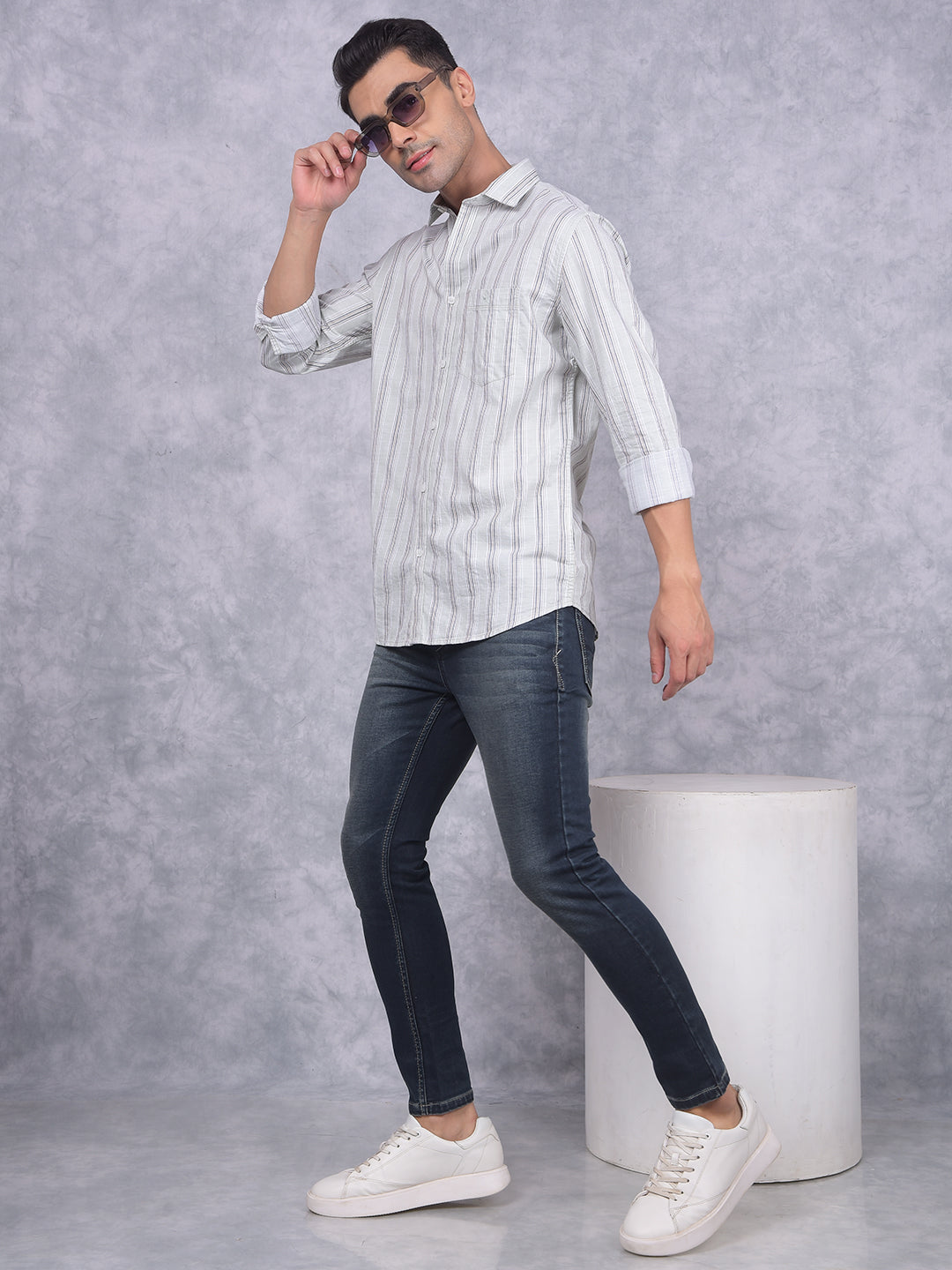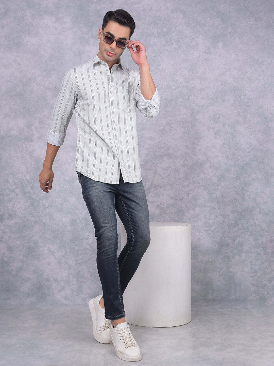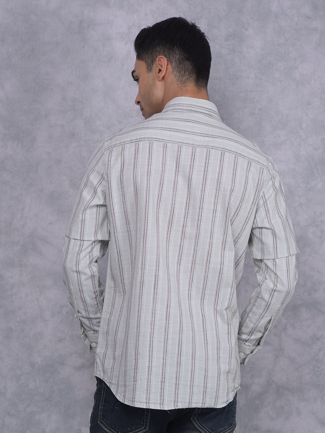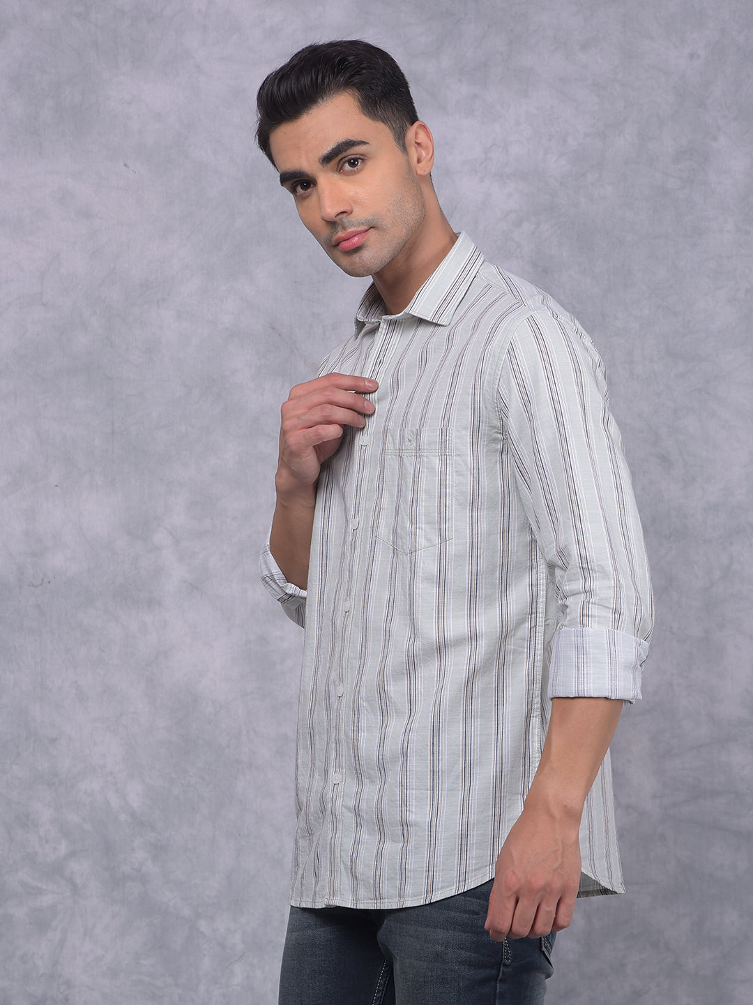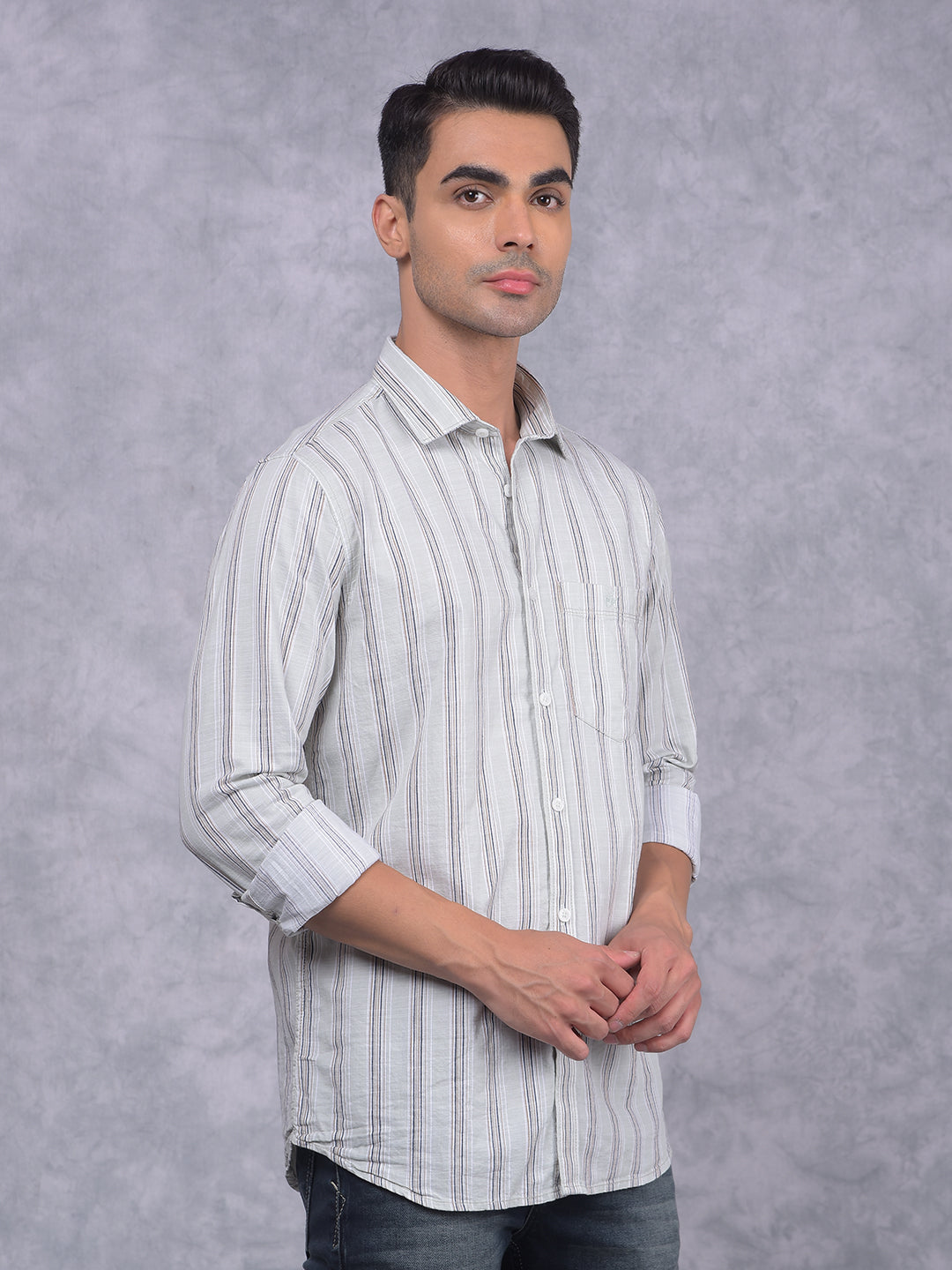Green Vertical Stripes 100% Cotton Shirt-Men Shirts-Crimsoune Club