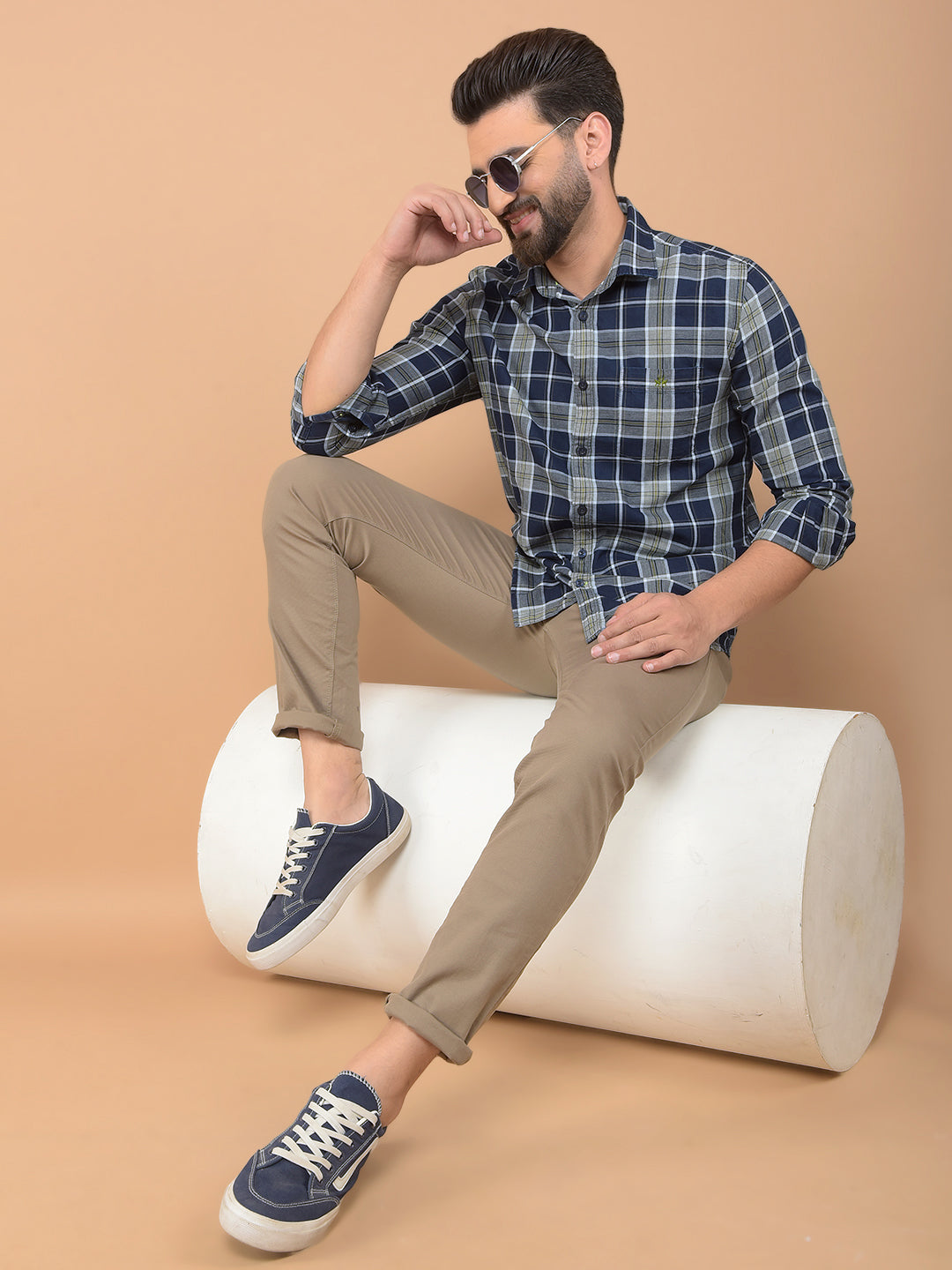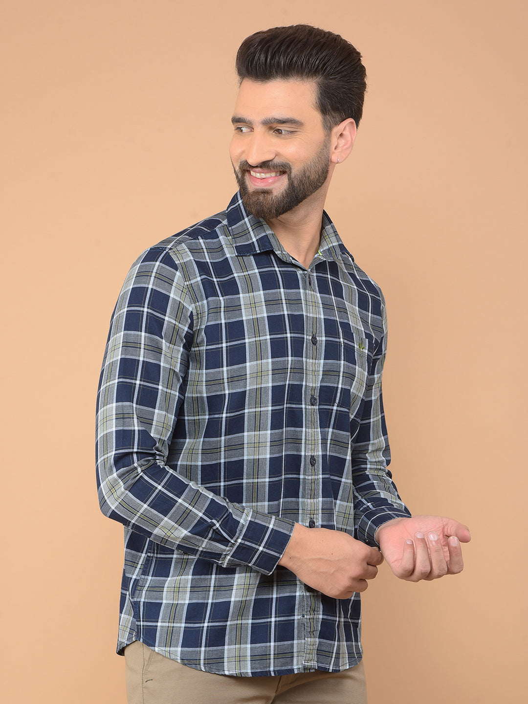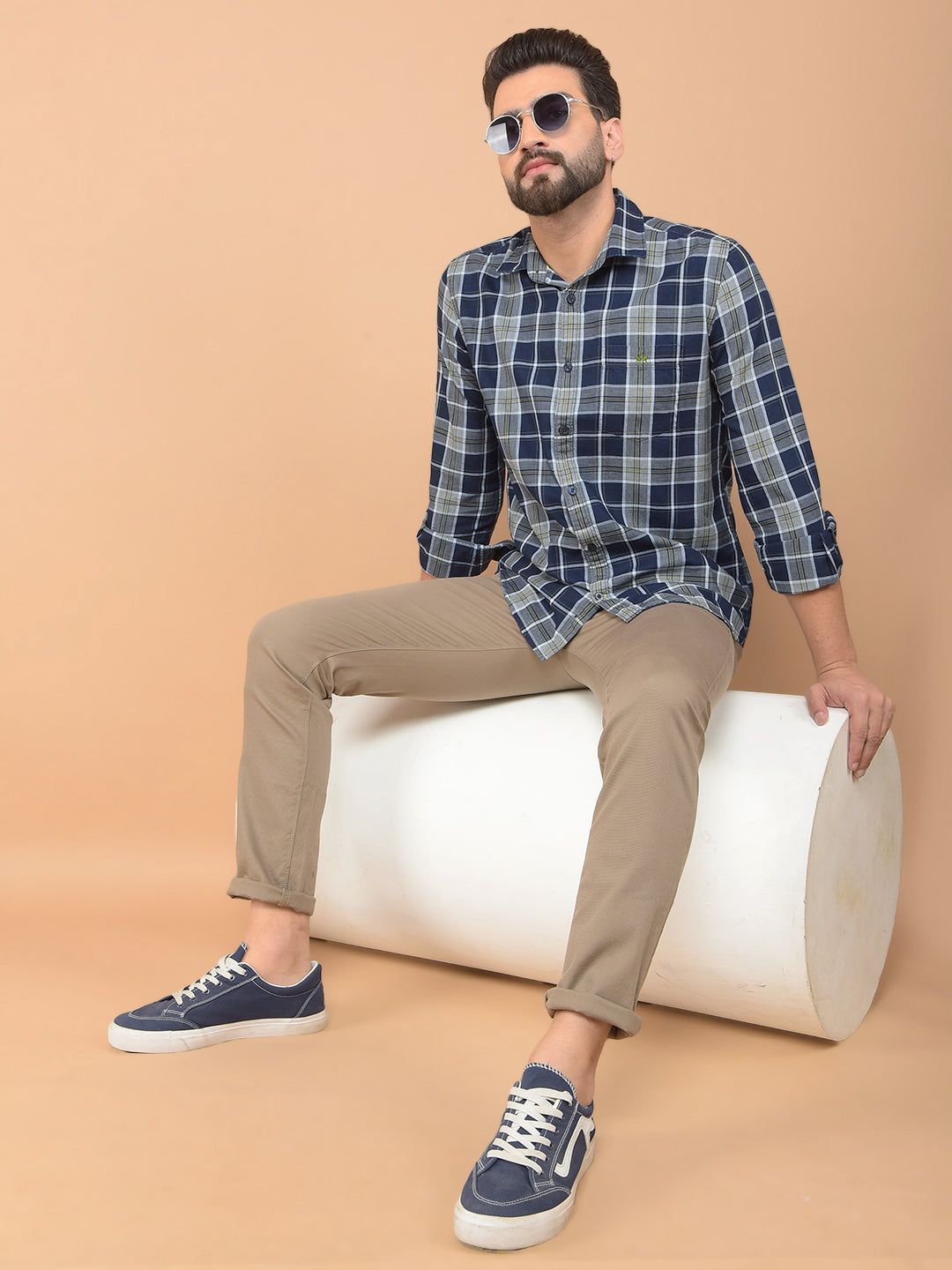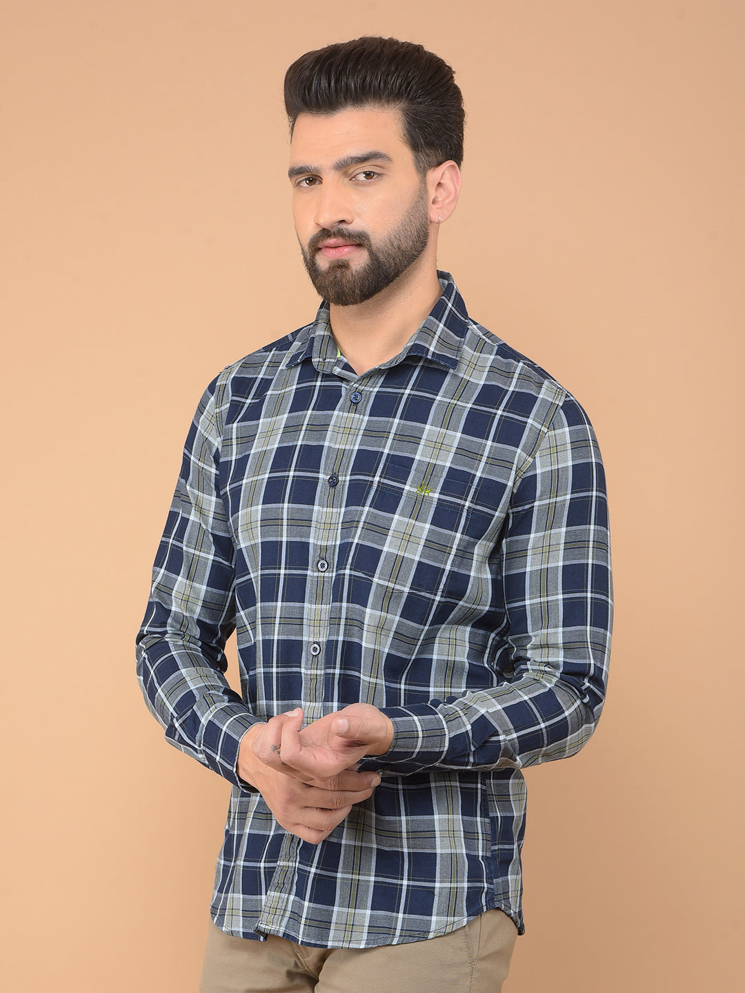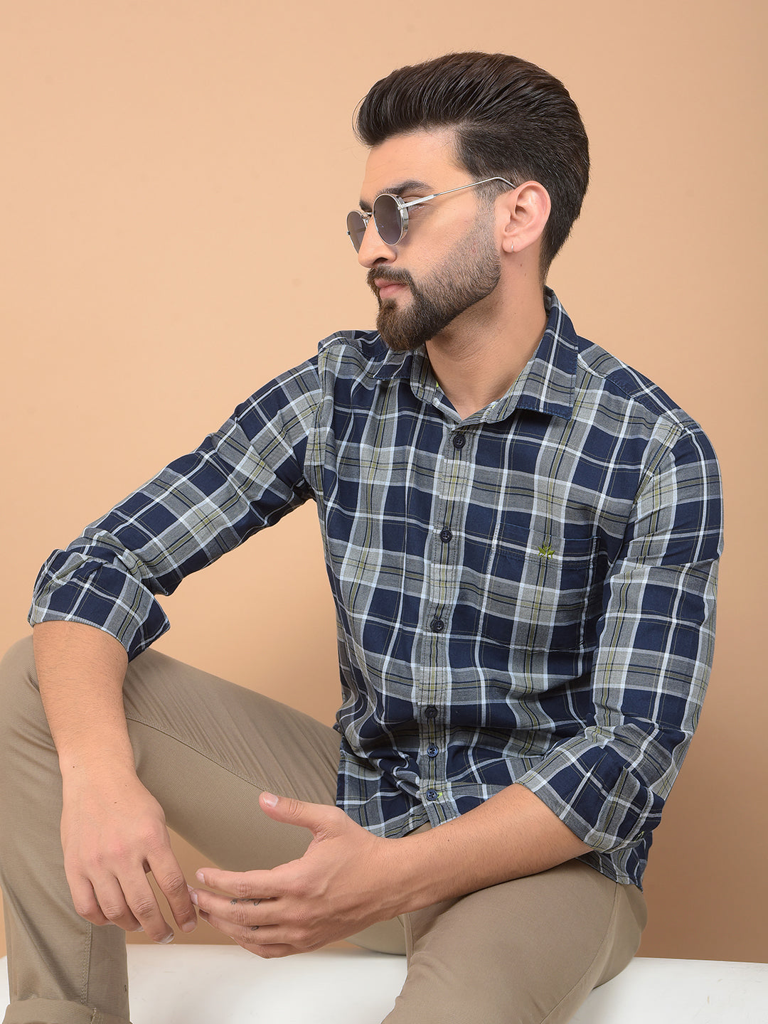 Grey Checked 100% Cotton Shirt-Men Shirts-Crimsoune Club