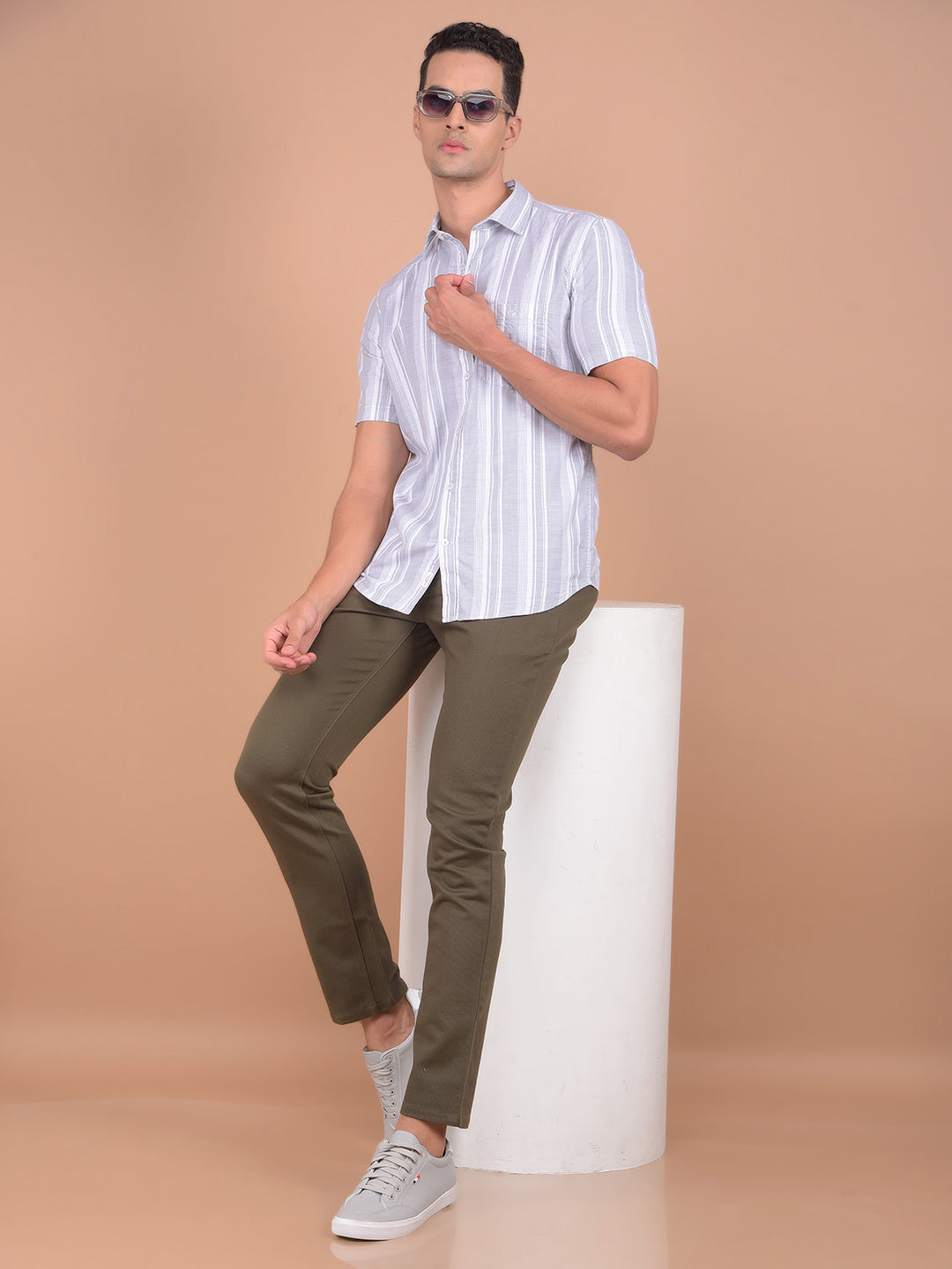 Grey Vertical Stripes 100% Cotton Shirt-Men Shirts-Crimsoune Club