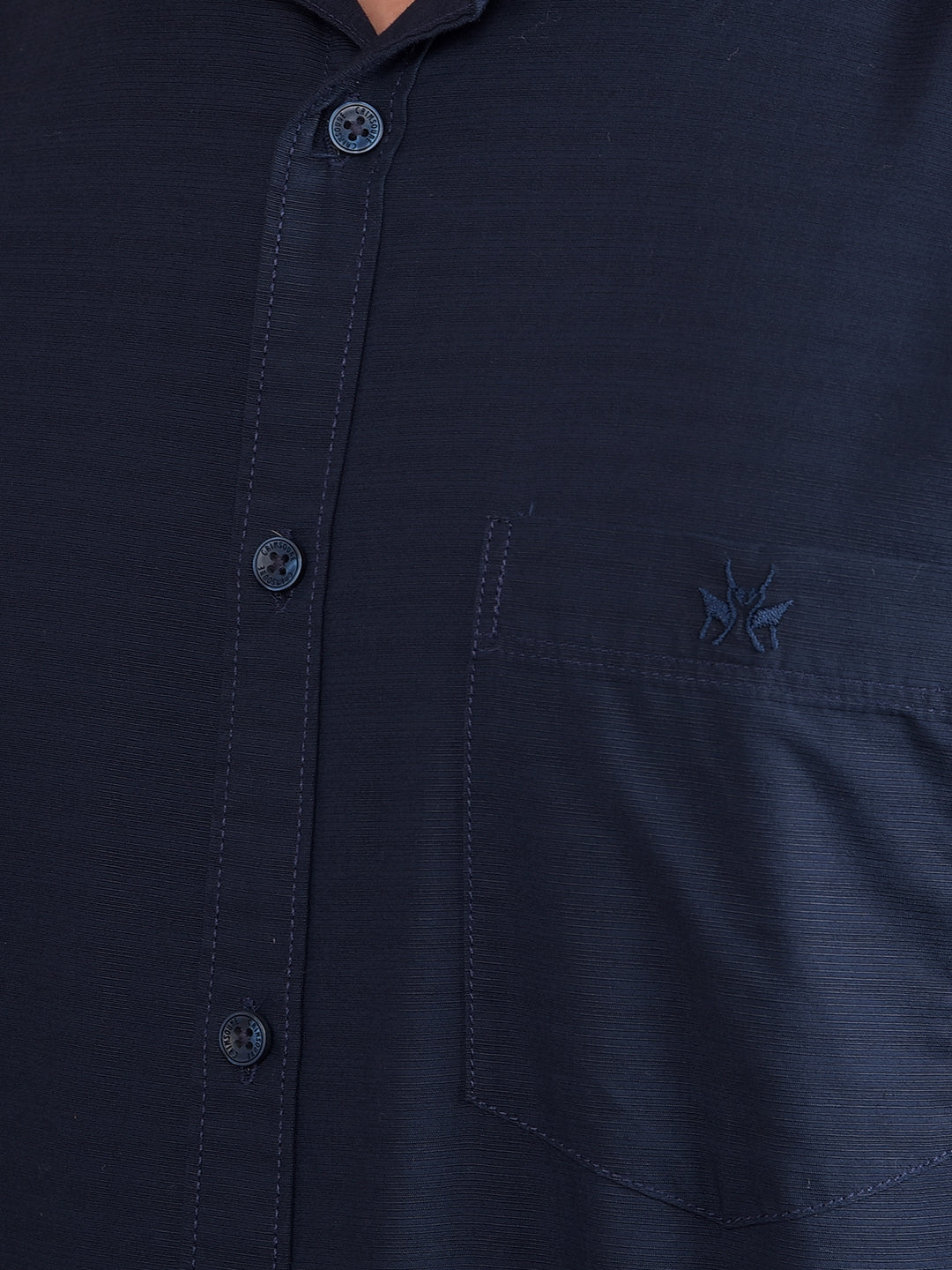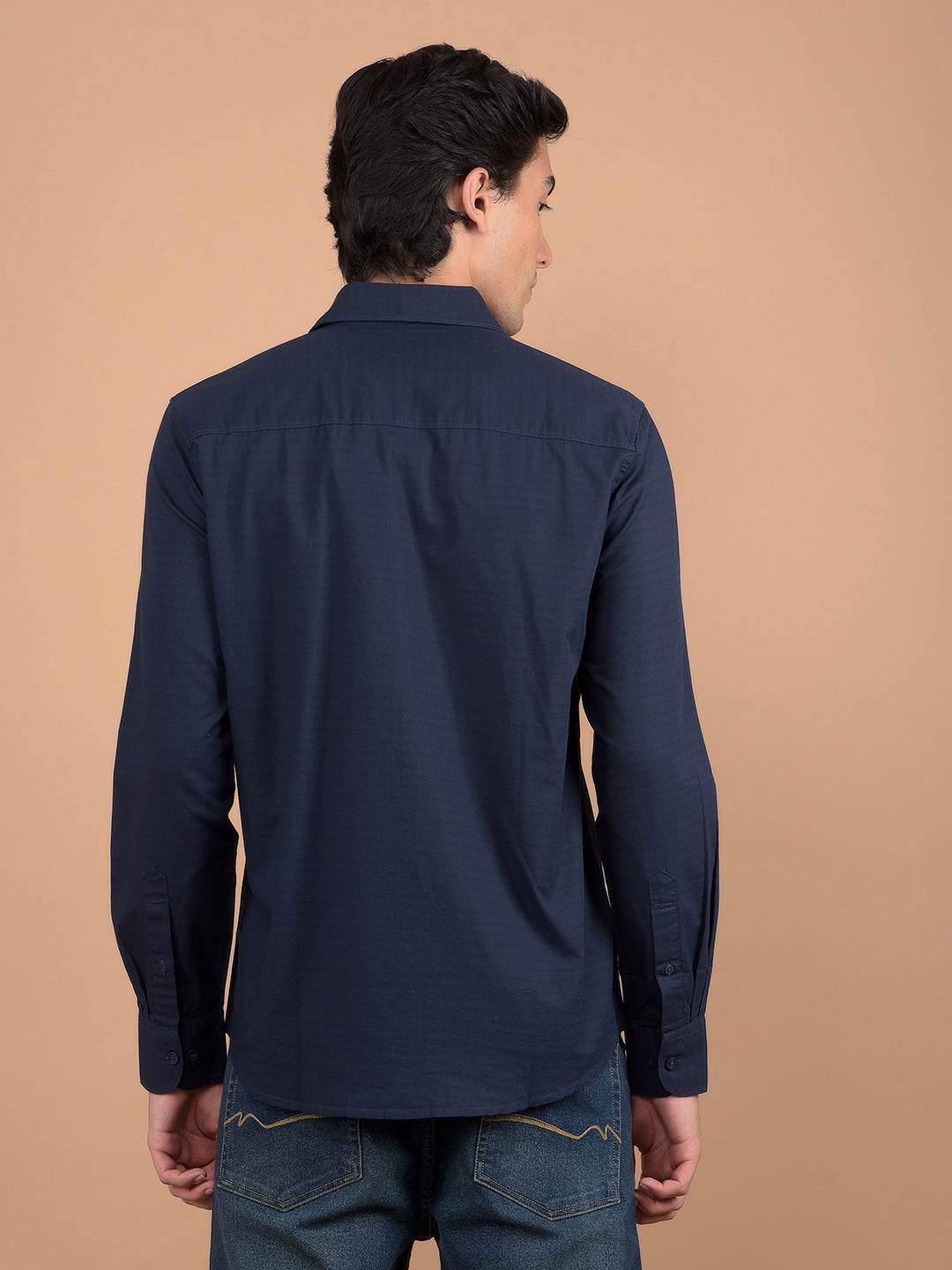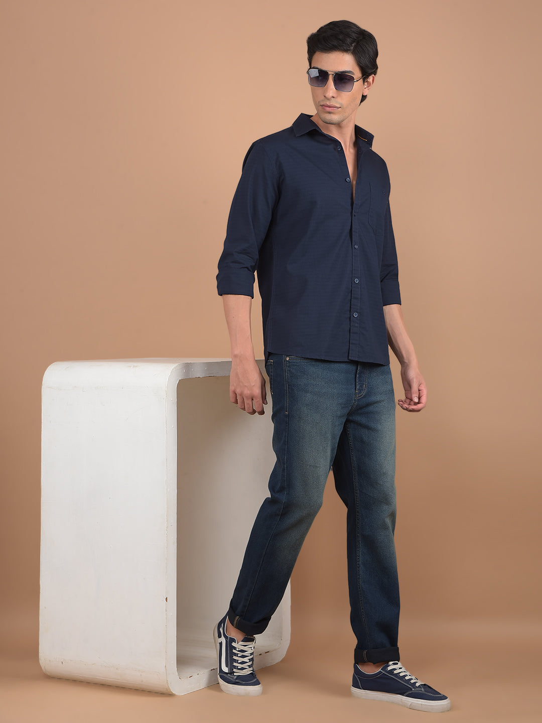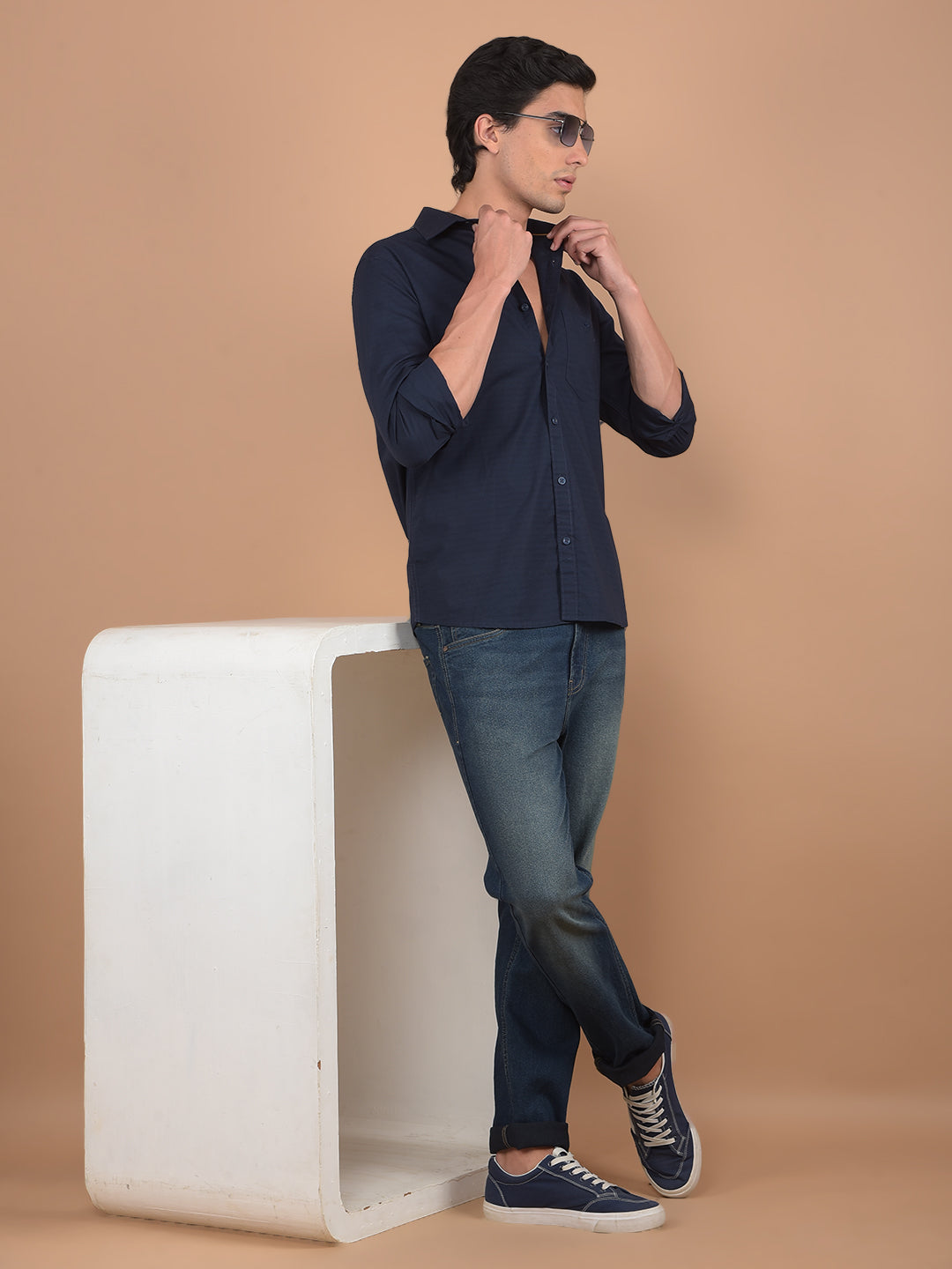Crimsoune Club Men's Shirt In Navy Blue Color With Striped Pattern Combines Modern Style With Premium Comfort, Perfect For Both Casual And Semi-Formal Occasions.