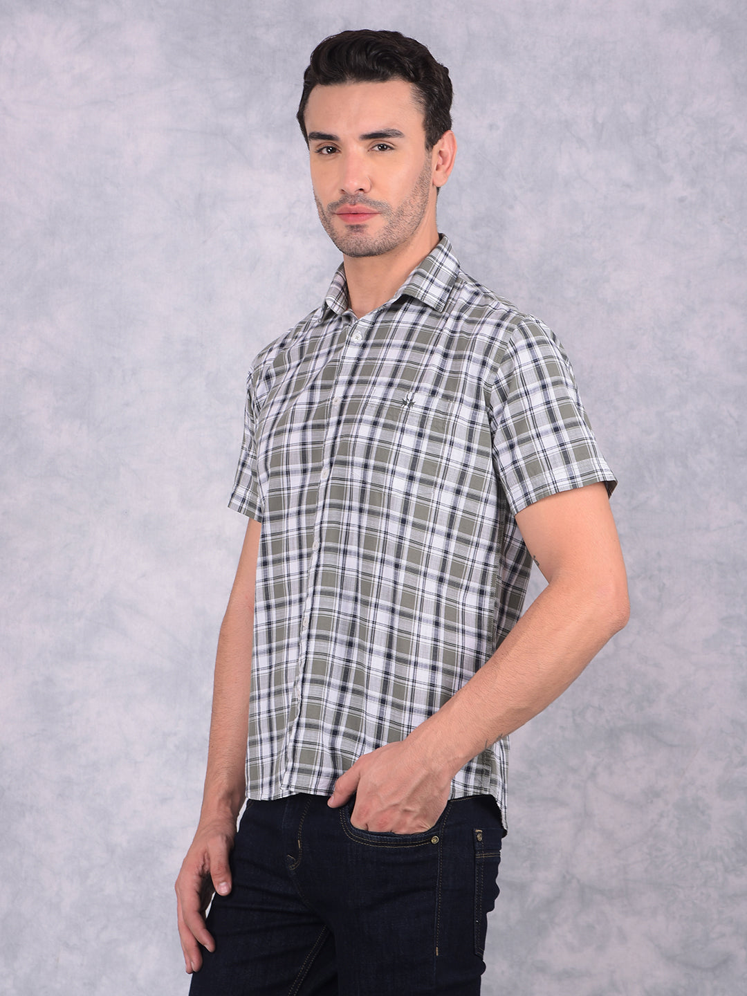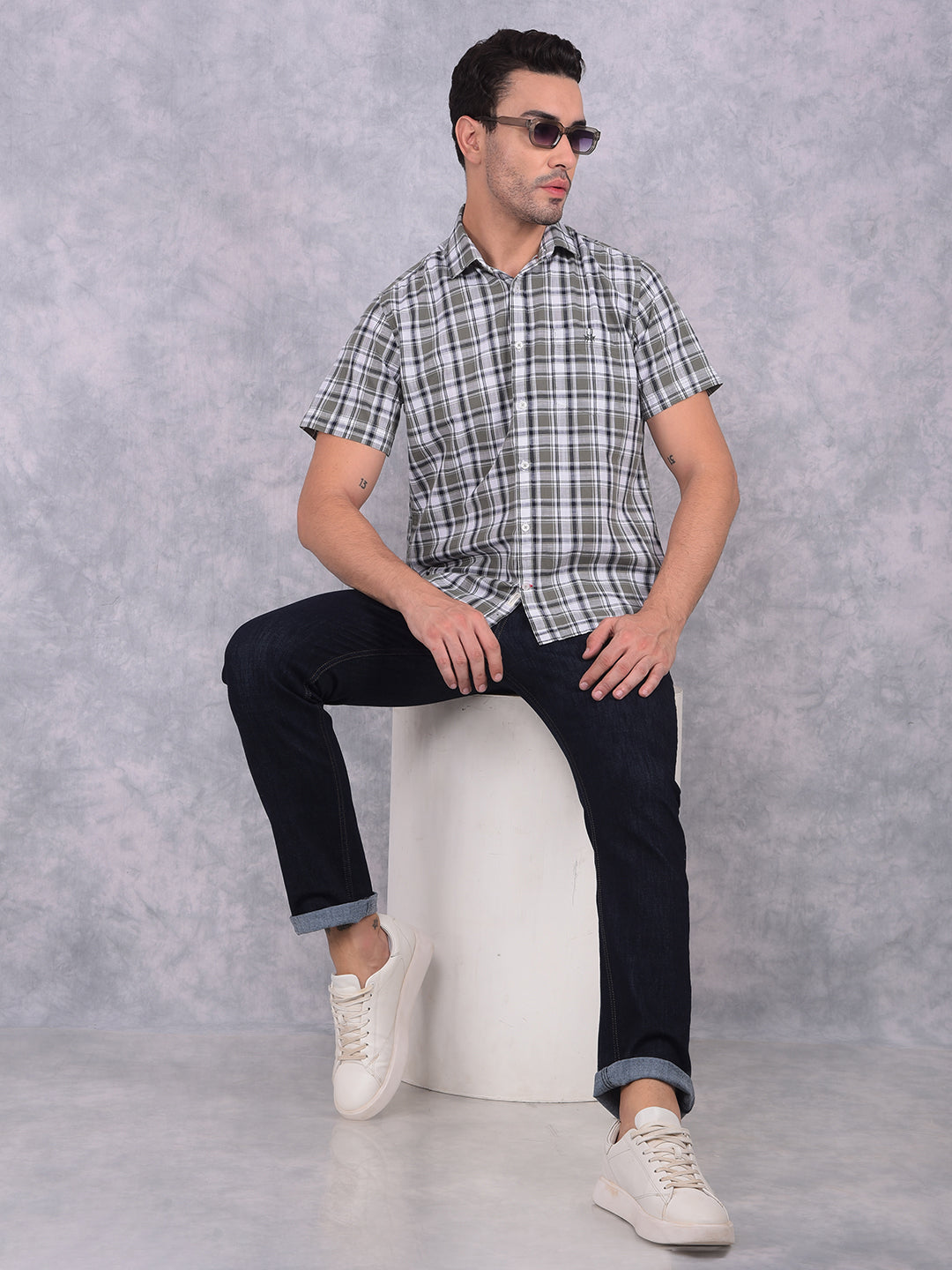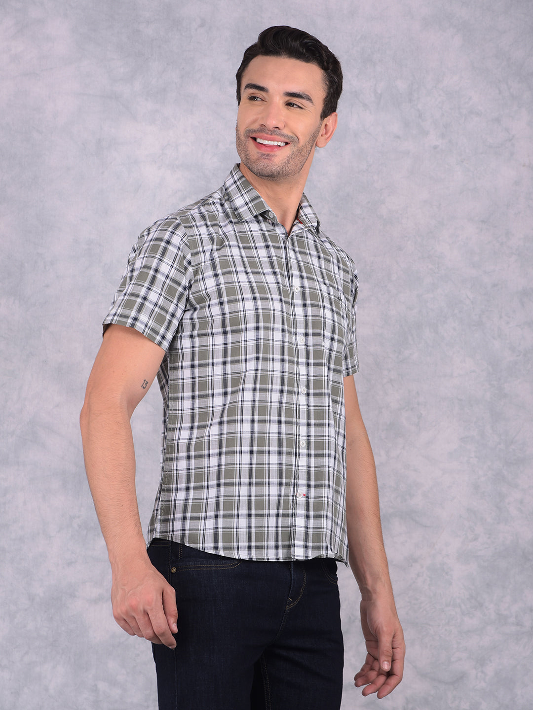 Olive Checked 100% Cotton Shirt-Men Shirts-Crimsoune Club