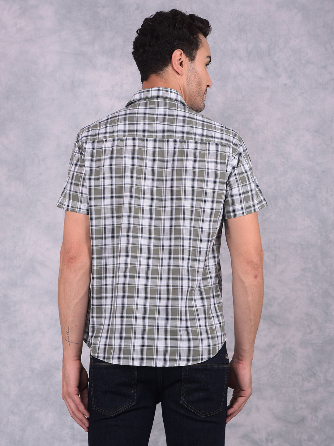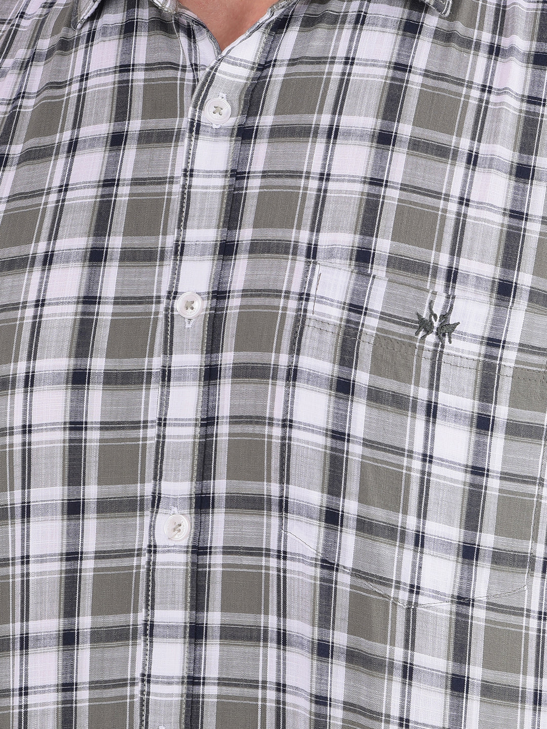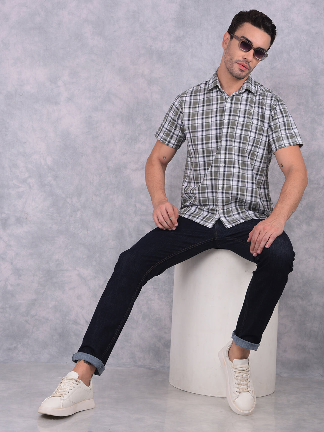 Olive Checked 100% Cotton Shirt-Men Shirts-Crimsoune Club