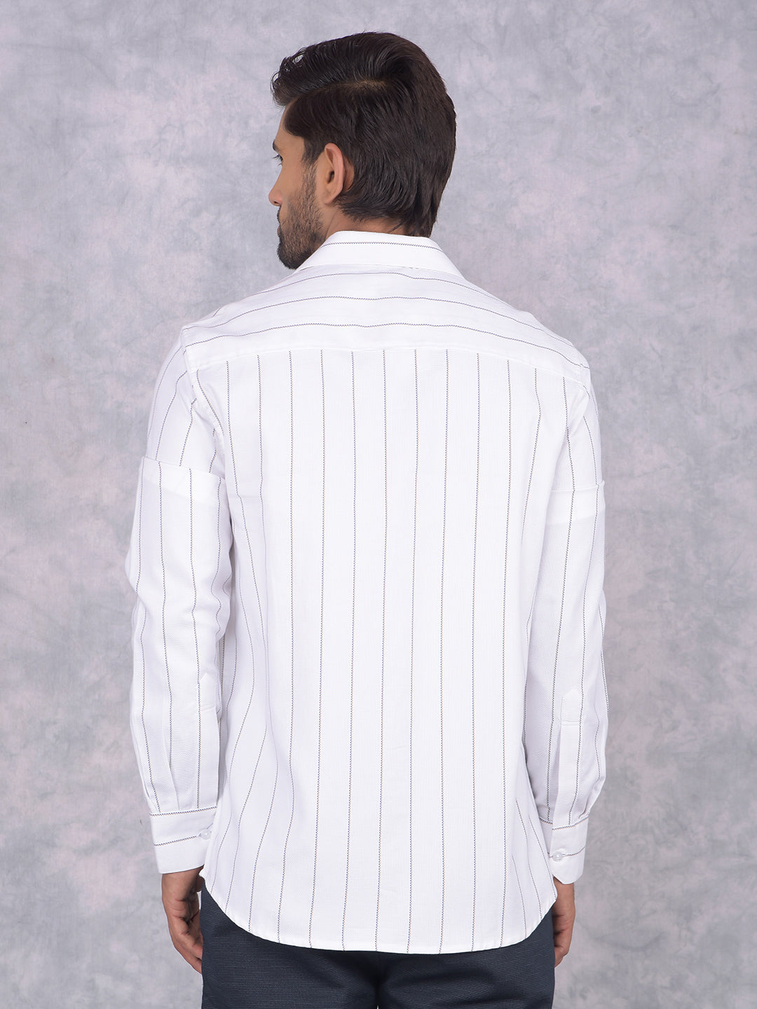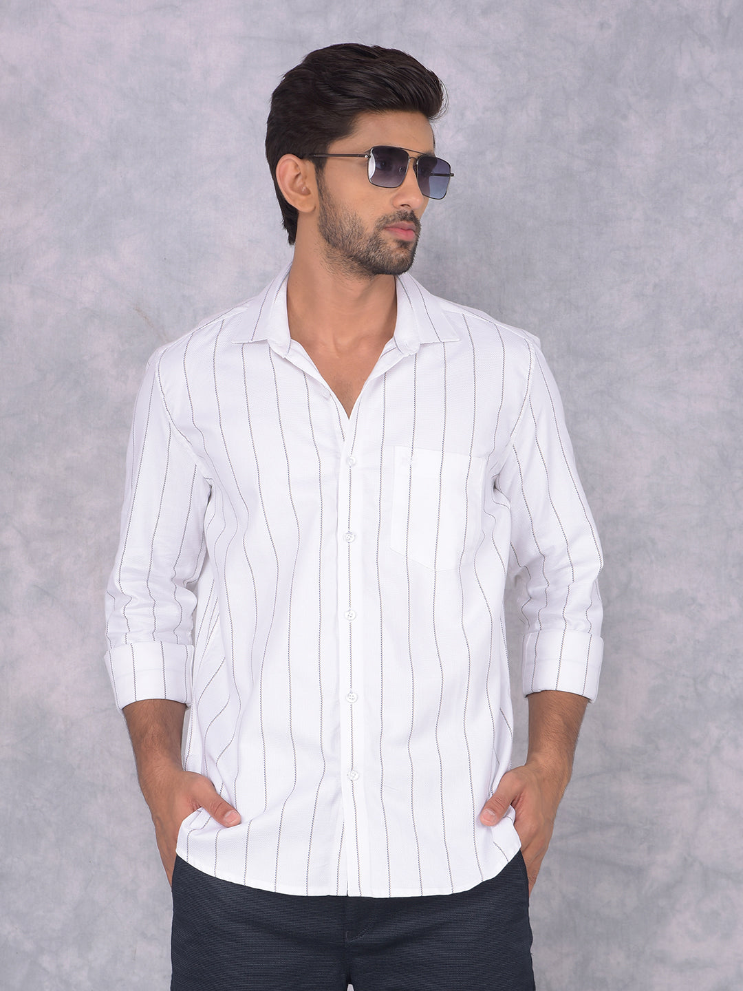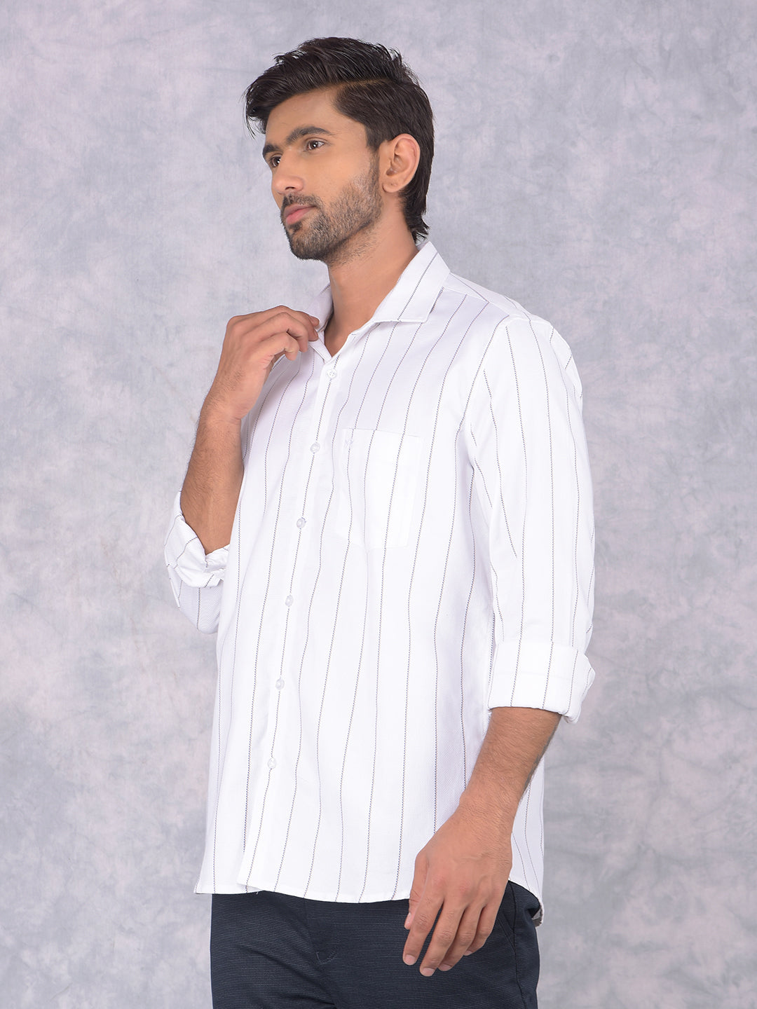 White Vertical Stripes 100% Cotton Knitted Shirt-Men Shirts-Crimsoune Club