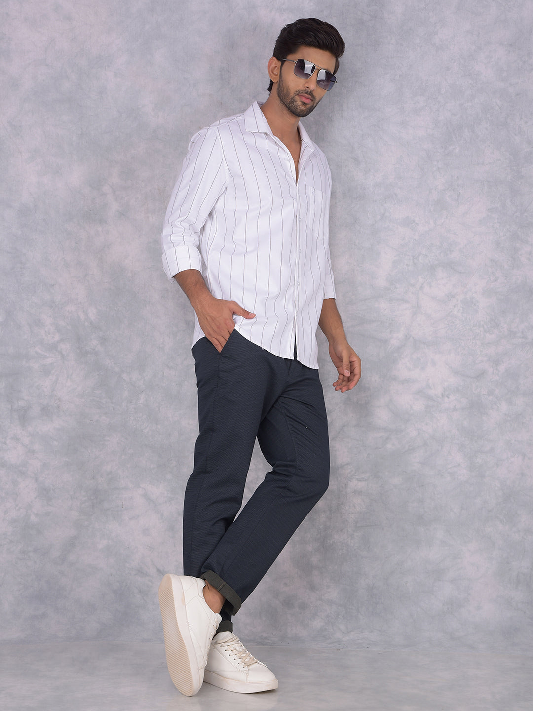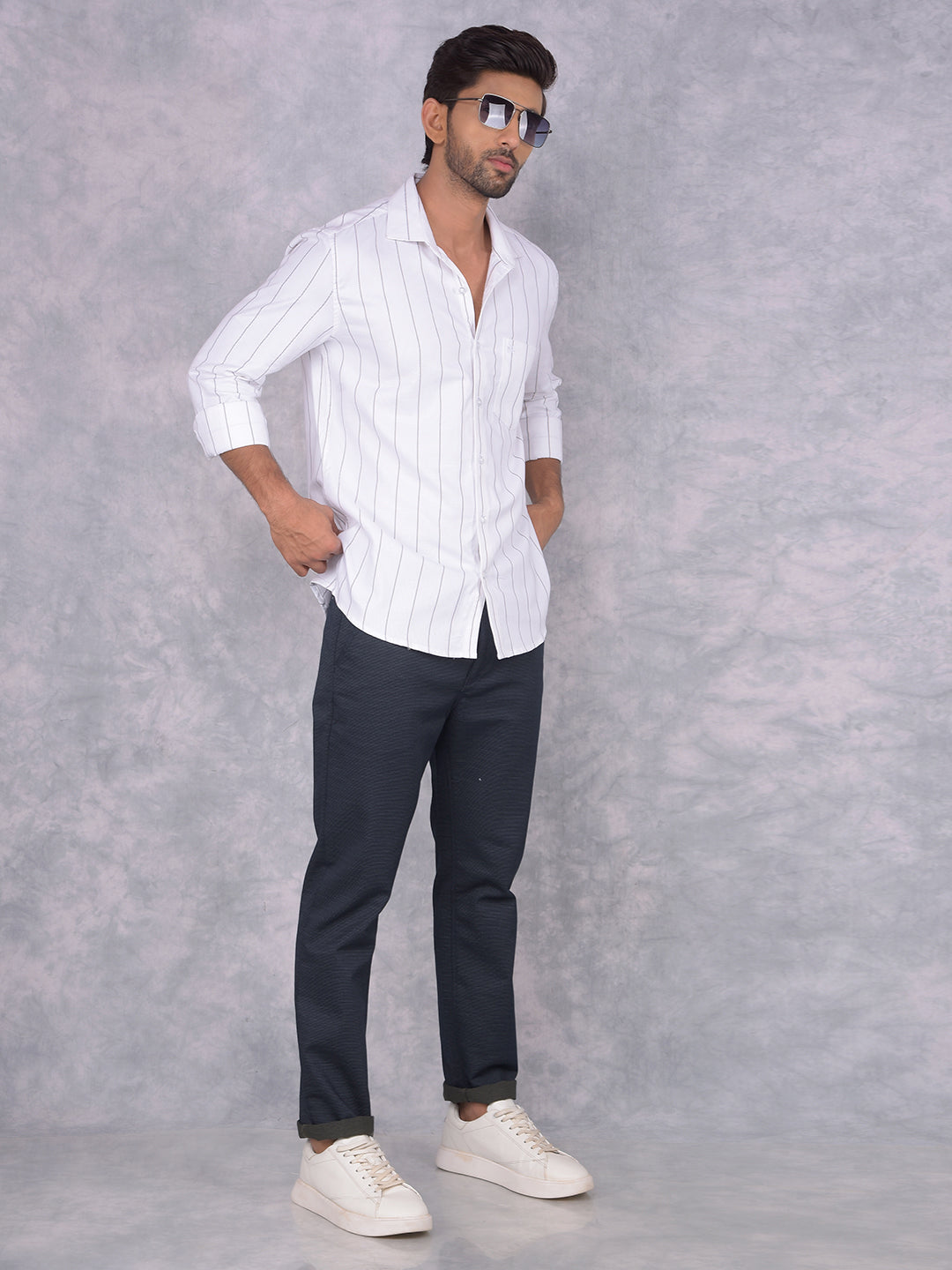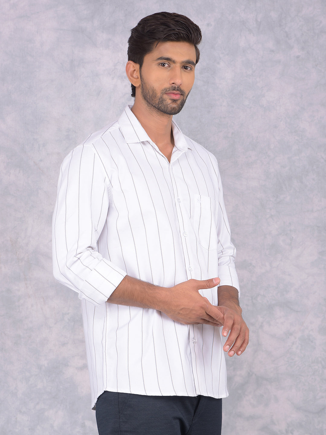 White Vertical Stripes 100% Cotton Knitted Shirt-Men Shirts-Crimsoune Club