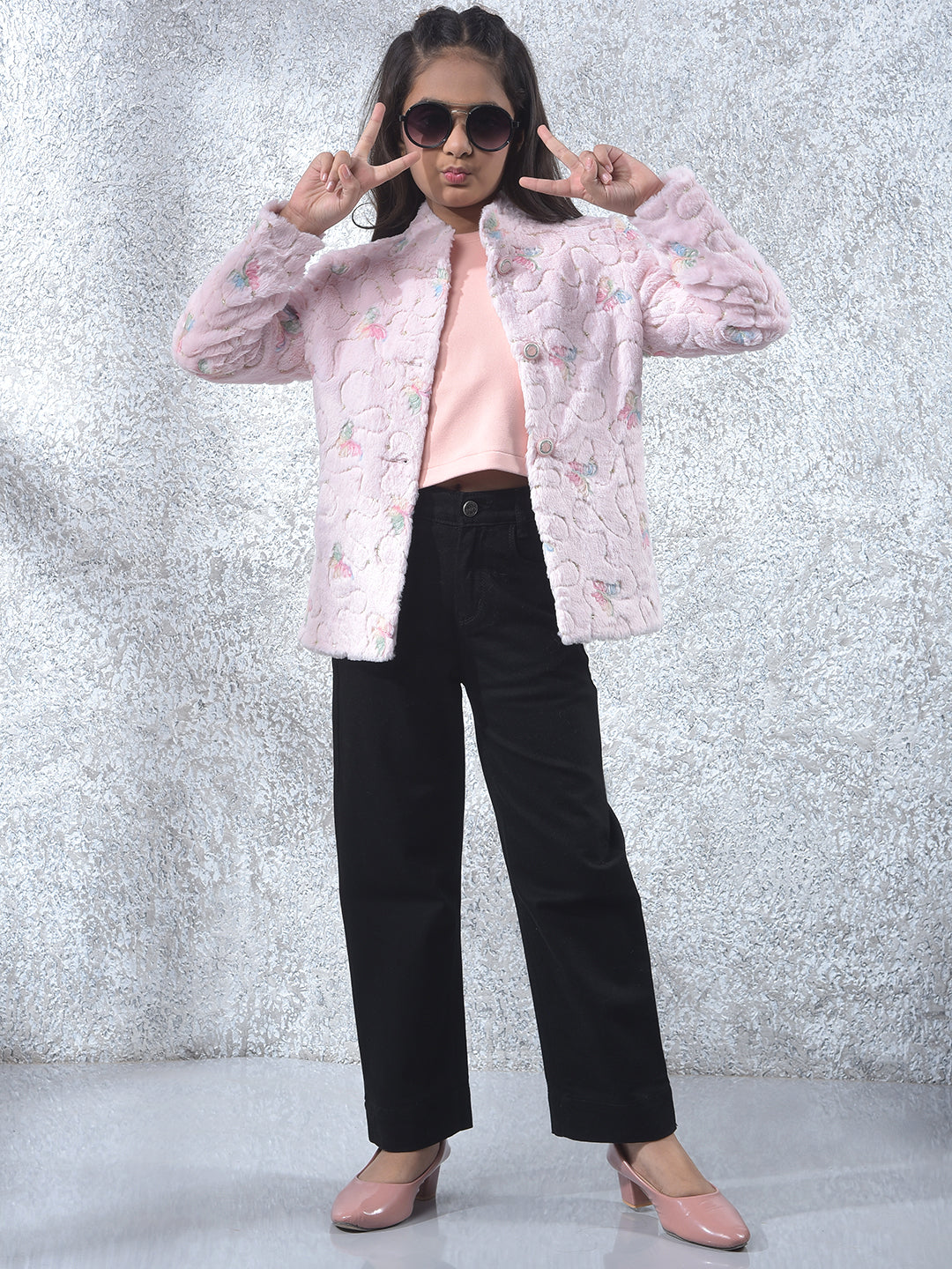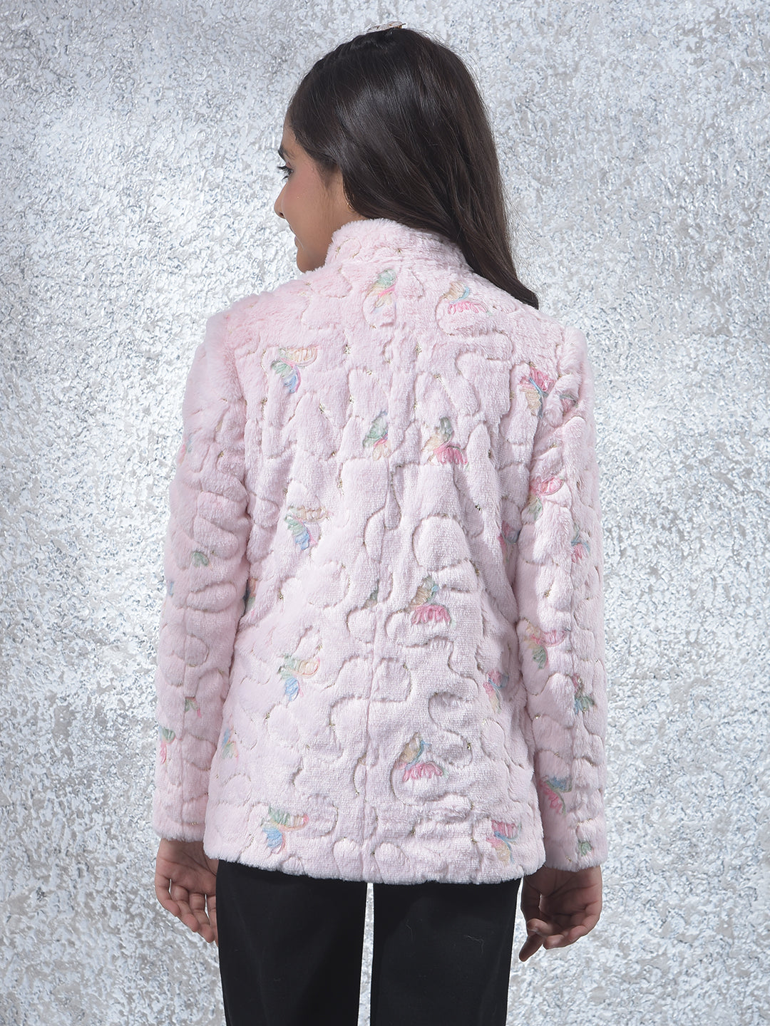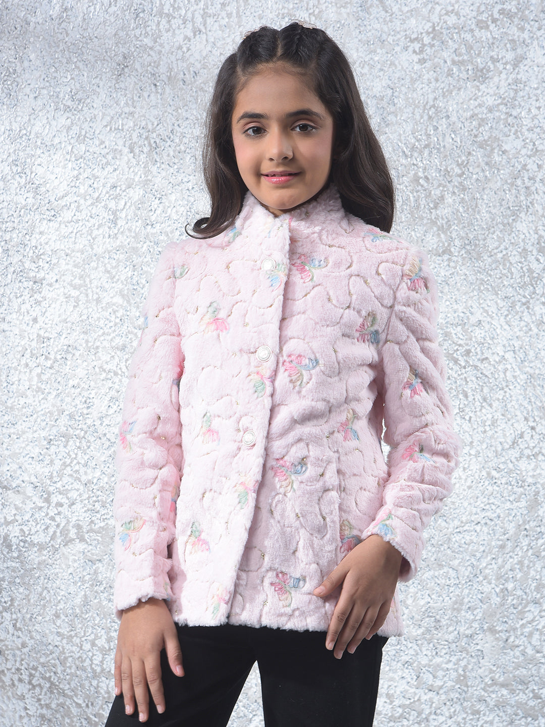 This charming Crimsoune Club girl's pink coat is detailed with delightful embroidery. It's a beautiful, soft layer perfect for adding a touch of elegance to her outfit.