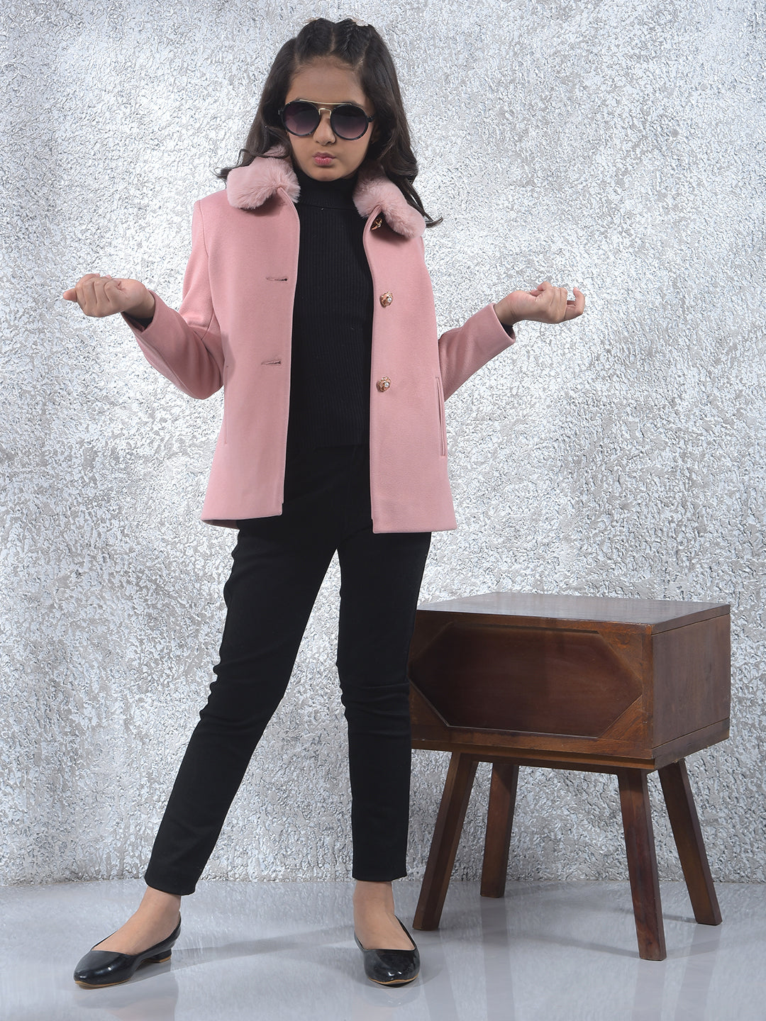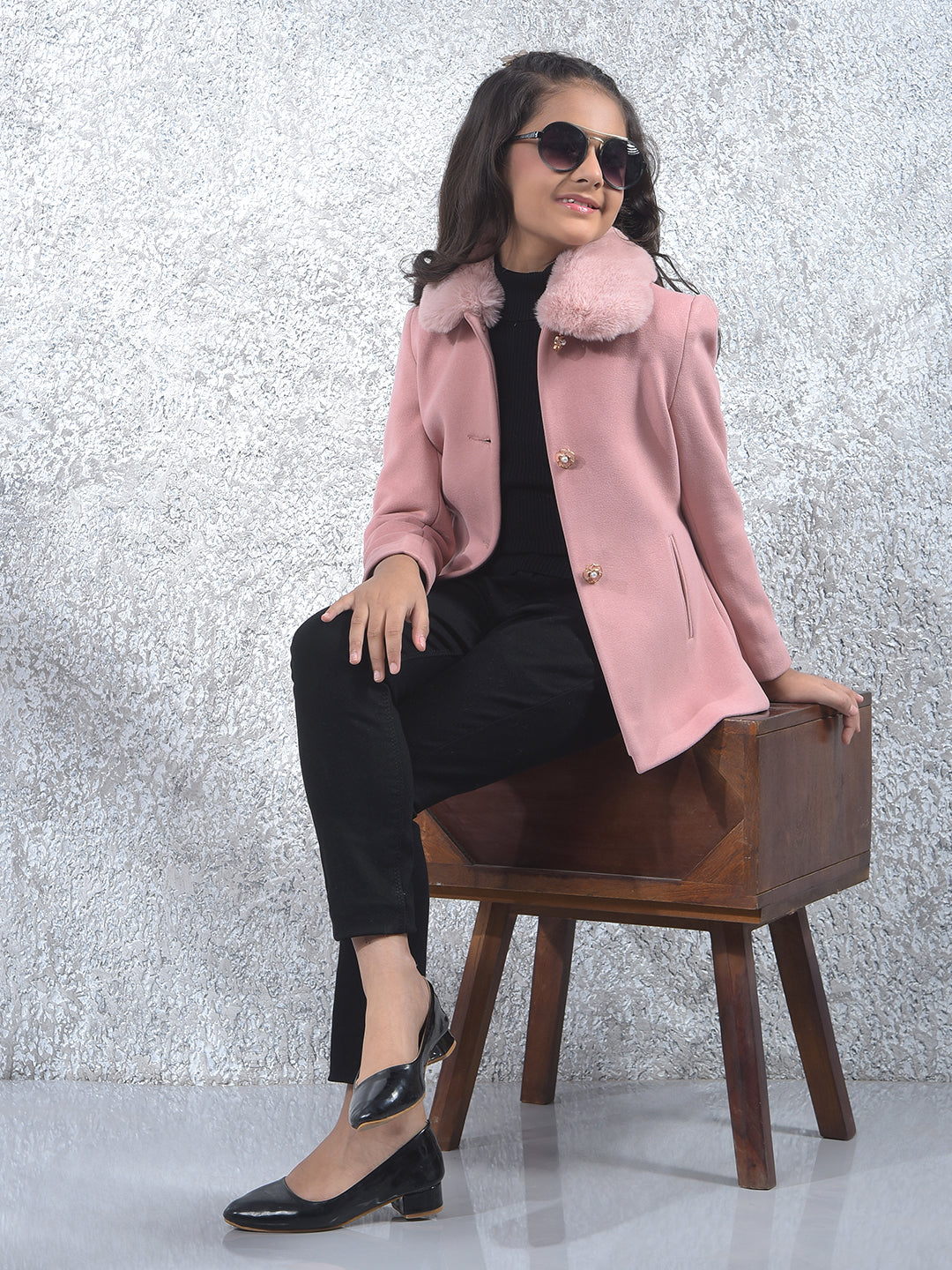 Dress your little one in this adorable Crimsoune Club girl's peach coat. The single-breasted design is sweet and stylish, offering a light, charming layer.