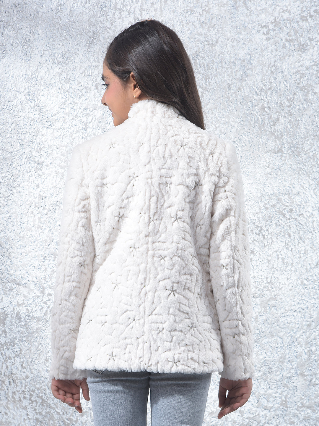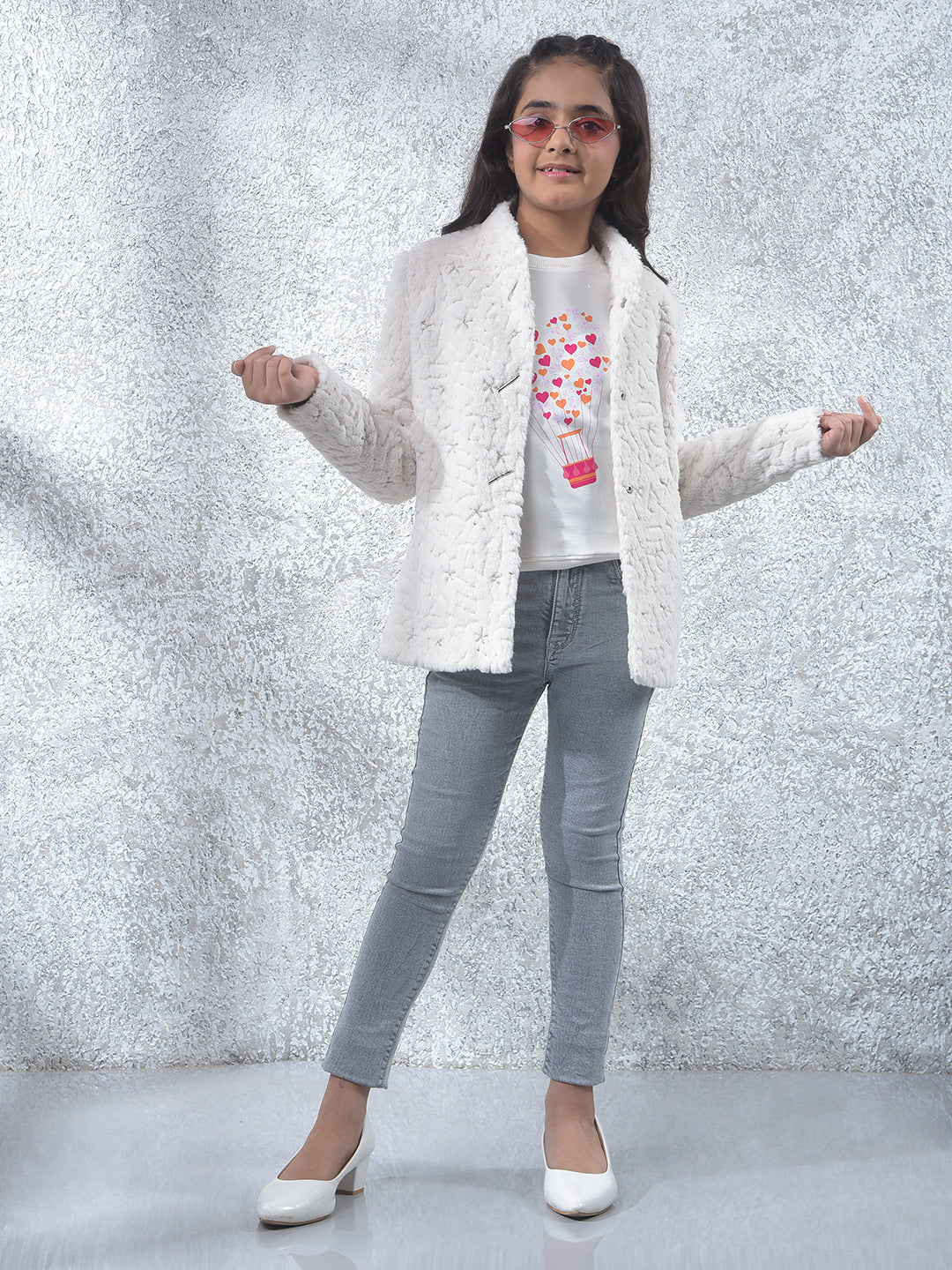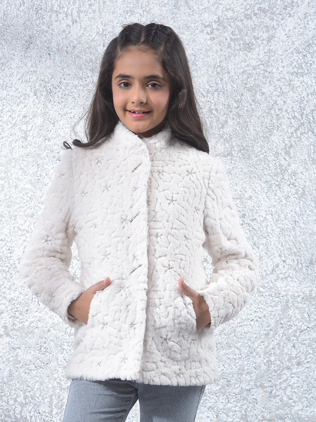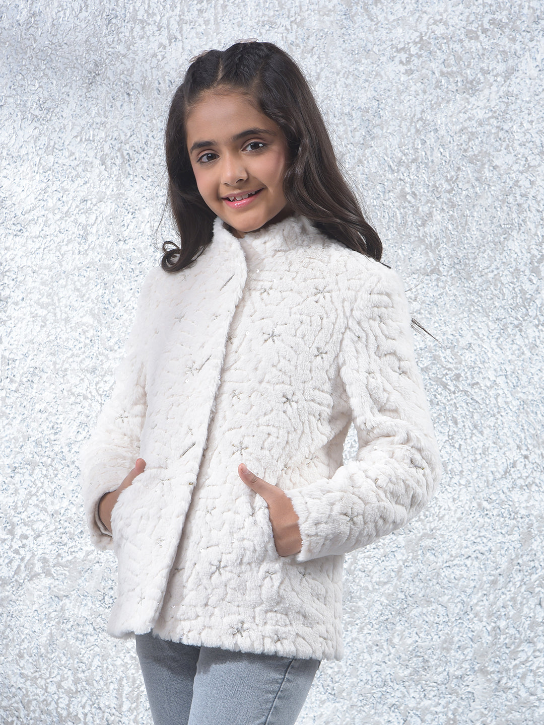 This lovely Crimsoune Club girl's white coat features sweet embroidery. It is a perfect, clean layer for special occasions, adding a delicate, charming finish.