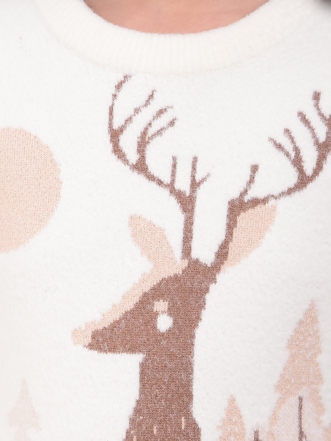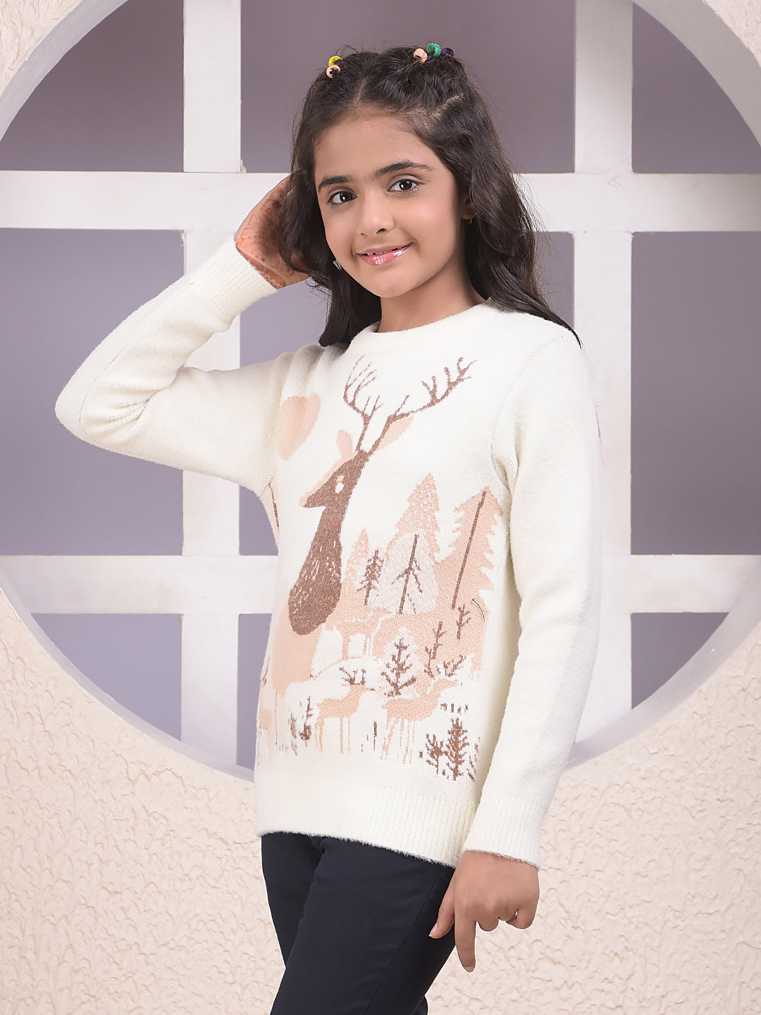 A delicate cream sweater for girls, featuring a charming jacquard knit pattern. Crimsoune club ensures a soft, warm, and sophisticated addition to her cool-weather wardrobe.