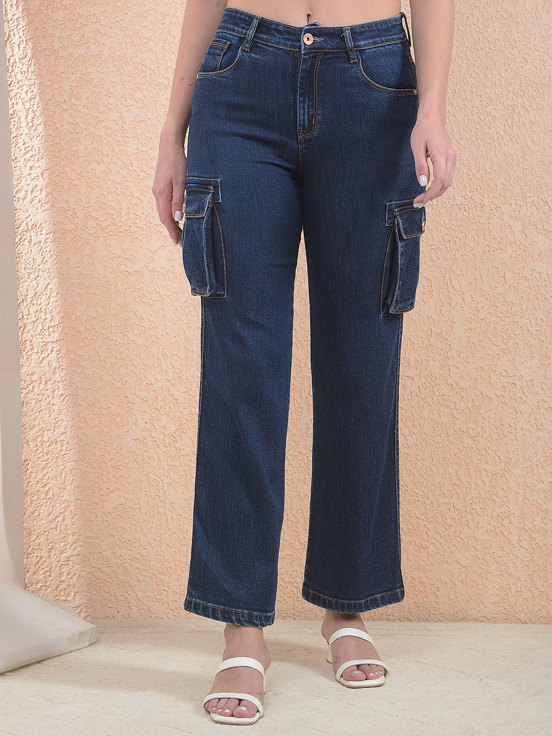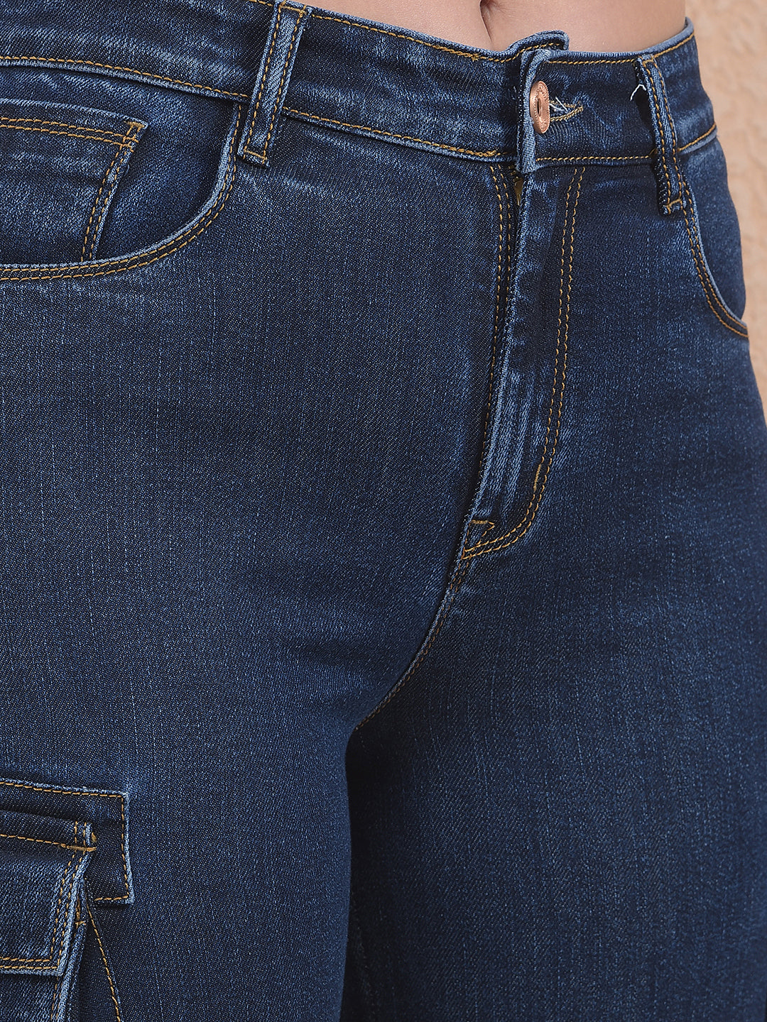 Crimsoune Club Women's Blue Cargo Jeans combine utility and style with functional pockets and durable denim. Designed for a comfortable fit, they provide a modern casual look suitable for everyday wear.