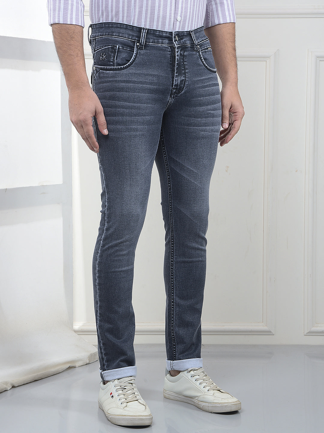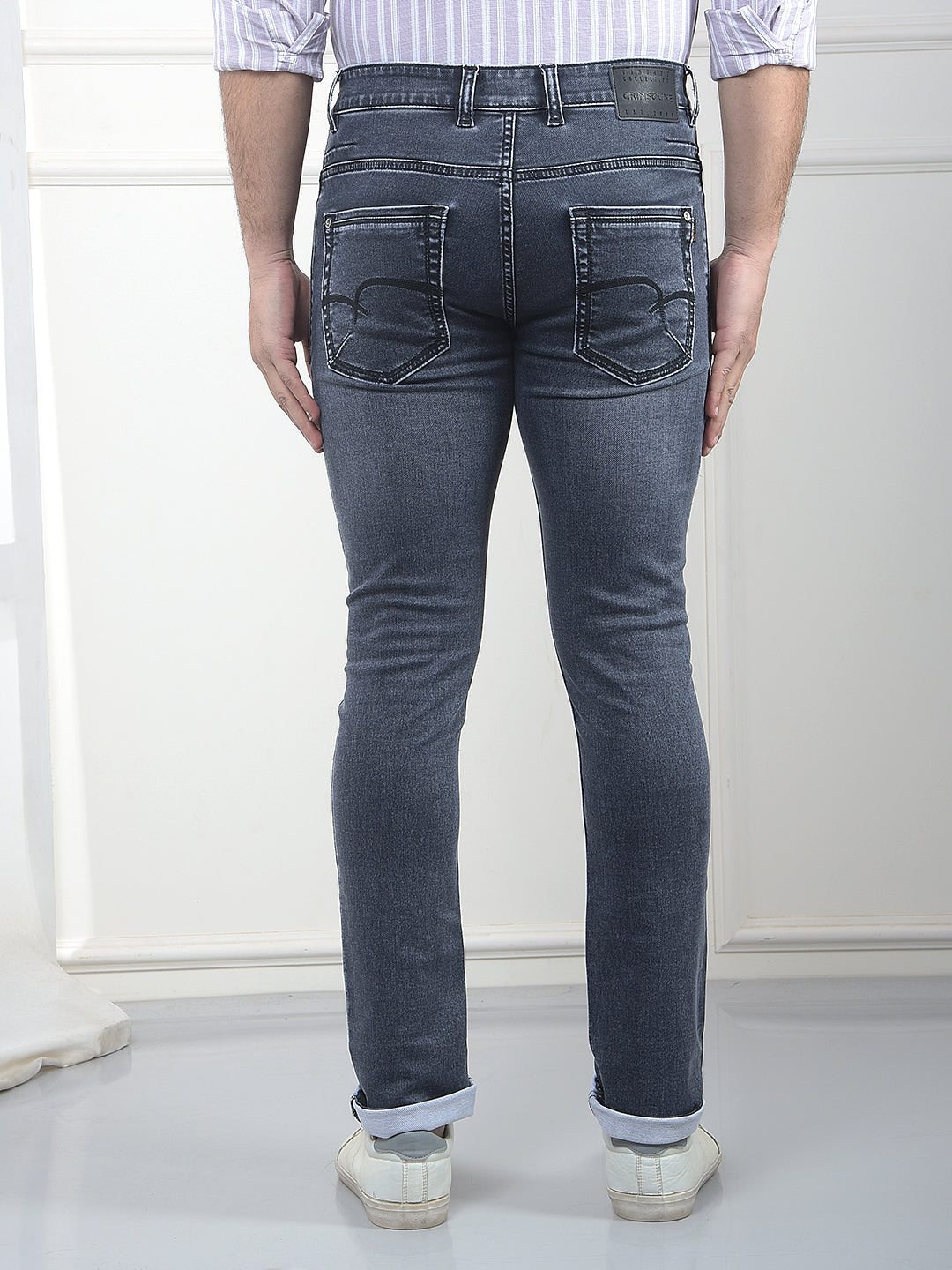 Modern Crimsoune Club blue slim fit jeans designed for a streamlined look. The solid finish keeps styling minimal and refined, ideal for men who like clean, fuss-free denim that works from weekday outings to weekend plans.