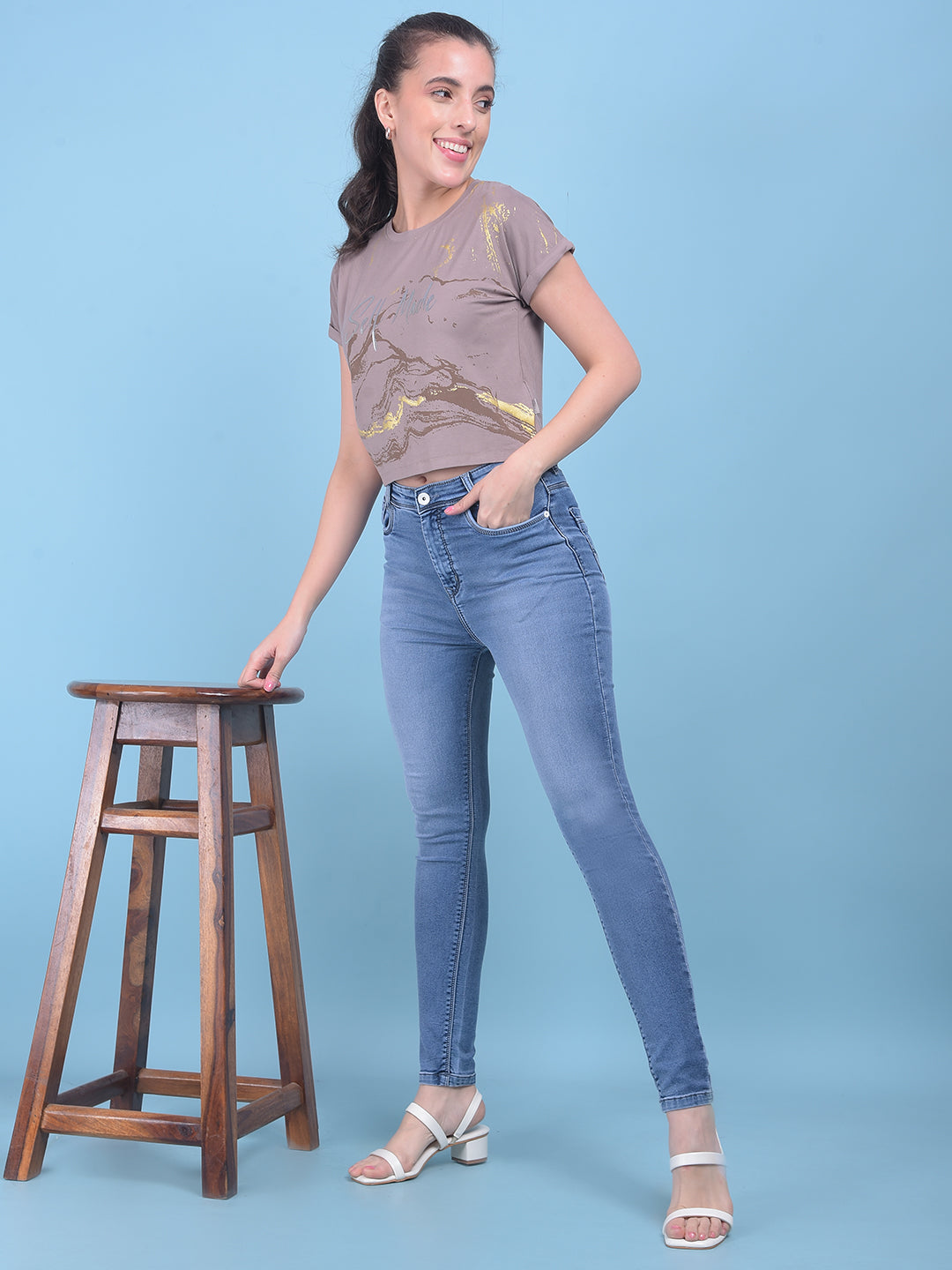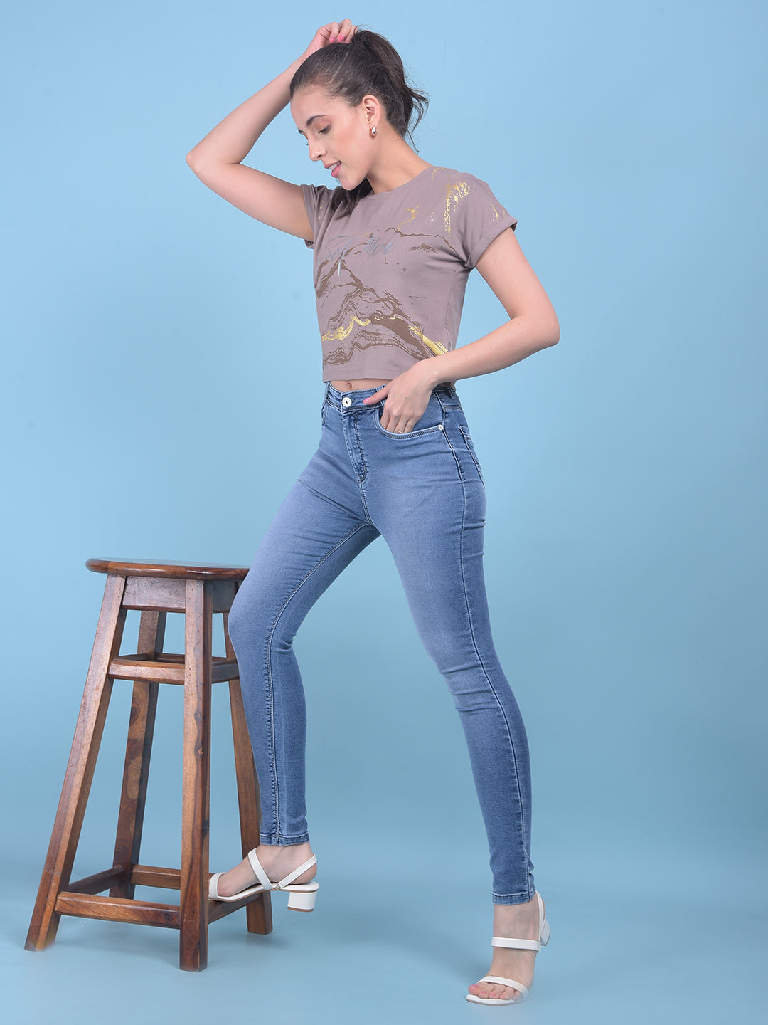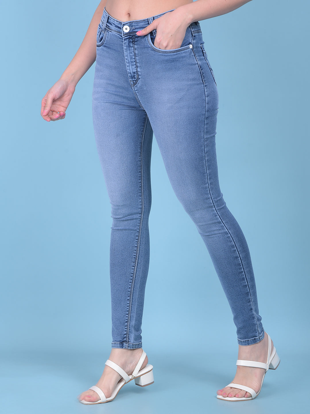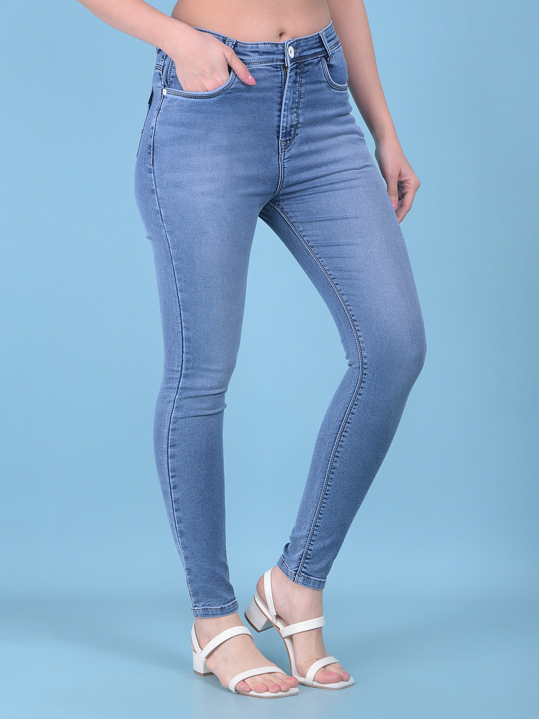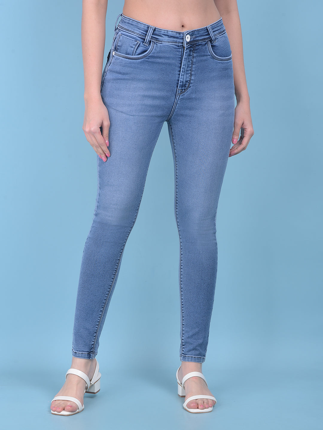 Blue Skinny High Waist Jeans-Women Jeans-Crimsoune Club