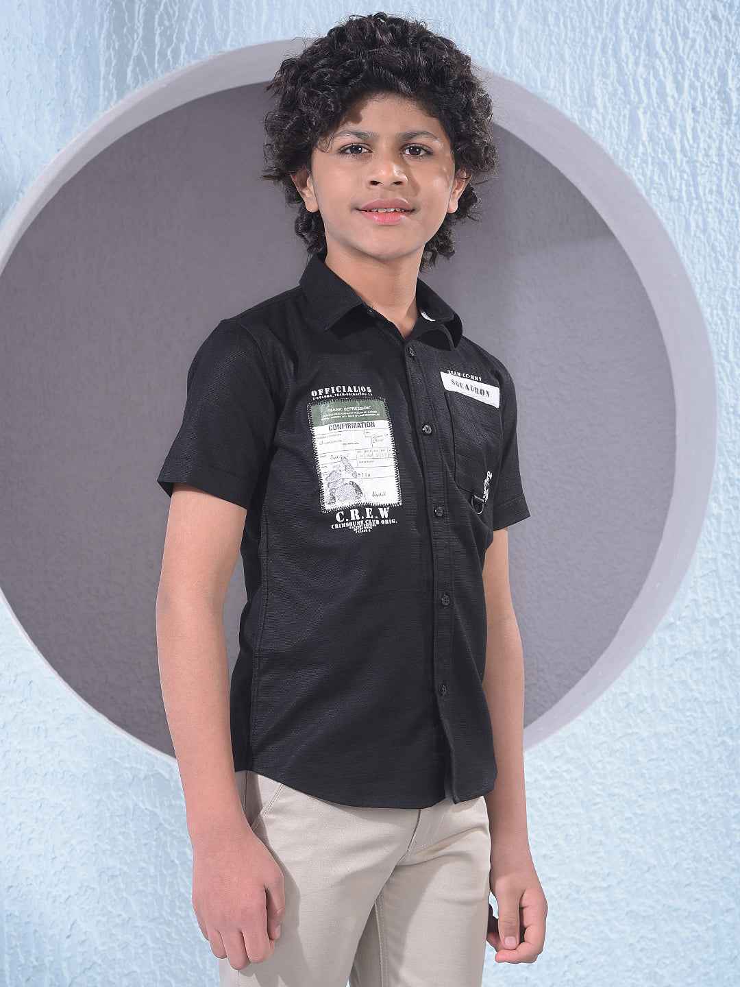 Make a bold impression with this Crimsoune Club boy's black typographic print shirt. The unique graphic design and sleek black hue provide a modern, edgy aesthetic that ensures both style and quality today.